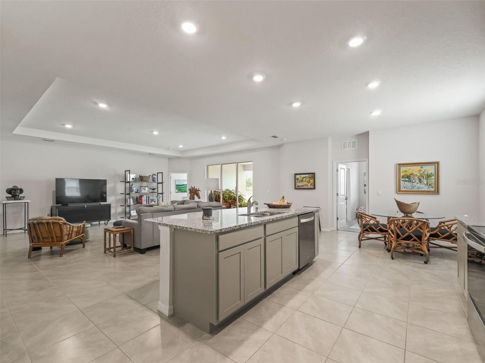 Built in 2023 in the all ages area! This newer 4 bedroom, 3 full bathroom house with 3 car garage backs to permanent open space & is on an over-sized lot. Ocala's Finest Resort-Style Living- welcome to Ocala Preserve! Enjoy a private oasis with access to Walking/Hiking/Bike Trails, Tennis and Pickleball Courts, Resort Style Pool, On-Site Restaurant, Athletic Center, The Golf Club, Clubhouse, Day Spa and Dog Park. Relax on a kayak and watch the sunrise over our beautiful lake. Unwind at the end of your day with a glass of wine on the expansive Veranda, or enjoy a Chef inspired meal at Salt and Brick restaurant. This one-story, all concrete block constructed home has a truly open concept plan, featuring a great room with dining space that flows into the kitchen and dinette. Two bedrooms at the front of the home share a full bathroom, while the primary bedroom with an ensuite bath is located on the rear of the home for privacy, providing beautiful views of the backyard. The fourth bedroom next to the kitchen features its own ensuite bath and walk-in closet. This home includes granite counter tops in the kitchen & bathrooms & the kitchen has stainless appliances.