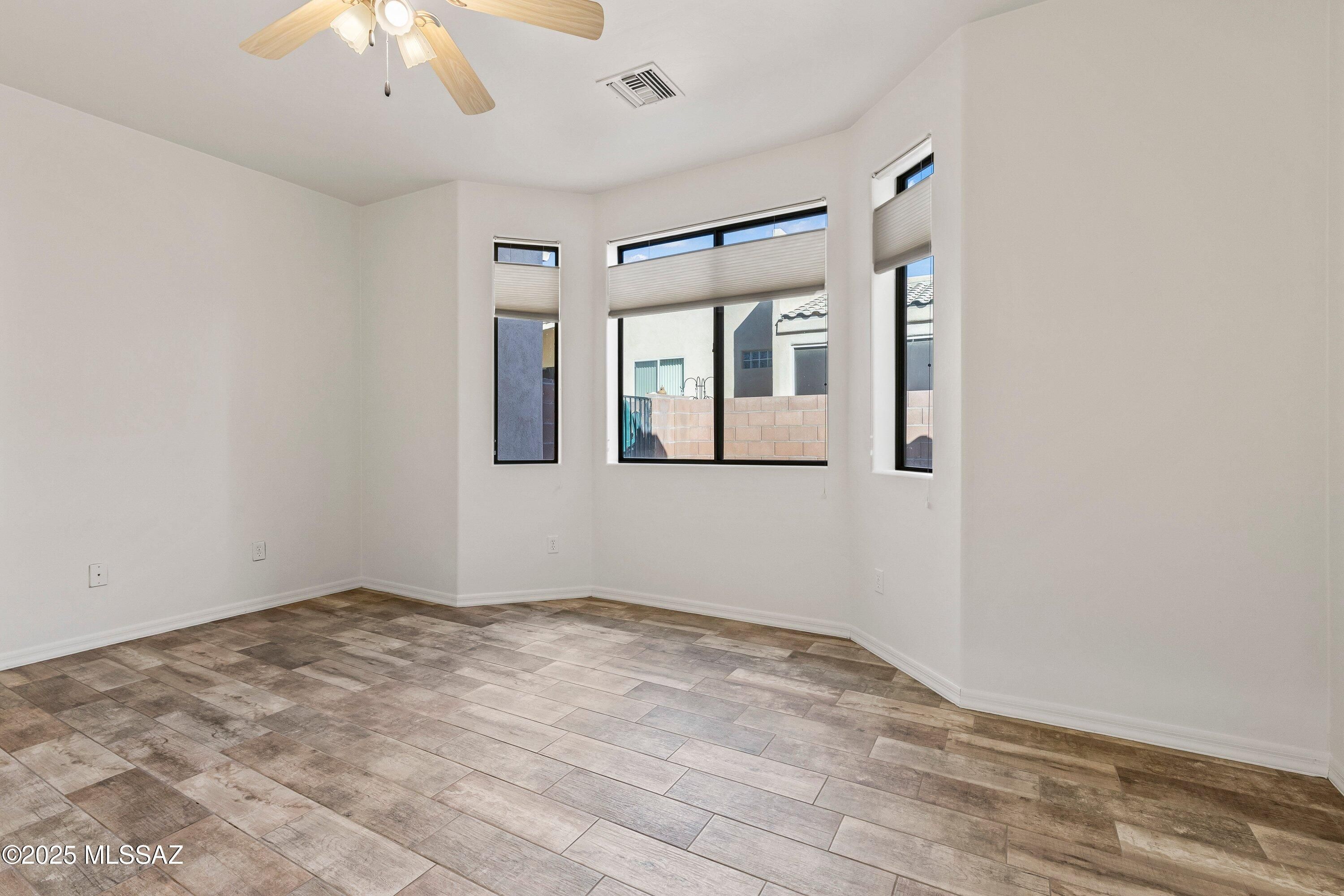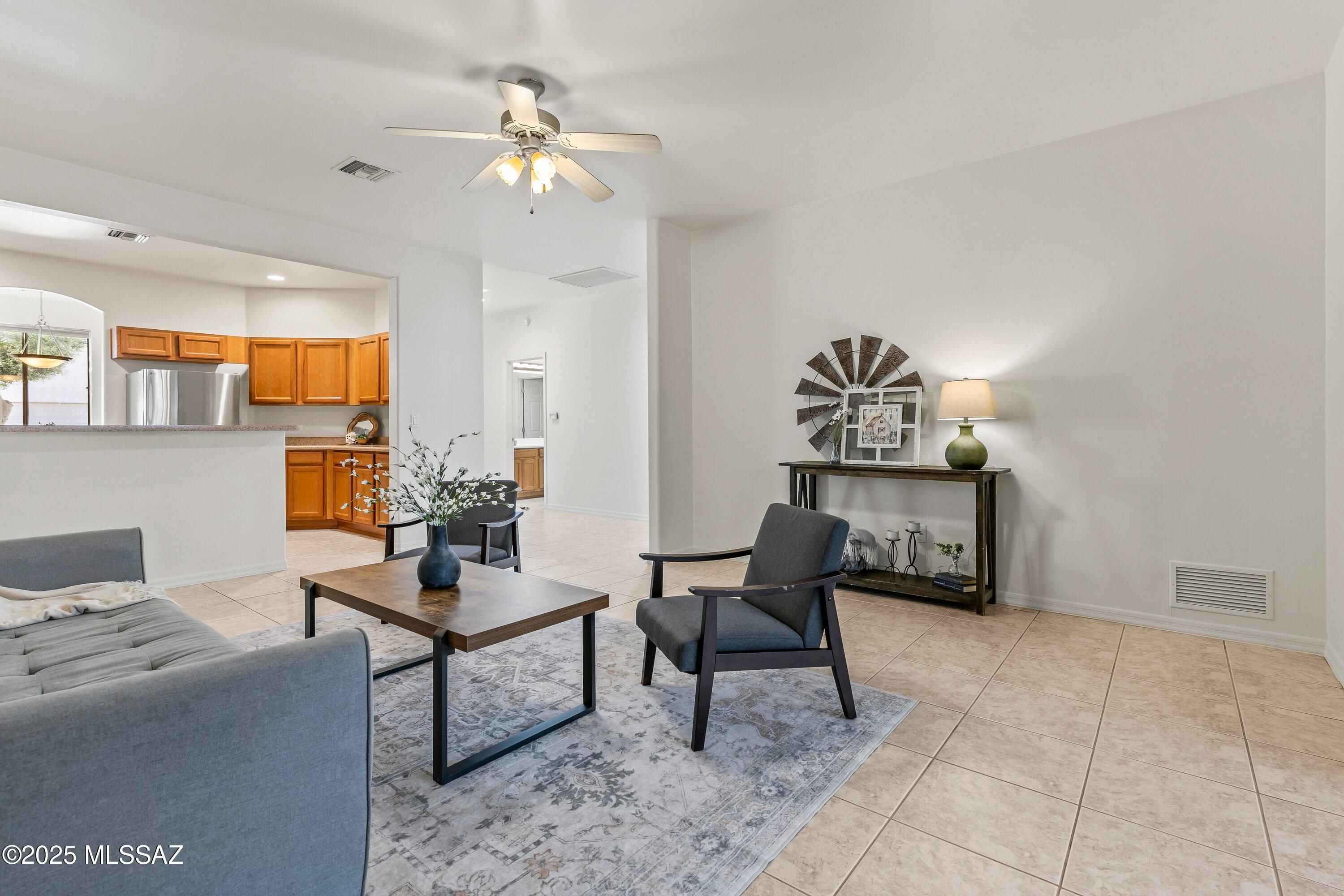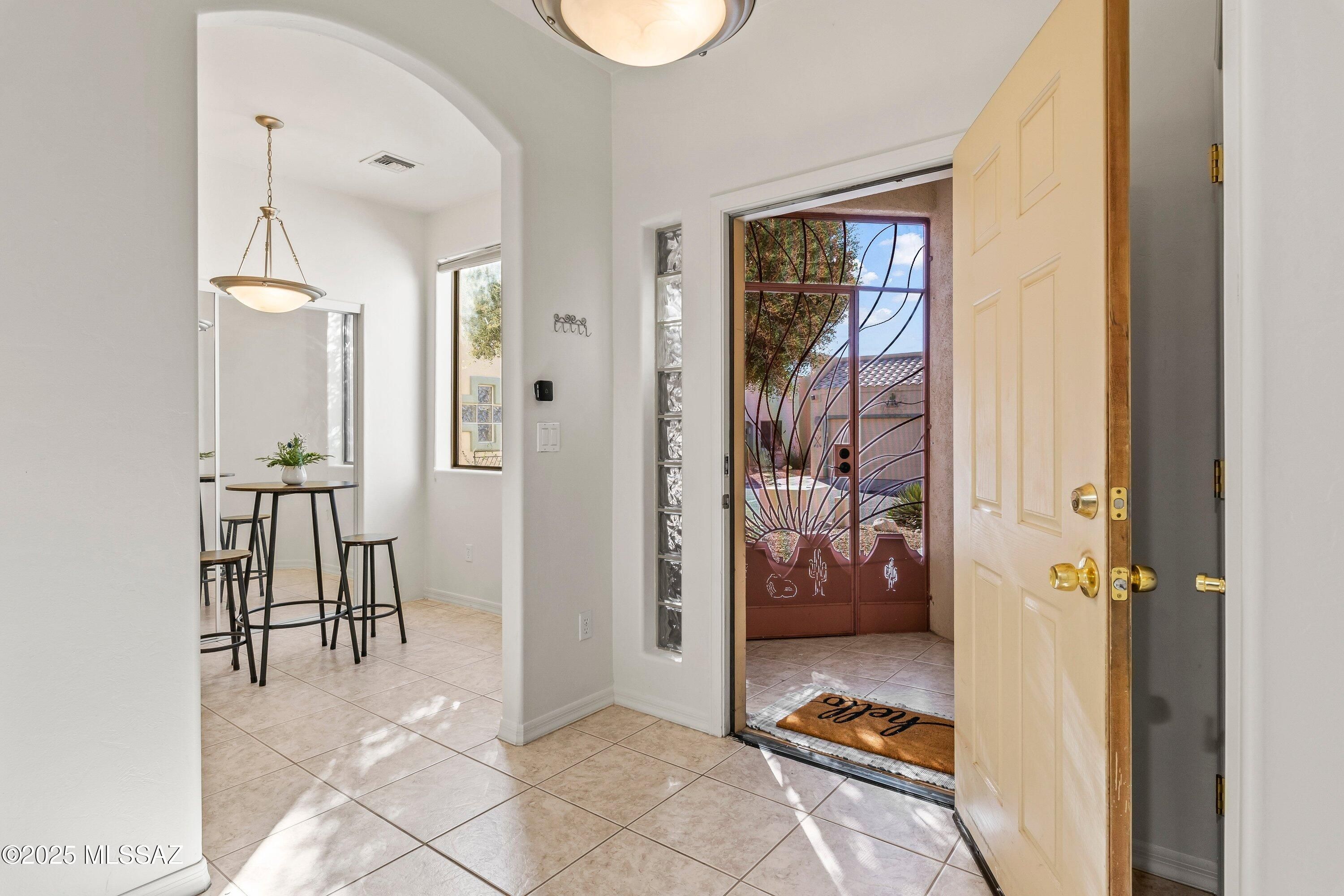 Welcome home to your sunny Southern Arizona retreat! This move-in ready gem offers high ceilings and multiple skylights that fill the home with warm natural light. The spacious master bedroom features a charming bay window and custom walk in closet built-ins. Enjoy the enclosed patio overlooking a beautiful flower garden. Freshly painted inside and out, with garage cabinets and a new 2024 HVAC system. Wheelchair accessible on one level for easy living. Assumable 2.875% mortgage adds incredible value. Not a GVR member, but membership is available.