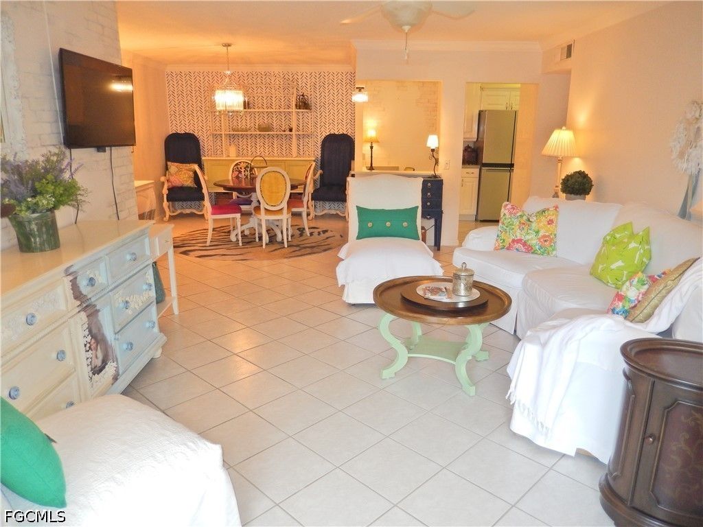 Magnificent Opportunity to own in one of Lee County's best kept SECRETS, Pine Ridge of Fort Myers Village (an Active Lifestyle 55+ Community)! FIRST FLOOR * END UNIT * 3 BED 2 Bath * FURNISHED CONDO. NO STAIRS to navigate. PET FRIENDLY (1 pup up to 25 lbs)! This CHARMING Condo is ready to be enjoyed by it's New Owner - Full Time resident or Seasonal Sun Chaser alike! Vibrant Design and Décor with Flair. Easy to maintain/clean Tile and Laminate flooring throughout. Murphy Bed with Storage can double as a Den or Home Office! Well Established and Maintained Community offering LOADS of AMENITIES and Future FRIENDS! Peaceful 20 Acre Lake just outside your Master Bedroom Window. Imagine a Long Casual Stroll along the paved and lighted Bike Path to appreciate a Picturesque Sunset OR....Wake up Energized with a Brisk Walk at Sunrise, the choice is YOURS! Park Like Setting surrounded by mature Landscaping, Foliage and NATURE! END UNIT also means Windows, Lots of WINDOWS! Distinctive Bahama Shutters allow YOU to be in charge of your daily dose of SUNSHINE! Extremely Commute Friendly to anywhere and anything you may require. I-75 located JUST AROUND THE CORNER, Literally! BRAND NEW Starbucks now OPEN beyond the front entrance next to Cracker Barrel. Groceries, Gas and Banking only minutes away! Spacious community POOL and HEATED SPA a mere few leisurely steps away. Large Clubhouse with monthly events calendar will keep you hopping! Catch and Release fishing policy applies if wetting a line. TENNIS * PICKLEBALL * BOCCE * SHUFFLEBOARD, as much activity as any healthy heart desires! Did I mention PET FRIENDLY with Charming People, let Pine Ridge at Fort Myers Village Welcome You HOME....TODAY!!