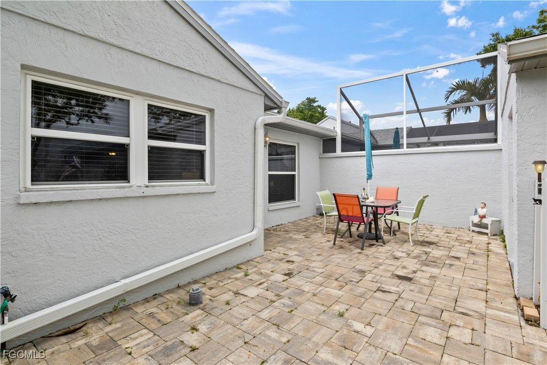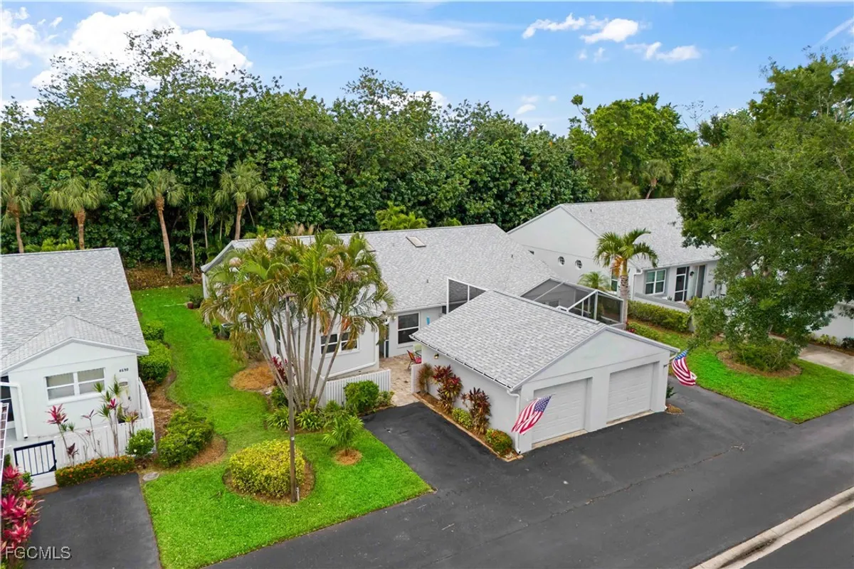 This charming 2-bedroom plus den, 2-bath villa offers the perfect blend of comfort and convenience in the highly desirable Pine Ridge, a well-maintained, pet-friendly 55+ gated community. Whether you're seeking a seasonal getaway or a year-round home, this villa provides a peaceful retreat in a beautiful park-like setting. As you approach the home, you'll be welcomed by a spacious front courtyard, ideal for outdoor living or gardening. At the rear, the screened lanai offers a private and tranquil escape with serene, wooded views, ensuring total privacy. Inside, the villa features high ceilings and large sliding glass doors that flood the home with natural light. The updated eat-in kitchen combines modern style with functionality, while the adjoining formal living and dining areas provide ample space for entertaining. The bathrooms have been updated and the villa has been painted. For added convenience, the villa includes NEW washer / dryer and boasts one-level living with no stairs. The detached one-car garage offers extra storage, and there’s plenty of guest parking nearby. Pine Ridge offers an exceptional array of amenities, including a clubhouse overlooking a scenic 20+ acre lake with two lighted fountains. Residents enjoy a heated pool and spa, tennis, pickleball, bocce ball, and shuffleboard courts, along with bike racks, BBQ areas, and a dog park. A car washing station is also available for convenience. The HOA fees cover essential services such as water, sewer, cable, internet, and lawn care, allowing you to enjoy a low-maintenance lifestyle. On-site management and maintenance ensure that the community remains in pristine condition. Located with easy access to I-75, shopping, dining, and all that Southwest Florida has to offer, this villa is ideally positioned for both relaxation and convenience. Whether you're looking for a seasonal escape or a full-time home, this villa represents outstanding value in a vibrant and well-established community. Don’t miss the chance to explore this stunning villa and experience everything Pine Ridge has to offer. View the virtual tour for more photos of the home and community—this is one opportunity you don’t want to miss!
