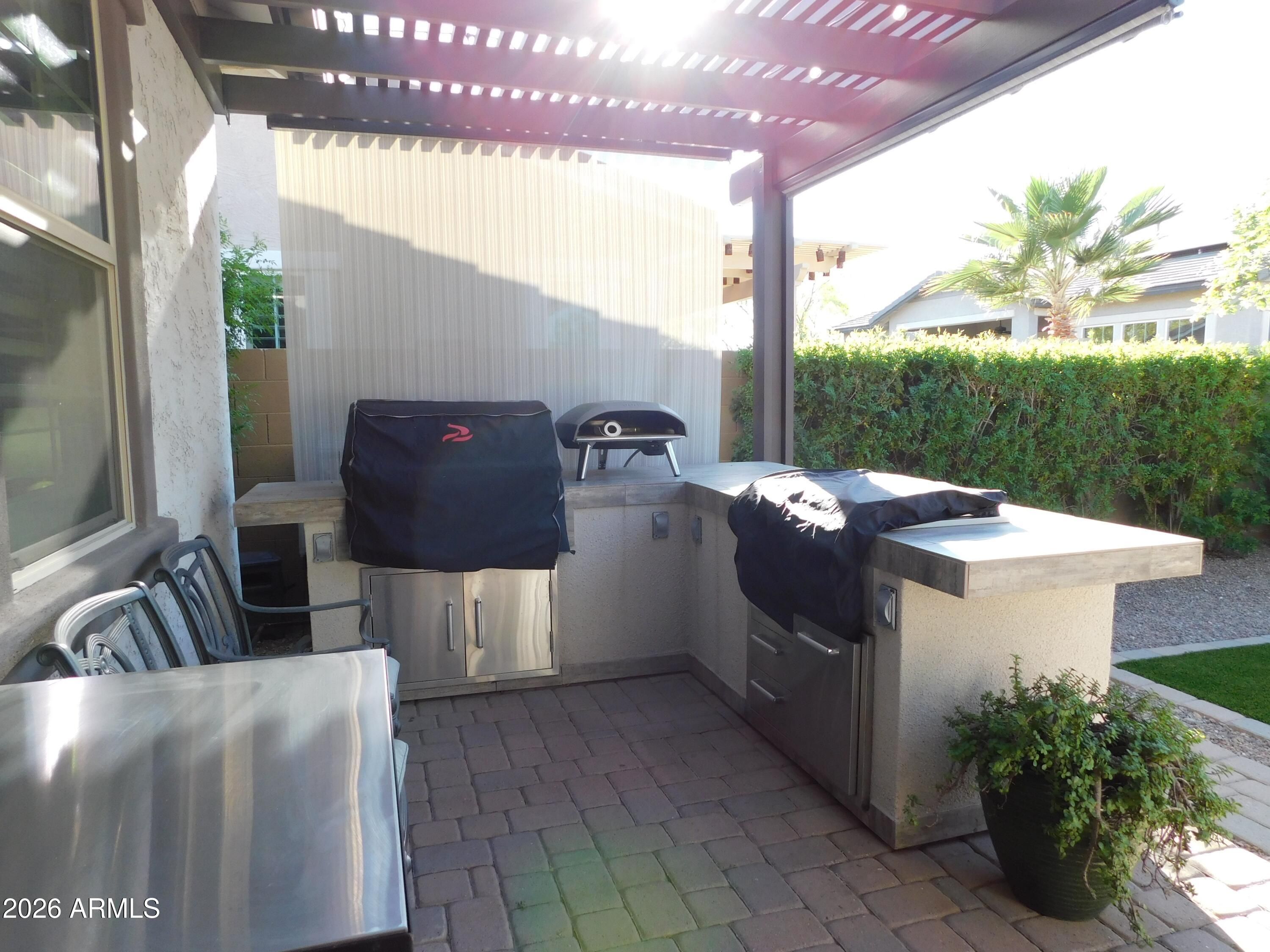 Professional photos coming soon!!! VICTORY is yours!! Stunning 2 bed 2 bath house with office has been pampered! Tile everywhere but bedrooms which had new carpet installed 2 years ago. Beautiful kitchen with wall oven/convection oven and microwave. Gas cook top accented by granite counters. Owners suite has walk in shower with rain fixture as well as a wall fixture! Dual vanities and huge walk in closet too!! Your new backyard is literally an OASIS of comfort! From the newly remodeled fire pit, to the new pavers that surround it, coupled with the motorized sun shades on the patio and the recently installed BBQ island, you can enjoy outdoor living all year long! Inside will be just as comfortable with PAID OFF SOLAR!! Your garage floor was recently epoxy coated as well!