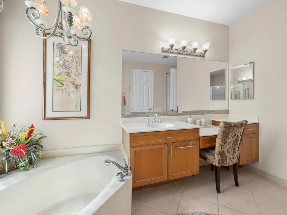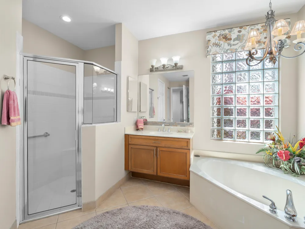 - Decorative Fireplace, Entrance Foyer, Pantry, Garden Tub/Roman Tub, Split Bedrooms, High Ceilings, Walk-In Closet(s), Family Room, Family/Dining Room, Separate/Formal Dining Room, Snack Bar, Single Hung Metal Window(s), Dual Sinks, Primary Downstairs, Separate Shower, Bathtub, Storm Shutters