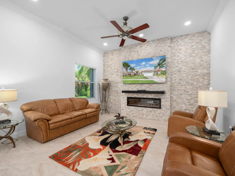 Merlot Model - Preserve View! Move in Ready - 3 Bedroom, 2 Bath, 2-Car Garage home in Cascades 55+ Community. The Kitchen offers Granite countertops, 42'' Cabinets & SS Appliances. Interior features include Tray Ceilings, Crown Moldings. Tiled & Wood Floors throughout the home Decorative Fireplace in the Family Room with Real Stack Stone Wall. Extended Screened Lanai overlooks the preserve. Accordion shutters for Hurricane Protection. WHOLE HOUSE GENERATOR! Cascades at Saint Lucie West was voted #2 for BEST 55+ COMMUNITY in the country. Enjoy the Clubhouse, Game Rooms, Poker Room, Billiards, Library, Computer Room, Arts and Craft Room, plus the Fitness Center & Aerobics Room. Large Heated Swimming Pool, Har-Tru Lighted Tennis Courts, Bocci, Pickle Ball, and a 9 hole pitch-n-putt golf.