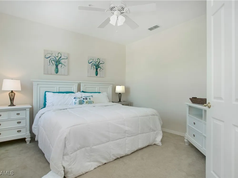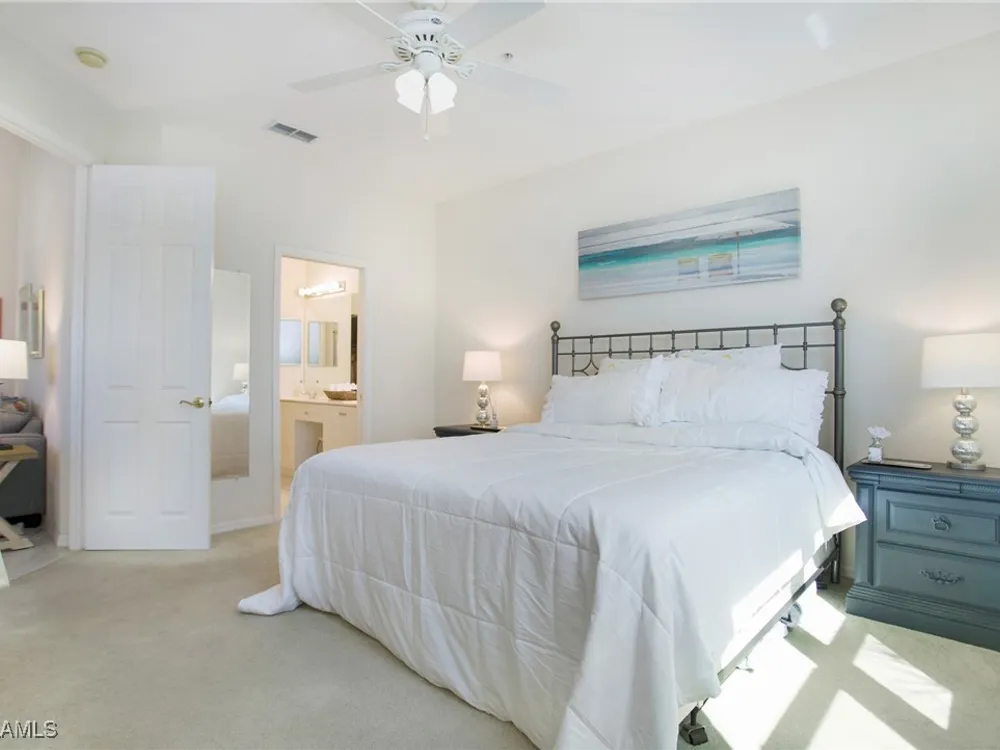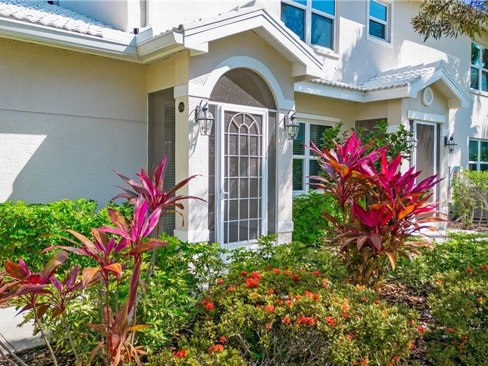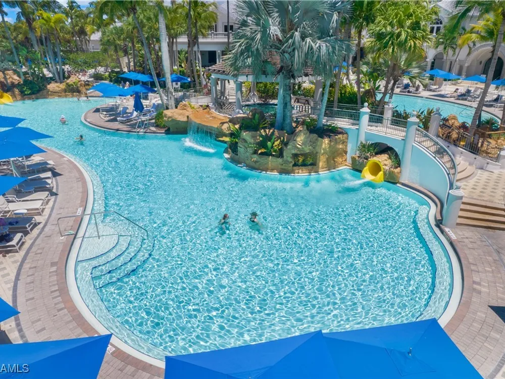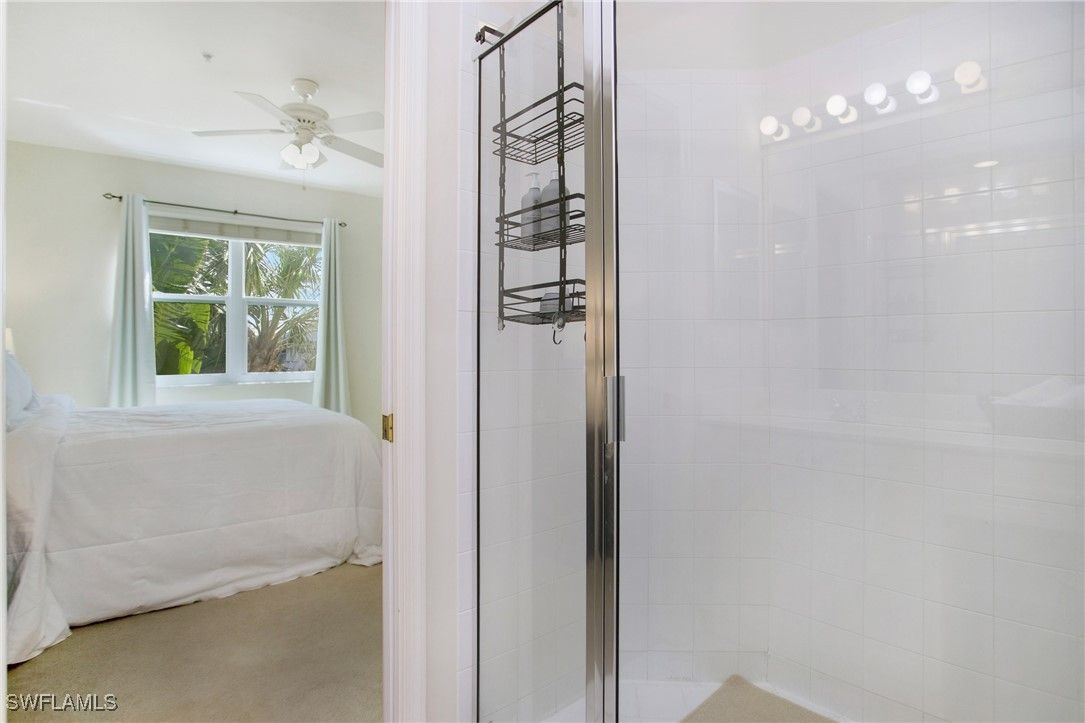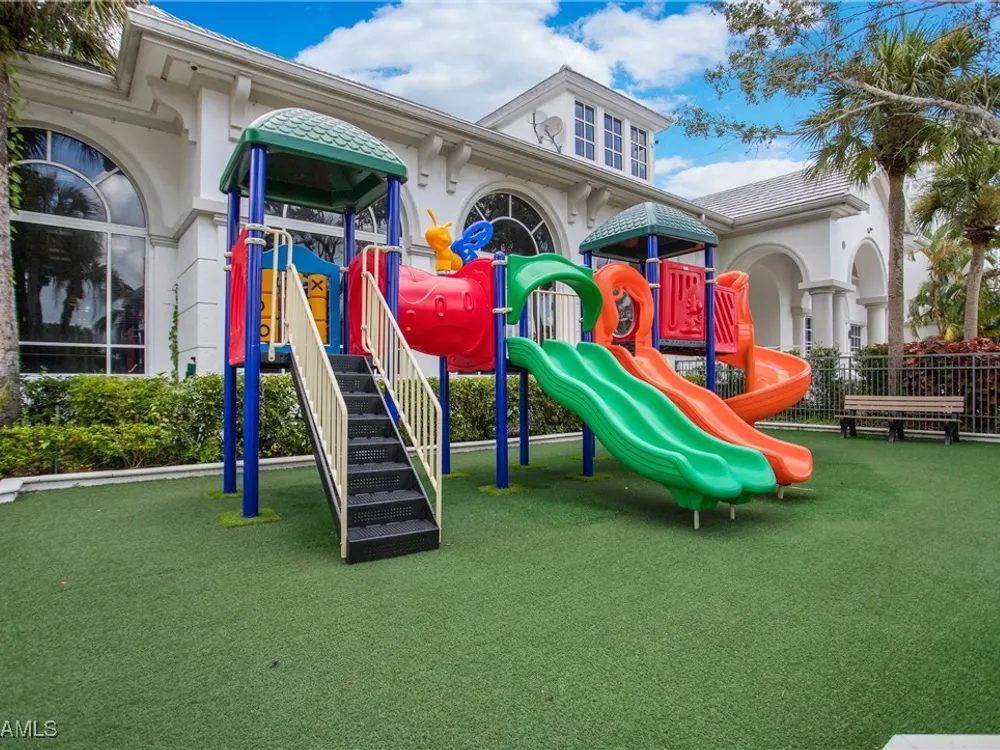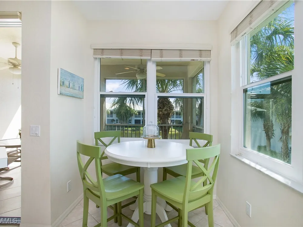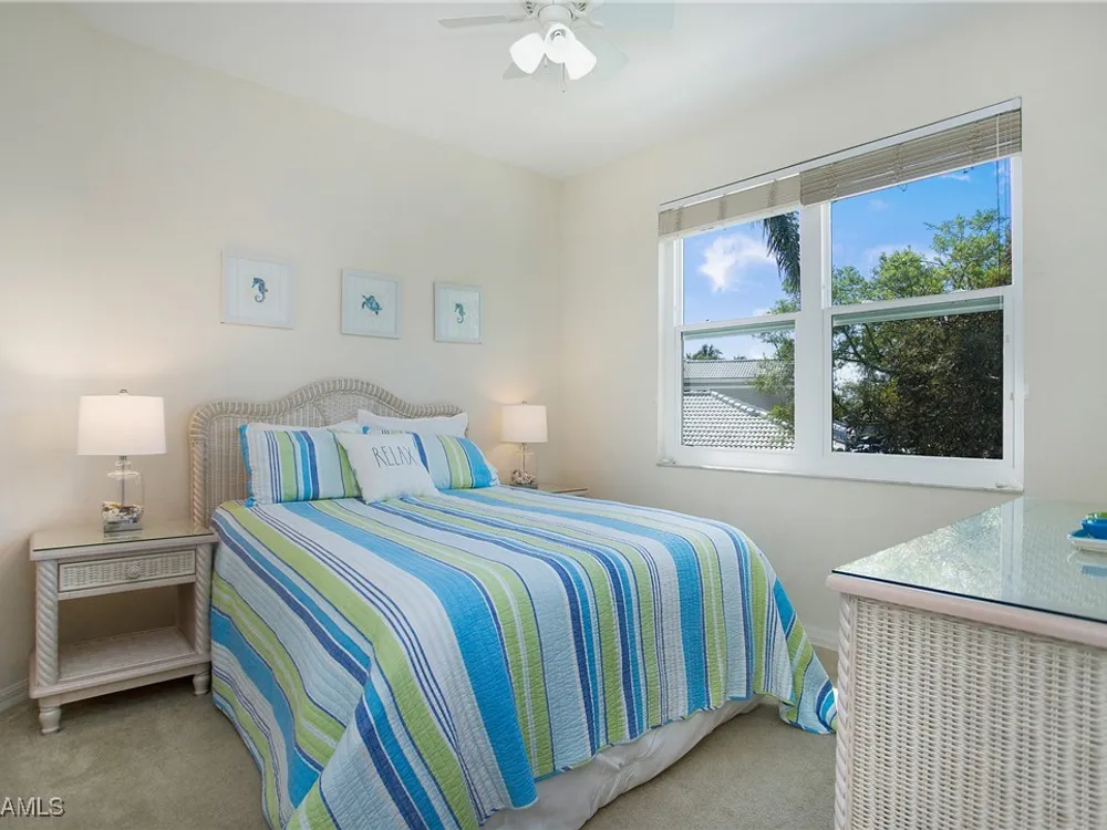 NEW KITCHEN COUNTERTOPS and SINGLE BASIN STAINLESS STEEL KITCHEN SINK. Corner TOP FLOOR UNIT & HIGH CEILINGS! The current owners are using the spacious den with solid french doors as a THIRD BEDROOM. *ONE YEAR HOME WARRANTY INCLUDED WITH PURCHASE* Step into luxury living with this second-floor coach home boasting 2 Bedrooms Plus a Den. This end unit captures the essence of elegance. This condo is turnkey, move-in-ready, with a one car garage, and plenty of guest parking for your friends and family! Bathed in natural light, the open floor plan of this beautiful sanctuary invites you to indulge in a lifestyle of comfort and serenity. You will enjoy the spaciousness of the primary bedroom, featuring a walk-in closet, dual sinks, and a large shower. As you step onto the private screened lanai, be greeted by captivating views of the tranquil lake and enchanting fountain, transforming every moment into a picturesque escape. This stunning unit boasts modern amenities, including a newer roof and recently installed impact glass windows and sliders, ensuring both safety and sophistication. But the luxuries extend far beyond your doorstep. Elevate your lifestyle with exclusive access to the 54,000-square-foot club and spa, where opulence knows no bounds. Maintain your well-being in the state-of-the-art fitness center, or unleash your competitive spirit on the six tennis courts, pickleball, and bocce facilities. Engage in a vibrant social scene with a myriad of activities, or explore the sprawling jogging and bike paths that wind through the community's lush surroundings. Dining becomes an experience unto itself, with options ranging from casual to fine dining, promising culinary delights to tantalize every palate. Optional memberships offer coveted access to golf, beach, and marina privileges, ensuring a lifestyle tailored to your desires. Conveniently located near Marco and Naples airports, beaches, shopping, restaurants, and boating, with quick access to Naples' iconic 5th Avenue, this community offers the epitome of convenience without compromising on luxury. Embrace a life where every moment is infused with peace, elegance, and the promise of a grand lifestyle.