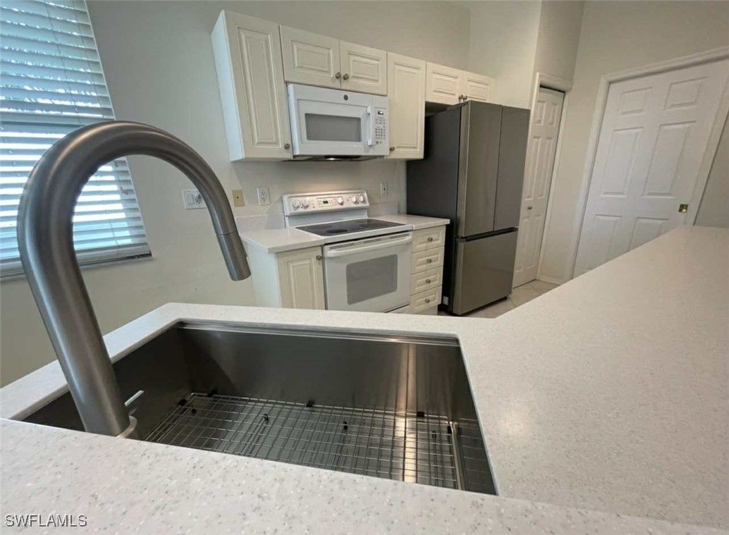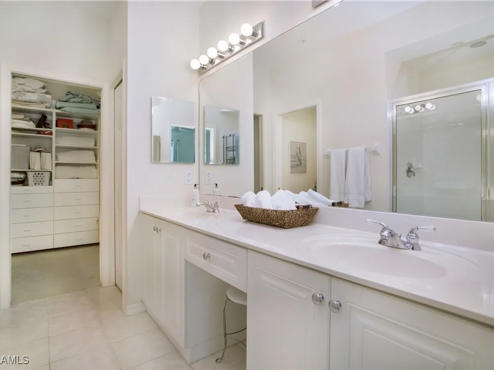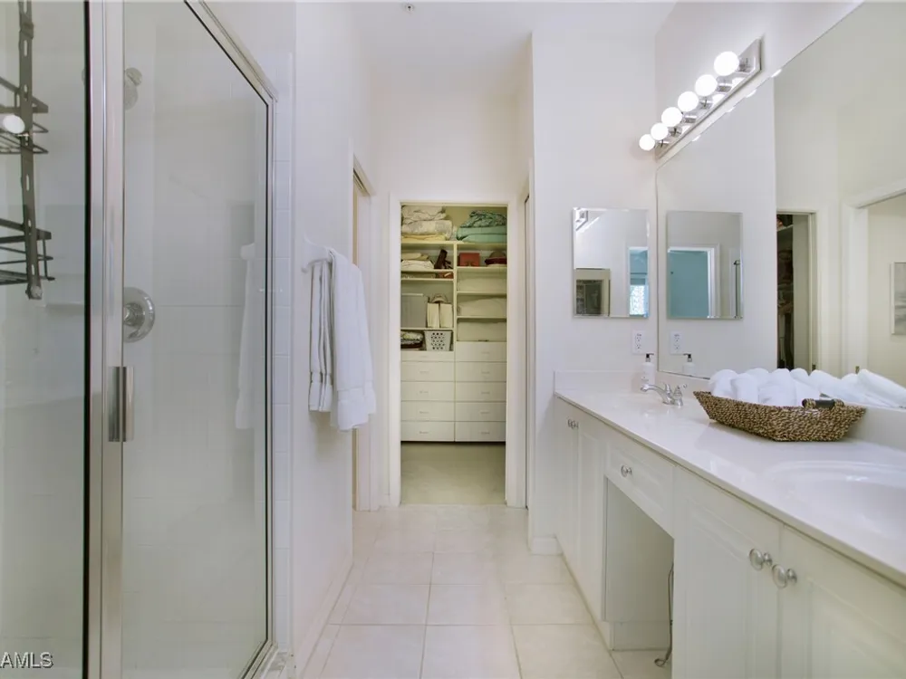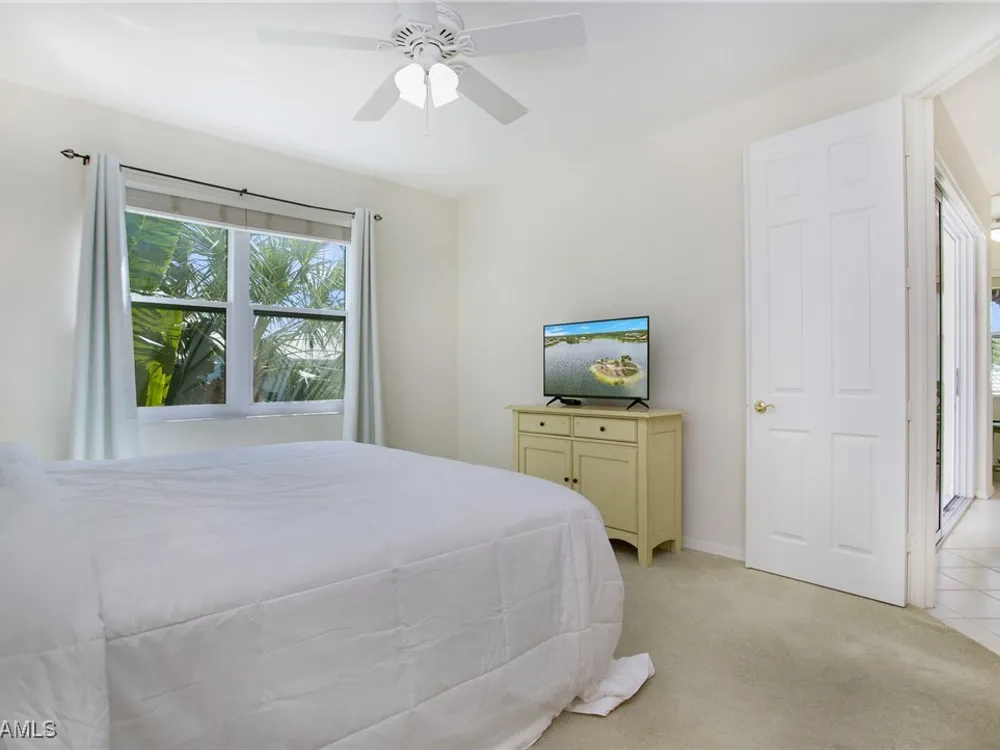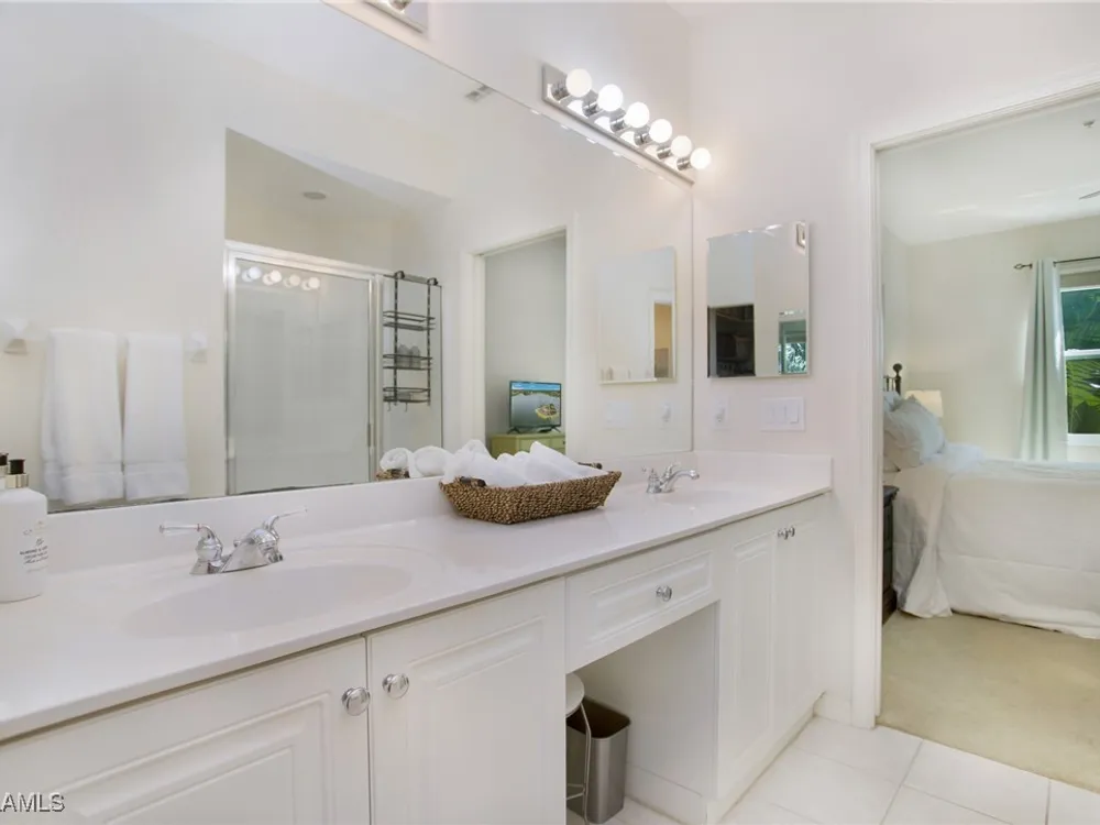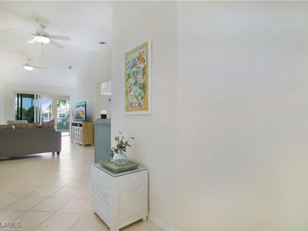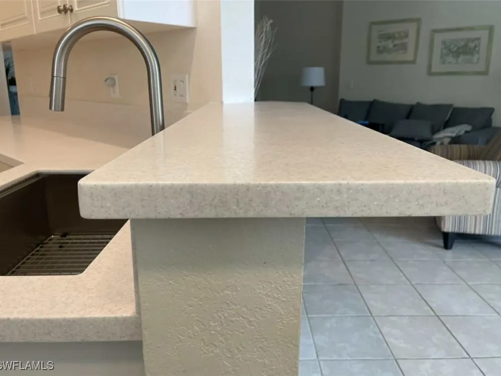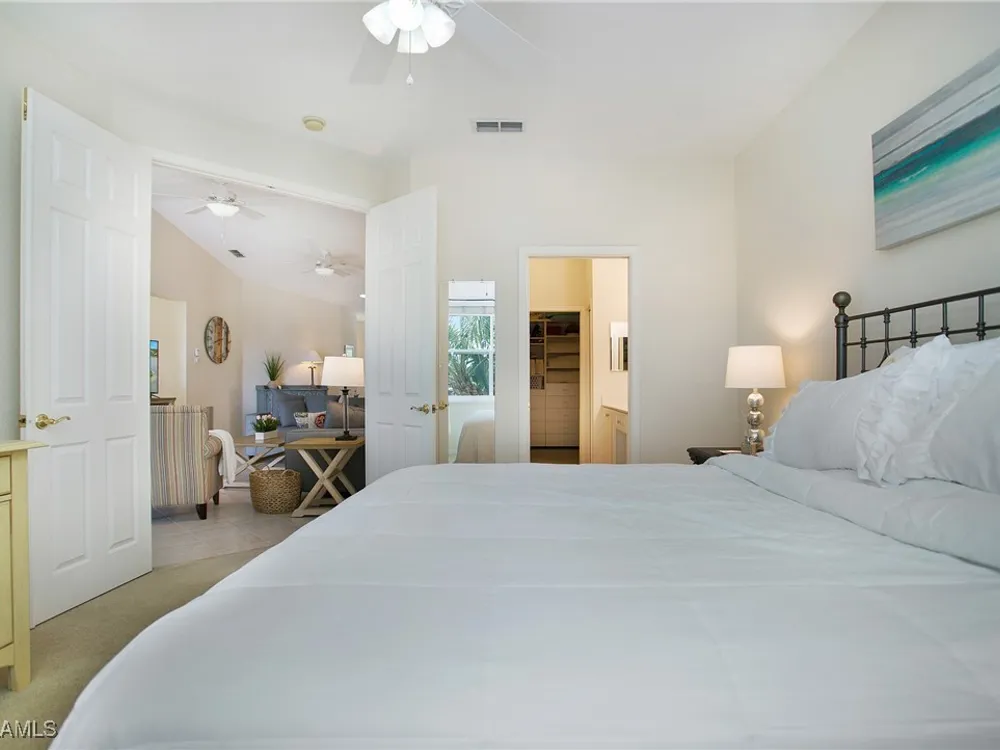 NEW KITCHEN COUNTERTOPS and SINGLE BASIN STAINLESS STEEL KITCHEN SINK. Corner TOP FLOOR UNIT & HIGH CEILINGS! The current owners are using the spacious den with solid french doors as a THIRD BEDROOM. *ONE YEAR HOME WARRANTY INCLUDED WITH PURCHASE* Step into luxury living with this second-floor coach home boasting 2 Bedrooms Plus a Den. This end unit captures the essence of elegance. This condo is turnkey, move-in-ready, with a one car garage, and plenty of guest parking for your friends and family! Bathed in natural light, the open floor plan of this beautiful sanctuary invites you to indulge in a lifestyle of comfort and serenity. You will enjoy the spaciousness of the primary bedroom, featuring a walk-in closet, dual sinks, and a large shower. As you step onto the private screened lanai, be greeted by captivating views of the tranquil lake and enchanting fountain, transforming every moment into a picturesque escape. This stunning unit boasts modern amenities, including a newer roof and recently installed impact glass windows and sliders, ensuring both safety and sophistication. But the luxuries extend far beyond your doorstep. Elevate your lifestyle with exclusive access to the 54,000-square-foot club and spa, where opulence knows no bounds. Maintain your well-being in the state-of-the-art fitness center, or unleash your competitive spirit on the six tennis courts, pickleball, and bocce facilities. Engage in a vibrant social scene with a myriad of activities, or explore the sprawling jogging and bike paths that wind through the community's lush surroundings. Dining becomes an experience unto itself, with options ranging from casual to fine dining, promising culinary delights to tantalize every palate. Optional memberships offer coveted access to golf, beach, and marina privileges, ensuring a lifestyle tailored to your desires. Conveniently located near Marco and Naples airports, beaches, shopping, restaurants, and boating, with quick access to Naples' iconic 5th Avenue, this community offers the epitome of convenience without compromising on luxury. Embrace a life where every moment is infused with peace, elegance, and the promise of a grand lifestyle.