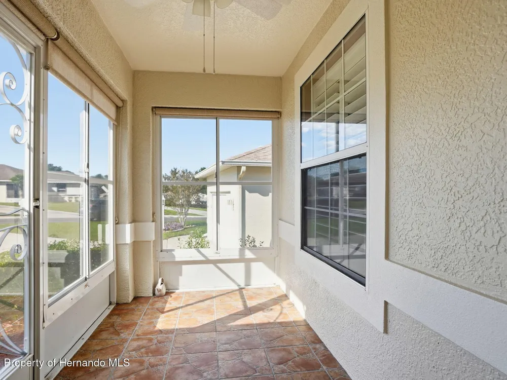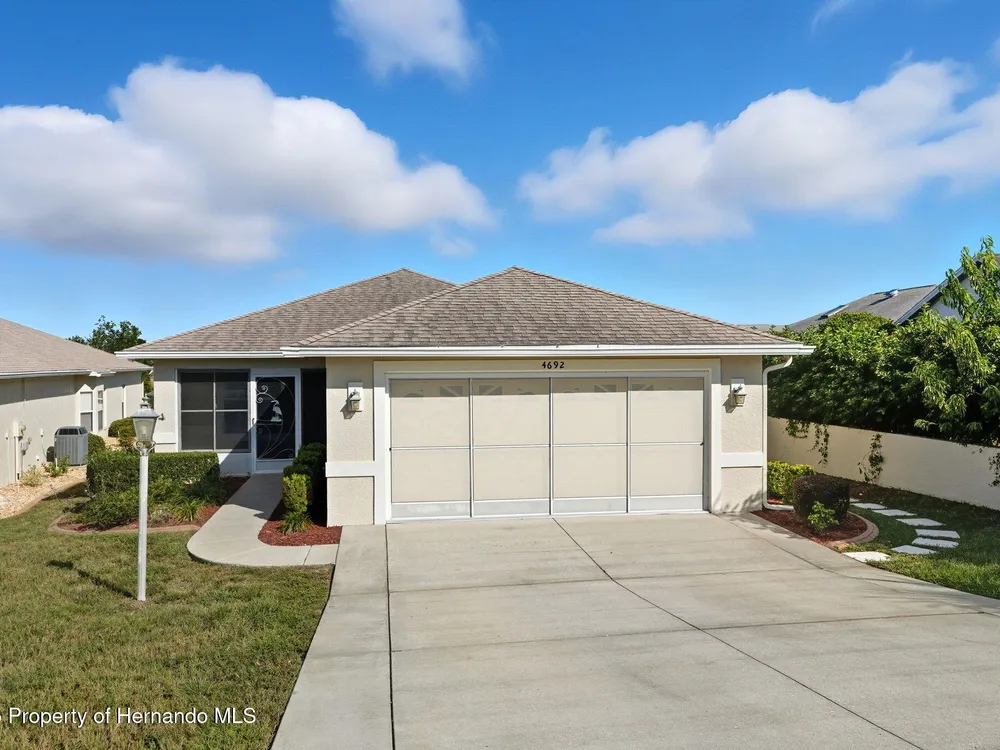 Welcome to the highly sought-after 55+ lakefront community of Arbor Lakes! This adorable and well-maintained 2-bedroom plus office/flex room, 2-bathroom, 2-car garage home offers both comfort and peace of mind. Enjoy beautiful curb appeal and inviting interiors featuring tile and like-new carpet throughout. The kitchen showcases granite countertops, real wood cabinetry, and stainless steel appliances, perfect for everyday living and entertaining. The spacious master suite includes two large walk-in closets, while the inside laundry room comes complete with washer and dryer. Relax year-round in the front covered and screened porch with vinyl windows, or unwind in the large back Florida room and paver patio overlooking the serene community setting. Added luxuries include a whole-home generator (ideal for storm season), shared exterior maintenance, roof (2019), and AC (2022). Built in 2006, this villa offers easy living with maintenance services that include lawn care, pest control, exterior painting every 8 years, and sprinkler maintenance. Arbor Lakes residents enjoy resort-style amenities—a clubhouse, fitness center, community pool, scenic walking trails, and lake access. Don't miss this charming home that combines Florida beauty with effortless living!