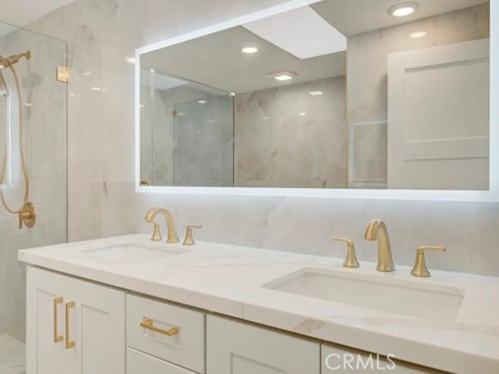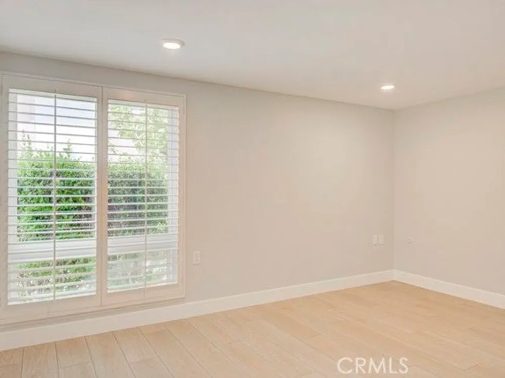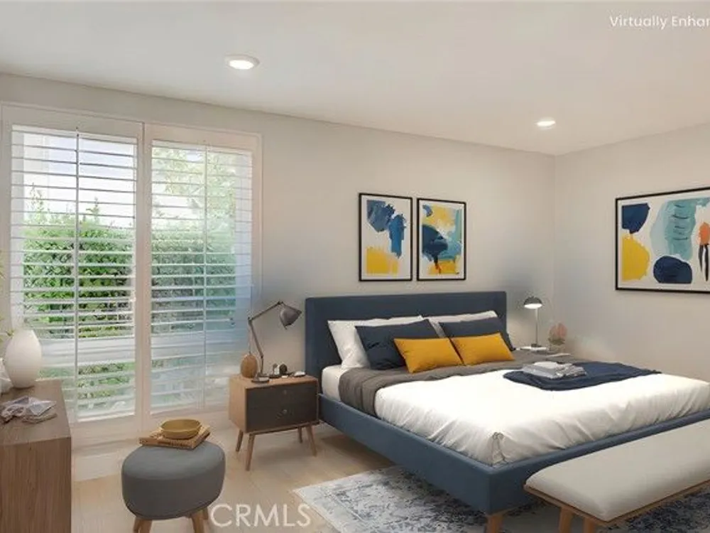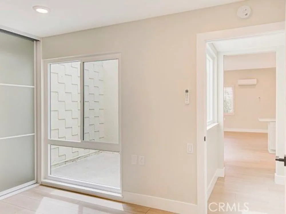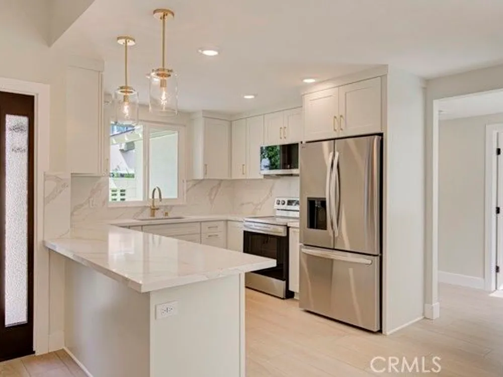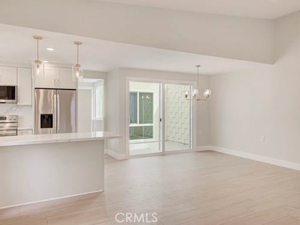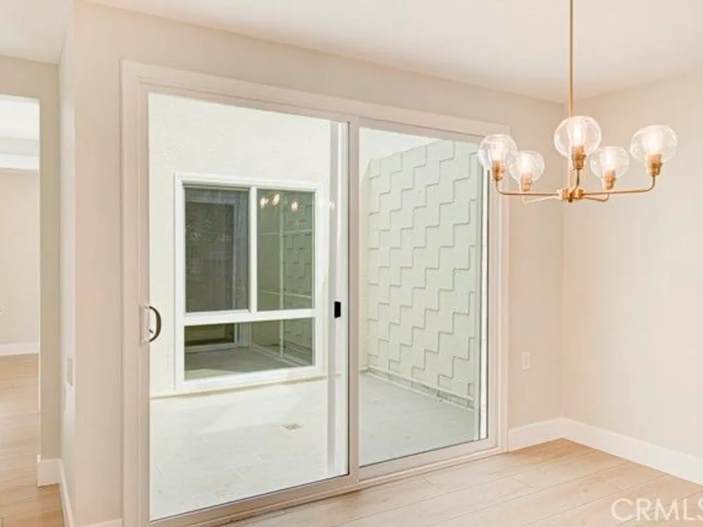 Welcome to 47-D Calle Aragon, a stunning end-unit 2 bedroom, 1 bath VALENCIA model nestled in the heart of the vibrant 55+ community of Laguna Woods Village. This completely remodeled, single-story home blends style, comfort, and functionality in all the right ways. Step inside to find gorgeous light-toned plank flooring, smooth ceilings, and recessed lighting throughout. The open-concept kitchen is a showstopper, featuring quartz countertops, soft-close cabinets, stylish pendant lighting, and brand-new LG appliances—perfect for entertaining or everyday living. Stay comfortable year-round with energy-efficient mini-split systems in the living room and both bedrooms. The spa-like bathroom offers a luxurious retreat with gold fixtures and accents that add a touch of elegance. Enjoy your morning coffee or unwind in the serene open-air atrium, a private oasis perfect for relaxation. Additional highlights include dual-pane windows and slider, and an in-unit washer & dryer for added convenience.