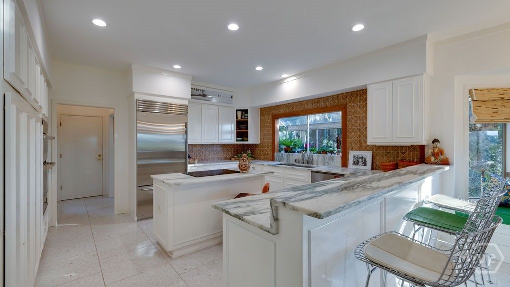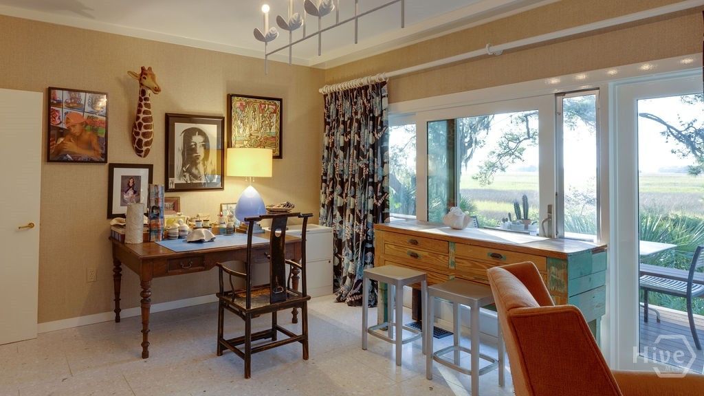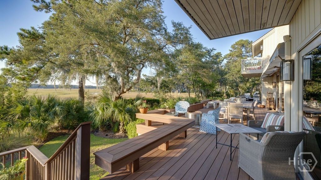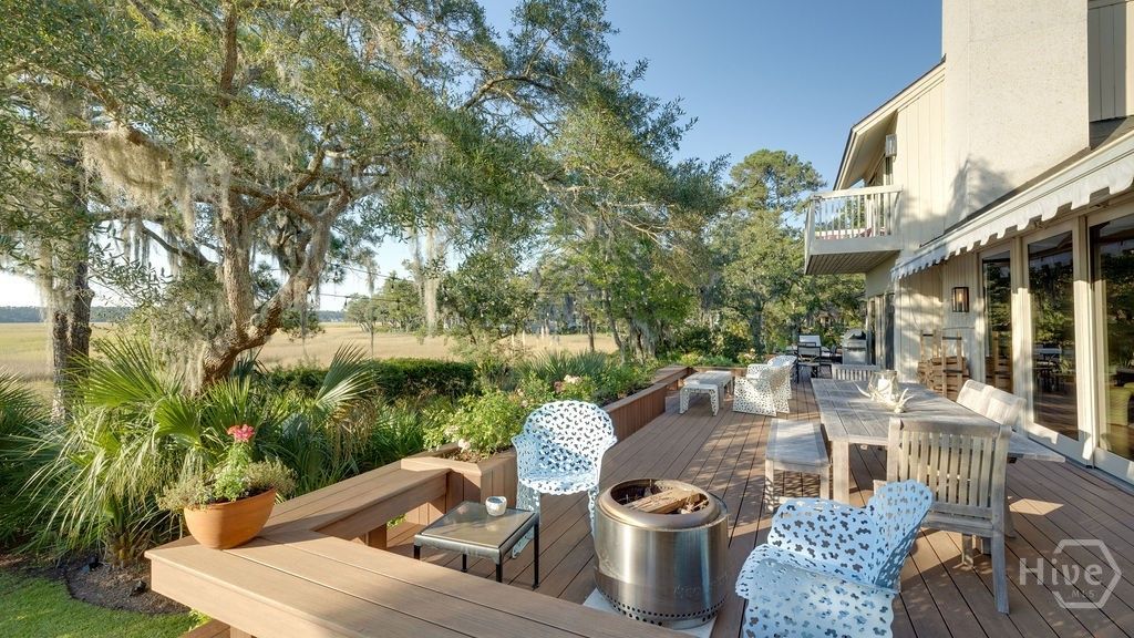 Rare western facing marsh view property in The Landings. Beautifully maintained 4 bedroom sanctuary showcases high-end finishes, exquisite tiles from Savannah Surfaces, waterworks fixtures, visual comfort lighting, Bevelo lanterns and a list of luxury upgrades. The main floor features a versatile layout, perfect for entertaining. Two bedrooms on the main floor, one utilized as an office/spa, could transform into a primary suite. Upstairs includes two spacious bedroom suites featuring private bathrooms and balconies overlooking the tranquil marsh. 3 bathrooms plus a luxurious spa, with hand-swirled concrete tiles, Victoria & Albert soaking tub with stunning brass Waterworks faucet, and relaxing TVLO sauna. The gourmet kitchen boasts durable Vermont Denby marble countertops, reclaimed teak mosaic and high-end appliances; Sub-Zero refrigerator, JennAir oven and Wolf induction cooktop. Expansive patio perfect for enjoying the sunsets. Don’t miss this exceptional coastal opportunity!
