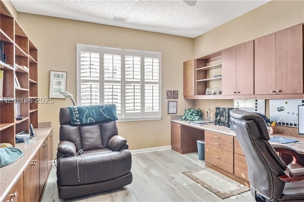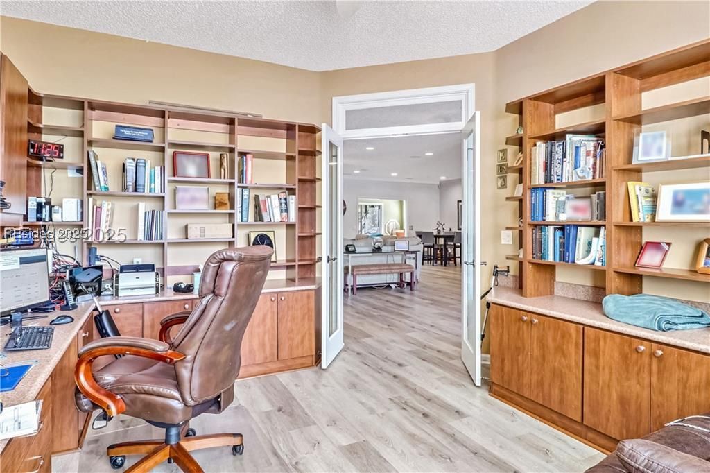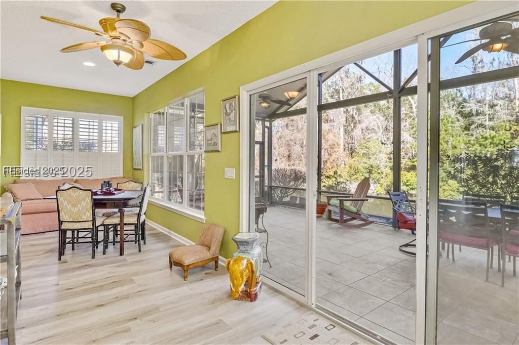 Lilac model with stunning lagoon and forest preserve views. This beautiful home offers 2 bedrooms, 2 bathrooms, a den/office, and a Carolina room with custom built in sitting area. Enjoy the outdoors from the covered 400 sq. ft. screened lanai. The oversize eat in kitchen is a chef's dream with granite counters, cherry cabinets, a gas cooktop, and a custom built-in wine bar. The great room features a custom entertainment center built in. Additional upgrades include a new roof (2020), solar tubes, LVP flooring, a 4ft garage extension, attic storage, tech shield, crown molding, smart devices, and a new water heater. Motivated seller bring all offers.