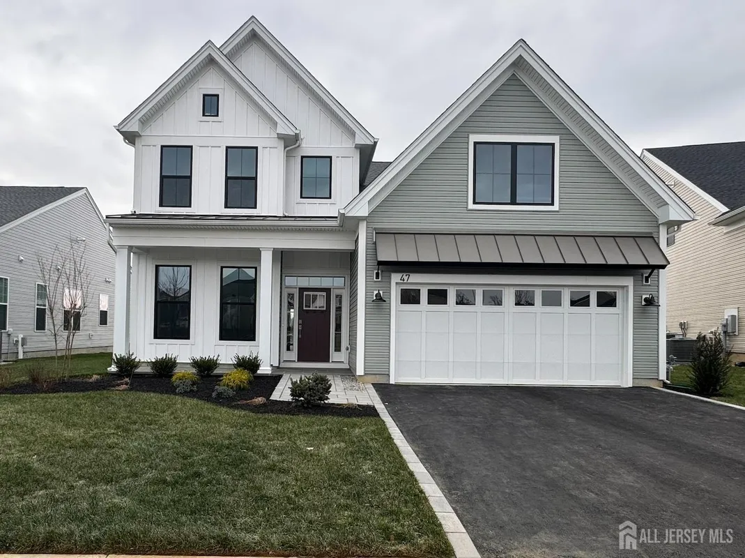 Brand new 5-bedroom, 3-full-bath home (Florham Modern Farmhouse) located in the highly sought-after Regency at Manalapan, a premier resort-style Active 55+ community built by Toll Brothers. The home sits directly across from the Clubhouse, offering exceptionally easy access. Thoughtfully designed with a custom interior and the highest level of upgrades throughout, this residence features an open-concept layout that blends elegance with functionality. Highlights include soaring 20-foot ceilings in the great room, wide-plank engineered hardwood flooring, and expansive windows that flood the space with natural light. The gourmet kitchen is a chef's dream, boasting marble countertops, designer custom cabinetry, a large peninsula with countertop seating, a top-of-the-line JennAir 36" stainless steel range, plus a bonus JennAir double oven and microwave. The adjoining dining and living areas create an ideal space for entertaining or enjoying everyday comfort. The luxurious first-floor primary suite offers a private retreat with a spa-inspired bath, oversized shower, dual vanities, and an expanded walk-in closet. Two additional bedrooms on the first floor provide ample space for guests or a home office. A second full bathroom and a well-appointed laundry room are also conveniently located on this level. Sliding doors from the great room open to a beautiful covered patio for outdoor living. Upstairs, an open-concept loft/bonus area serves as an additional living space. This floor also includes two more bedrooms and a third full custom bathroom. A spacious walk-in attic with windows offers excellent potential, as many homeowners have finished it into a versatile multipurpose room. The entire home is equipped with an indoor and outdoor stereo sound system. Beyond the home itself, residents of Regency at Manalapan enjoy a world-class lifestyle with resort-style amenities, including a state-of-the-art clubhouse, fitness center, outdoor pool, pickleball and tennis courts, walking trails, a dog park, and a vibrant social calendar designed exclusively for active adults. This stunning home combines new-construction luxury with the unmatched lifestyle of Regency at Manalapanan opportunity not to be missed!
