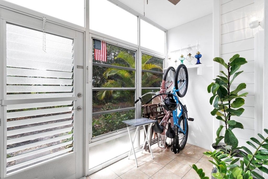 This fully furnished Vista Gardens condo is move-in ready! Conveniently located near the community entrance, this elegant 1st floor, 1 bed/1 bath residence boasts a tiled Florida room w calming views & extra storage. The modern kitchen features butcher block counters + a water filtration system. New washer & dryer! New front storm windows & door. Nice laminated flooring throughout. Freshly painted & no popcorn ceilings! Enjoy 55+ Vista Gardens: heated pool & spa, clubhouse, fitness rm, shuffleboard & tennis. Across form a public golf course and McKee Gardens. 4 miles to the beach! Wow!