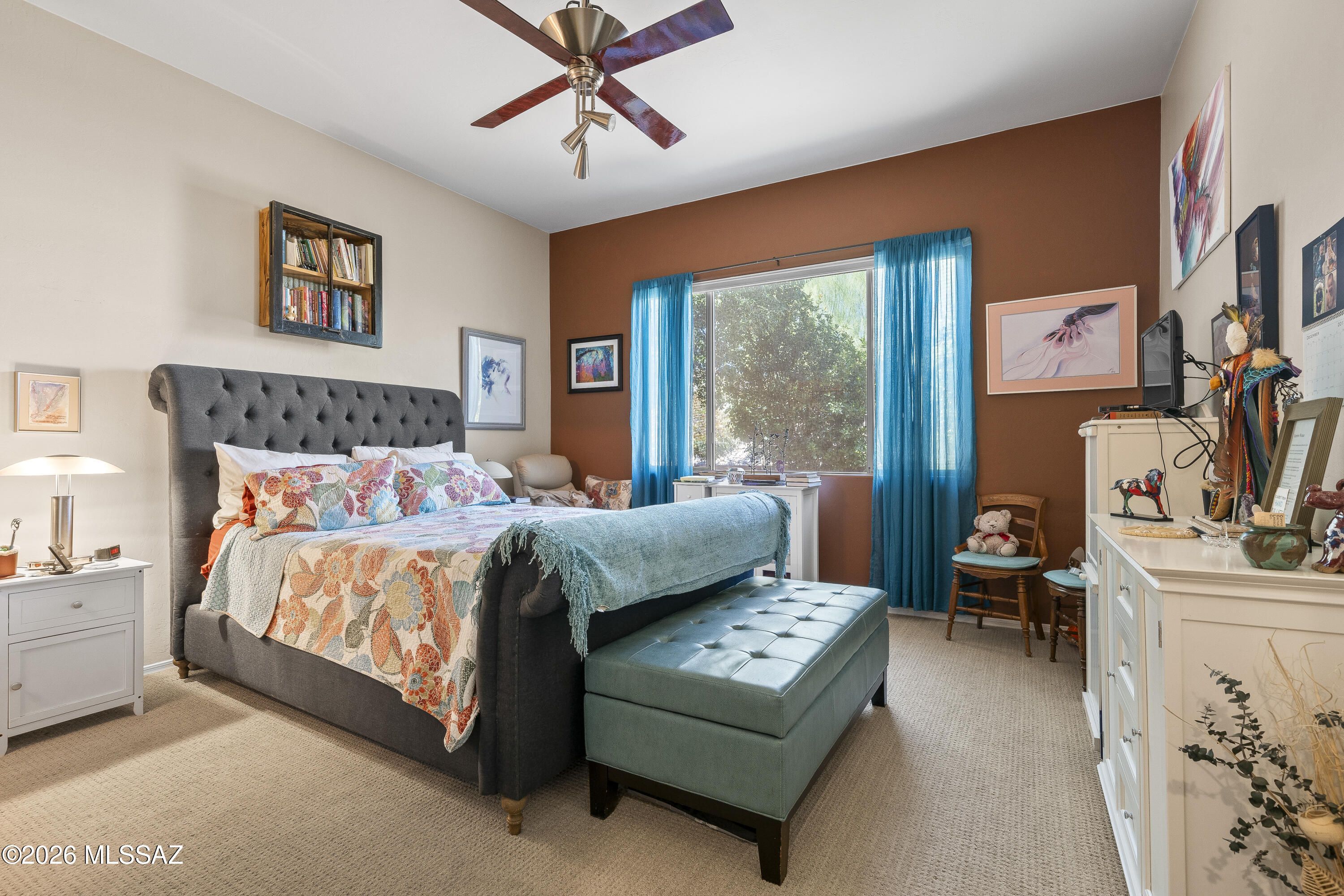 Enjoy this charming great room home in the 55+ community of Las Campanas Sonoma. Built in 2005, the 1,584 sqft residencefeatures two bedrooms, a den, and two full bathrooms, with a split bedroom plan for privacy. The kitchen boasts stainless steel appliances, a center island,breakfast bar, and custom paint. The interior includes tile floors, ceiling fans, and walk-in closets. Outdoors, you'll find a covered patio and low-care desertlandscaping on the large corner lot. This home offers access to Green Valley Recreation (GVR) amenities and is conveniently located near shopping and golf.It also features central heating and cooling, and a 2-car garage.