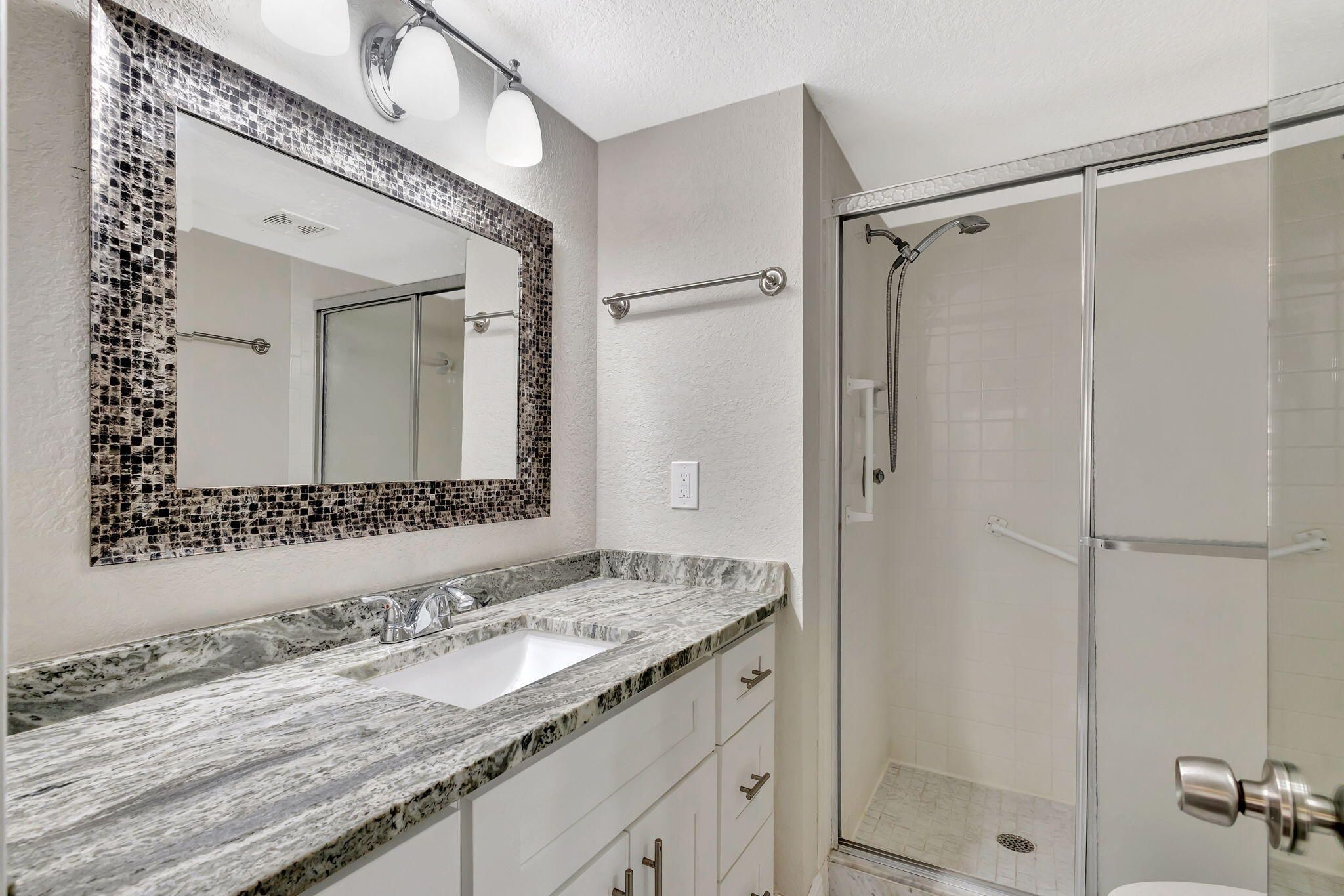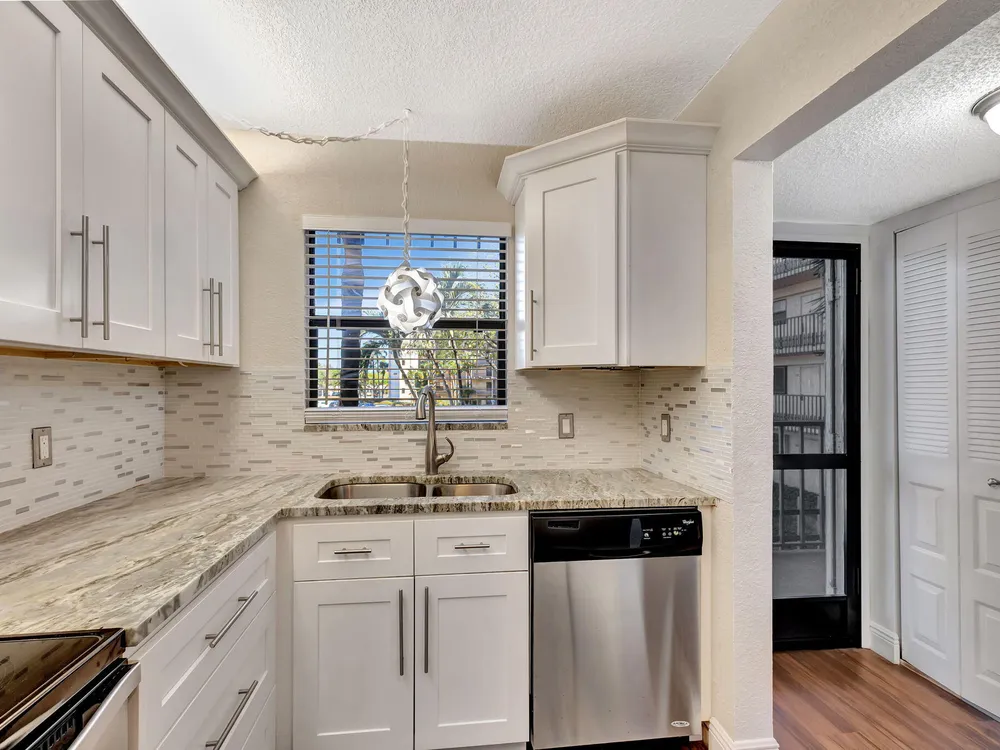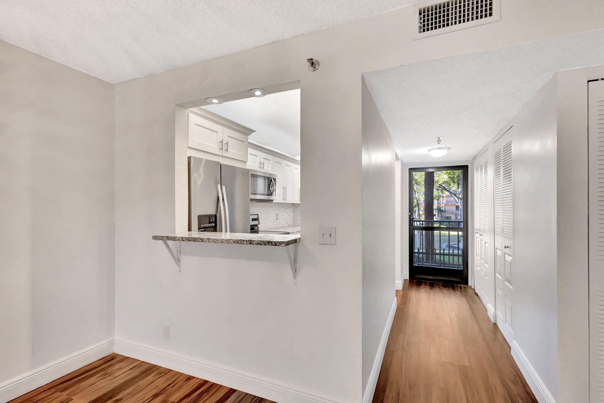 Incredible value! This beautifully remodeled 2BR, 2BA condo (55+ Community) offers a stylish living space with freshly painted walls, a brand-new dishwasher, laminate wood floors, stainless steel appliances, white shaker wood cabinets, exquisite granite countertops, and updated vanities in both bathrooms--In unit washer/dryer is permitted upon submission and approval by the (ARB). With modern finishes and an inviting layout, this home is perfect for relaxation and entertaining. Located in a resort-style community, you'll have access to a terrific clubhouse, making every day feel like a getaway.Conveniently located, this home is just minutes from the movie theater, shopping, dining, the Turnpike, and PBI Airport, with the ocean only 20 minutes away. Don't miss this incredible opportunity!