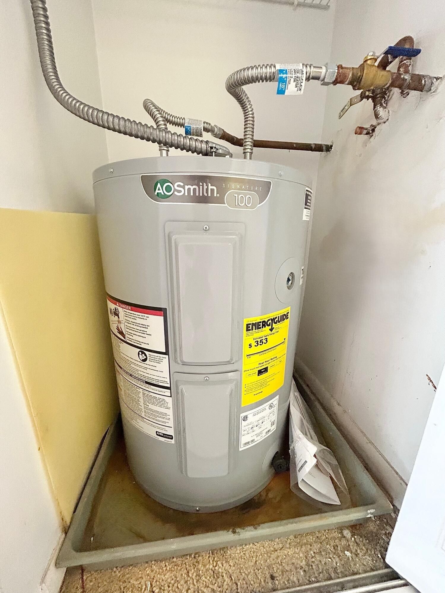 - Electric Water Heater, Disposal, Dishwasher, Electric Range, Refrigerator, Water Heater