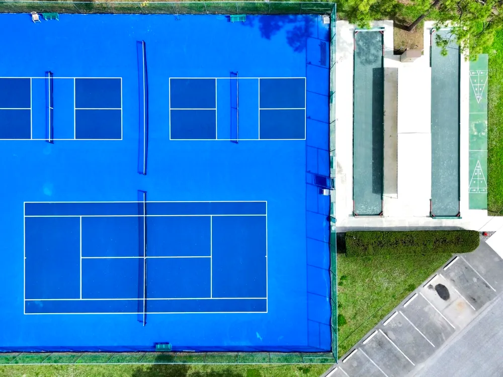 - Bicycle Storage, Billiard Room, Bocce, Business Center, Clubhouse, Laundry, Community Room, Community Bus, Elevator, Fitness Center, Library, Pickleball, Pool, Tennis Court(s)