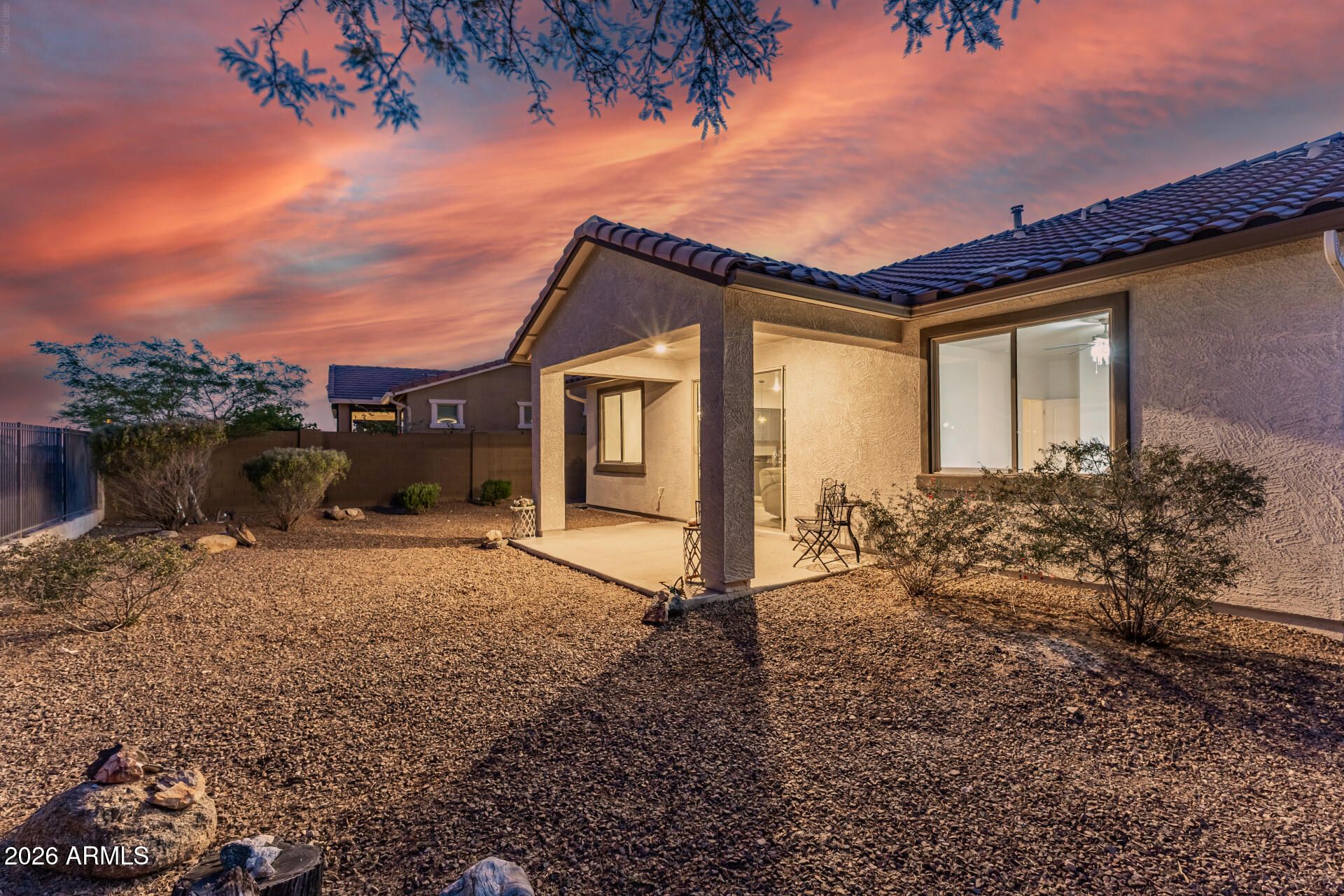 Exciting Price Adjustment! This beautiful, original-owner home was painted just a year ago and sits on an elevated lot with stunning views of the White Tank Mountains. Upgrades include a Native Sun security door and an Elegant Entries glass-encased front door with sidelights. The large, open living area features granite kitchen countertops and a full appliance package, including a stacked washer and dryer and a whole-house water system. The primary suite offers a walk-in closet and an en suite bathroom with dual sinks and a walk-in shower. The guest bedroom boasts views of the White Tank Mountains and is conveniently located next to a full bath. Situated in the resort-style 55+ community of Victory at Verrado, residents enjoy access to a clubhouse, fitness center, pools, spa, pick and tennis courts, billiards, on-site dining, and miles of scenic desert trails. Additionally, residents have access to all amenities at the Verrado Center on Main.
