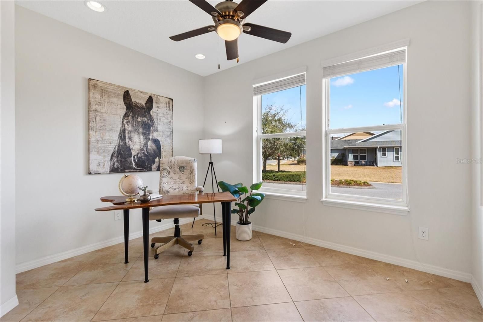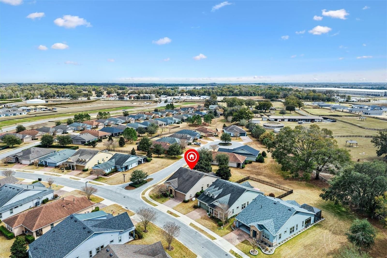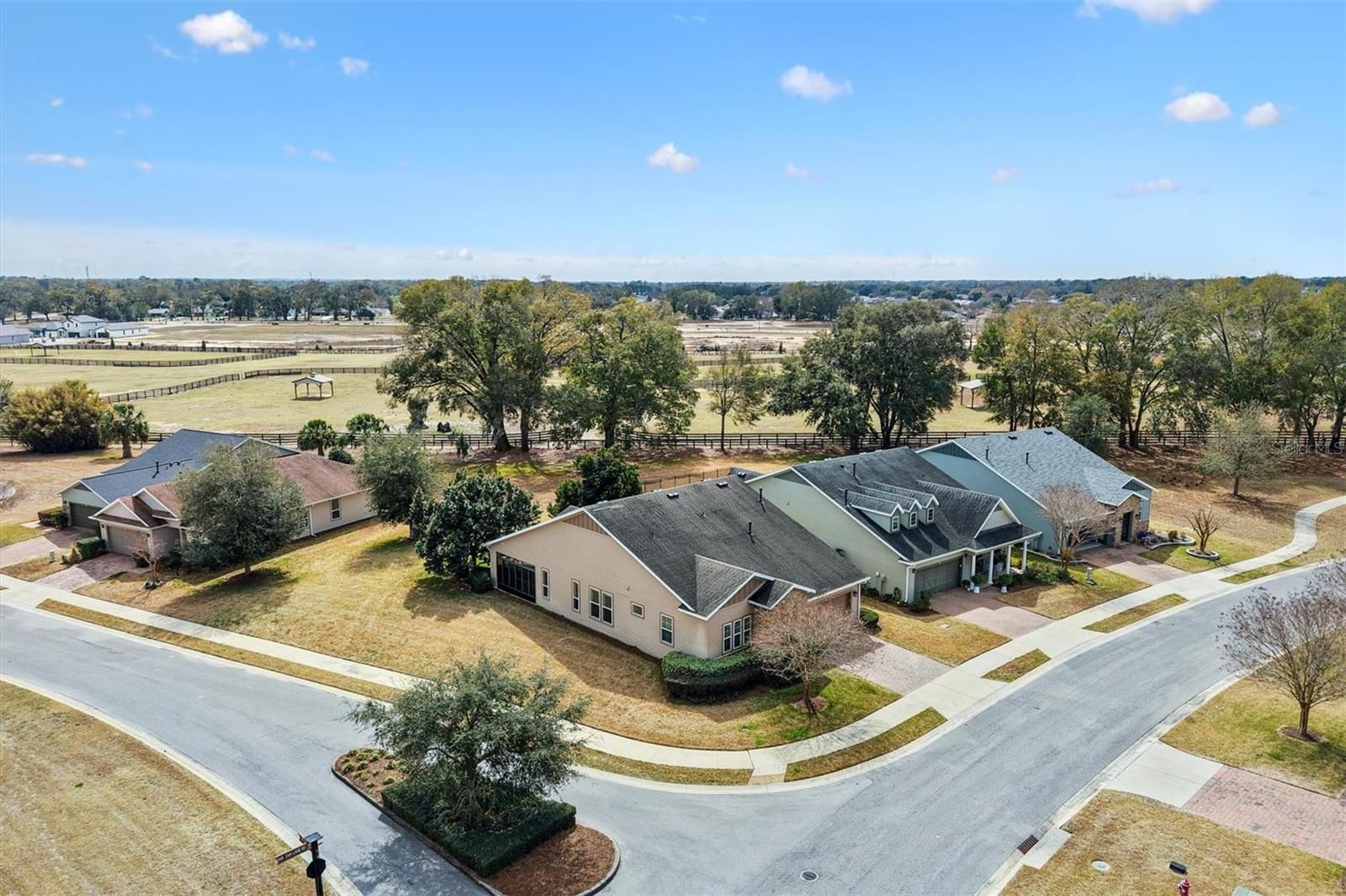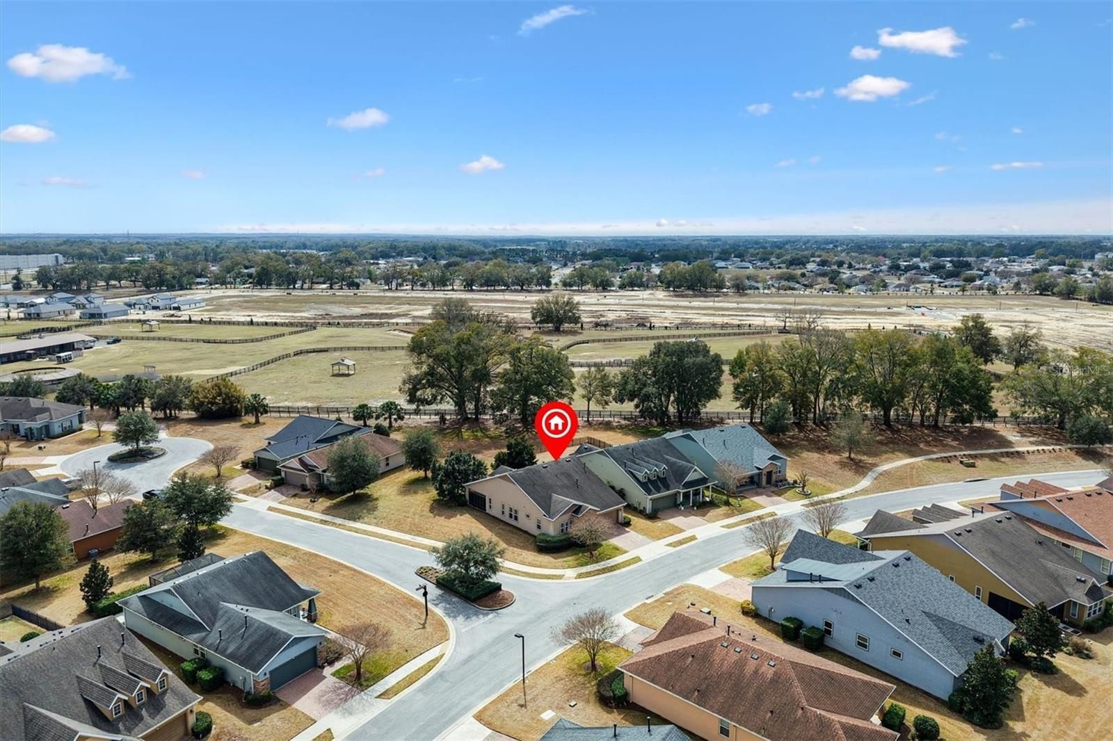 In the heart of horse country, this beautifully upgraded Cannes model by Shea is ready to welcome its new owners! Perfectly situated on an oversized corner lot backing to a horse pasture, this home offers rare and serene views that are hard to find. Just minutes from WEC, HITS, FAST, and more, you’ll enjoy both convenience and tranquility. Step through the glass front door into a bright, inviting interior featuring upgraded tile flooring with accent designs and soaring volume ceilings. Just off the entry, the guest bedroom—currently used as an office—features custom shelving and large front-facing windows that fill the space with natural light. The full guest bath, complete with a tub/shower combo, is just steps away, making this room ideal for guests, hobbies, or a home office. A flexible den offers endless possibilities, whether you envision it as a formal dining room, a cozy sitting room, or a creative retreat. The open living room flows seamlessly into the eat-in kitchen—perfect for entertaining. Here you’ll find rich cabinetry, a tile backsplash, stone counters, and a peninsula island that provides both style and function. Off the kitchen, the smart space/laundry room offers additional cabinetry and storage. Relax in the enclosed lanai, fully under air with heat and AC, carpeted for comfort, and designed with thermal glass windows that capture beautiful pasture views. The primary suite is generous in size with expansive backyard views, a walk-in closet, and a spa-like ensuite with dual sinks and a tiled walk-in shower. This home is packed with thoughtful upgrades, including a Generac whole-house generator, new garage door opener with motion-sensing LED lights, a water softener, window tinting on the lanai and south/west exposures, a hot water booster for kitchen and primary bath, whole-house/appliance surge protection, plus a full security system with cameras and Ring doorbell. Living in Ocala Preserve means access to world-class amenities: walking trails, lakeside boardwalk and veranda, spa and fitness center, tennis, pickleball, bocce, resort and lap pools, clubhouse with bar and restaurant, and countless clubs and activities. Don’t miss your chance to own this rare gem—call today to schedule your private tour!