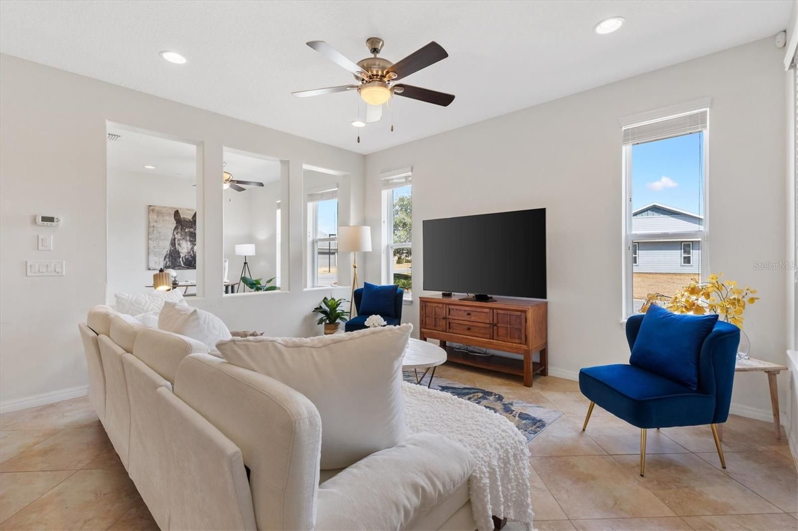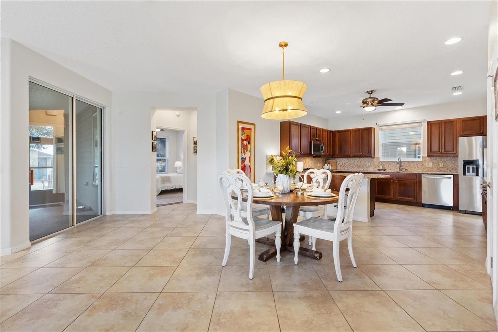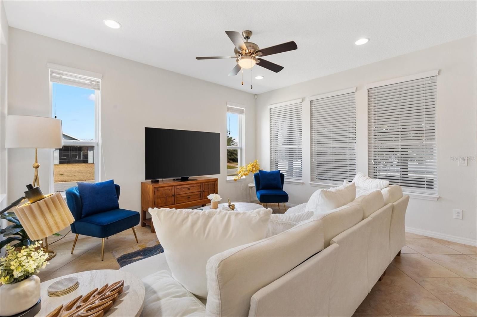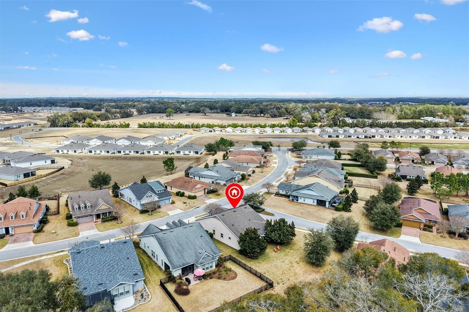 In the heart of horse country, this beautifully upgraded Cannes model by Shea is ready to welcome its new owners! Perfectly situated on an oversized corner lot backing to a horse pasture, this home offers rare and serene views that are hard to find. Just minutes from WEC, HITS, FAST, and more, you’ll enjoy both convenience and tranquility. Step through the glass front door into a bright, inviting interior featuring upgraded tile flooring with accent designs and soaring volume ceilings. Just off the entry, the guest bedroom—currently used as an office—features custom shelving and large front-facing windows that fill the space with natural light. The full guest bath, complete with a tub/shower combo, is just steps away, making this room ideal for guests, hobbies, or a home office. A flexible den offers endless possibilities, whether you envision it as a formal dining room, a cozy sitting room, or a creative retreat. The open living room flows seamlessly into the eat-in kitchen—perfect for entertaining. Here you’ll find rich cabinetry, a tile backsplash, stone counters, and a peninsula island that provides both style and function. Off the kitchen, the smart space/laundry room offers additional cabinetry and storage. Relax in the enclosed lanai, fully under air with heat and AC, carpeted for comfort, and designed with thermal glass windows that capture beautiful pasture views. The primary suite is generous in size with expansive backyard views, a walk-in closet, and a spa-like ensuite with dual sinks and a tiled walk-in shower. This home is packed with thoughtful upgrades, including a Generac whole-house generator, new garage door opener with motion-sensing LED lights, a water softener, window tinting on the lanai and south/west exposures, a hot water booster for kitchen and primary bath, whole-house/appliance surge protection, plus a full security system with cameras and Ring doorbell. Living in Ocala Preserve means access to world-class amenities: walking trails, lakeside boardwalk and veranda, spa and fitness center, tennis, pickleball, bocce, resort and lap pools, clubhouse with bar and restaurant, and countless clubs and activities. Don’t miss your chance to own this rare gem—call today to schedule your private tour!