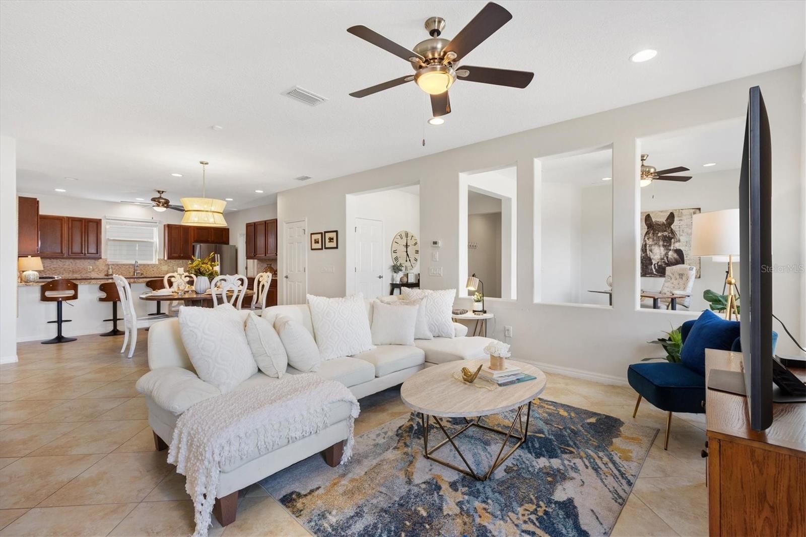 - Eat-in Kitchen, Kitchen/Family Room Combo, Open Floorplan, Solid Surface Counters, Split Bedrooms, Stone Counters, Thermostat, Walk-In Closet(s)