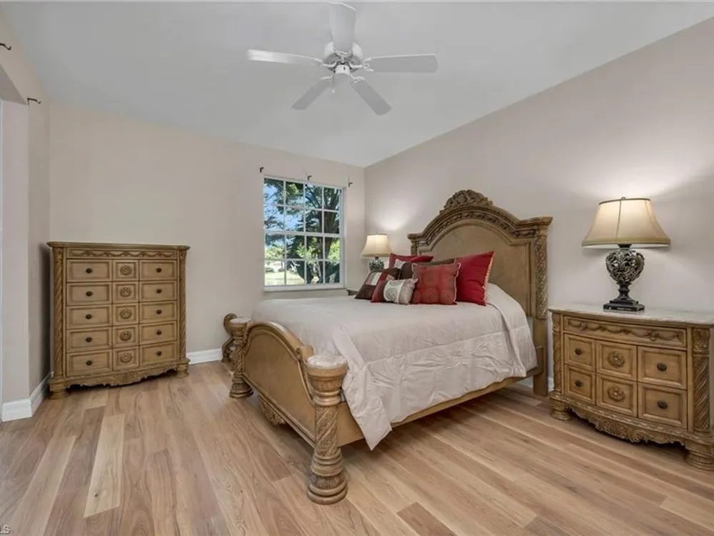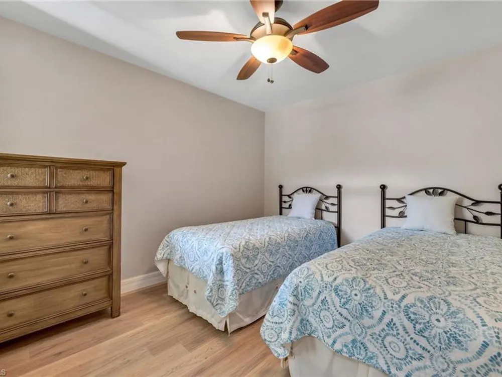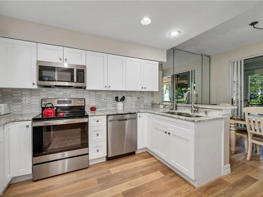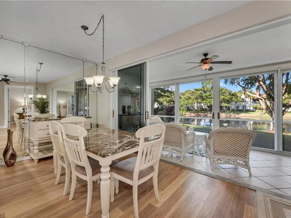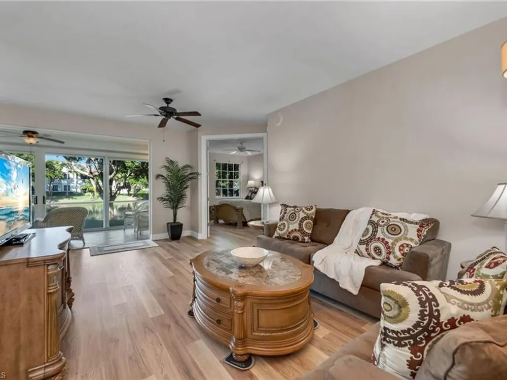 C12873 Impeccably maintained, 1st-floor residence offers a tranquil retreat with captivating lake views in the highly sought-after Bay Pointe neighborhood of Bonita Bay. The thoughtful, open floor plan evokes a feeling of airiness and includes 2 beds plus a den and 2 baths, complemented by new wood-laminate flooring throughout. The beautifully updated kitchen features a sleek, timeless design with stainless steel appliances and elegant countertops. The spacious lanai beckons you to relax in comfort and boasts both sliding glass doors and electric hurricane shutters. This versatile space expands your living area and provides peace of mind with its storm protection features. This condo is ideally situated just a short stroll from the community pool, spa, and exercise room. Experience the true Bonita Bay lifestyle, complete with world-class amenities and the breathtaking natural beauty of Southwest Florida.