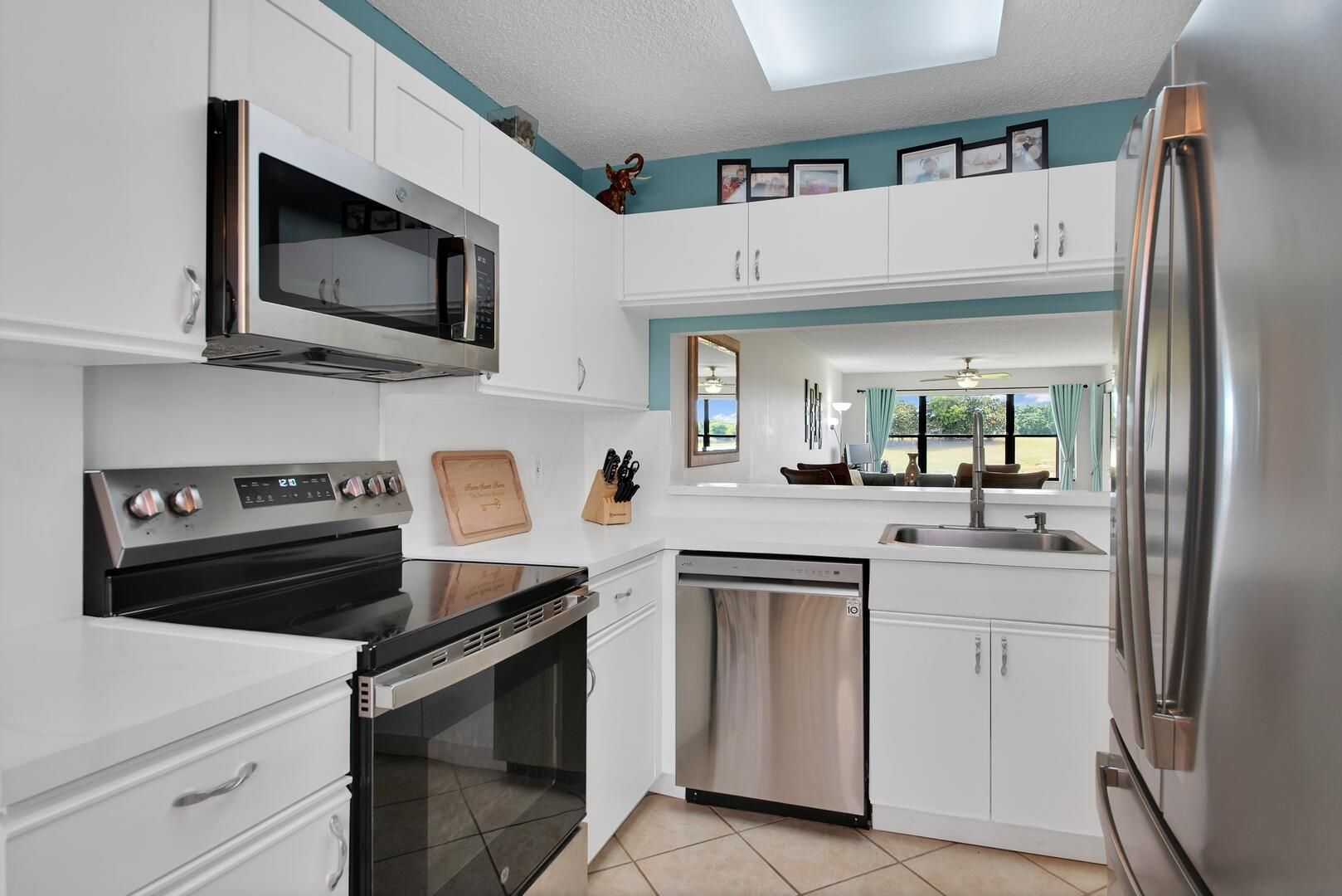 Experience easy living in this beautifully maintained 2-bedroom, 2-bath first-floor condo in sought-after Lucerne Greens. Featuring neutral tile flooring throughout, this light-filled home offers a spacious living and dining area, a kitchen with classic white cabinetry, newer stainless-steel appliances, and a cozy breakfast nook with a convenient pass-through. The primary suite boasts a large walk-in closet, private patio access, and a walk-in shower. Enjoy serene mornings on the screened, enclosed patio with extra storage--perfect for relaxing or entertaining. Move-in ready and ideally located near shopping, dining, and community amenities.