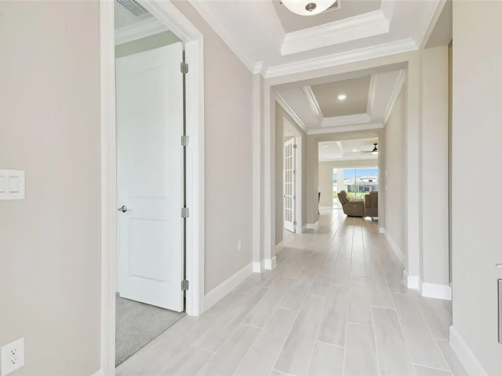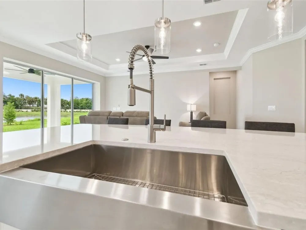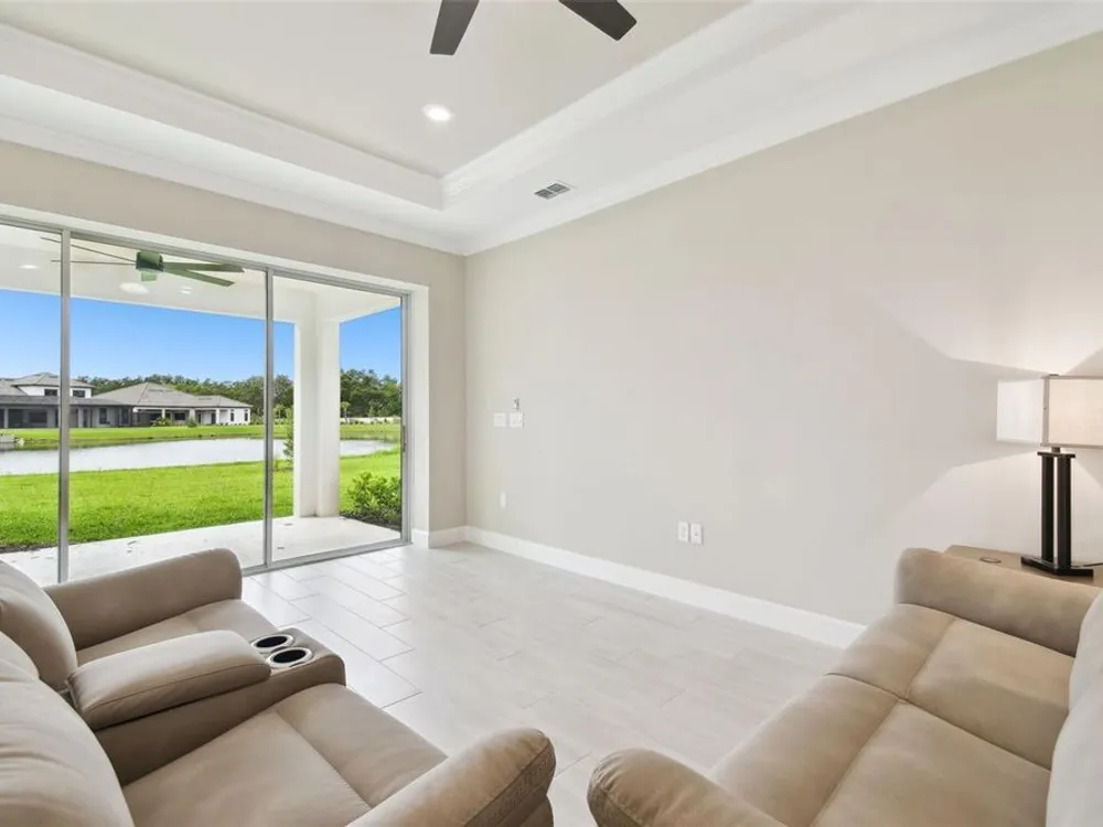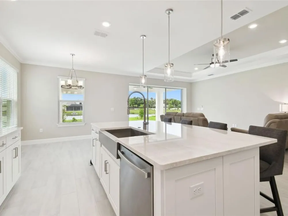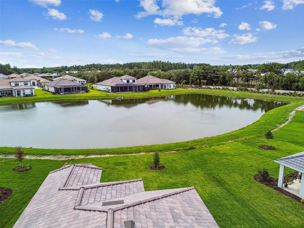 New Taylor Morrison 3 bedroom, 3 ½ bath, office & 2 car garage, 2,118 SF home on oversized lot with water views. Enjoy luxury living in your Esplanade of Wiregrass Ranch home located in a 55+ maintenance free gated community. You will notice the attention to detail as you enter an open floor plan that seamlessly connects the great room to kitchen to the outdoors to create a bright and welcoming space. You will see the extensive interior designer touches including trey ceilings with crown molding. The gourmet eat-in kitchen overlooking a large family room, featuring 42” solid wood cushion close cabinets with crown molding, quartz counters, upgraded stainless steel appliances, a large island that provides for ample entertaining & storage space, as well as a pantry. The oversized owner’s suite with bay window extension is bathed in natural light has dual sinks, large walk-in shower, a custom designed closet, and tray ceiling with crown molding. The spacious family room boasts decorative tray ceilings with crown molding, and lots of natural light. Bedroom’s 2 & 3 each has a large closet and an ensuite bathroom. Extensive upgrades include, but are not limited to eat in kitchen, extended lanai with pocketing sliding glass door, designer tile floors in most areas, extensive crown molding, upgraded carpet, under cabinet lighting, 8’ doors, quartz counters in baths, extended paver driveway, tile roof, large laundry room with sink and cabinets, sprinkler system, ceiling fans, upgraded tankless water heater, and an extended garage with epoxy floors. Step out to the extended-covered lanai with an outdoor living extension overlooking a lake and you will be ready to enjoy the Florida lifestyle! Esplanade of Wiregrass Ranch has a luxurious upscale club house with full-time lifestyle and fitness directors. This home is only a short walk from the Venue. The Venue includes a resort style pool, hot tub, cabanas, dog park, state-of-the-art 24-hour fitness center, billiard/card room, and spa room. For active outdoor entertainment there is a firepit, tennis, pickleball, bocci, and a large meeting/gathering area. Esplanade also includes worry free yard maintenance, reclaimed water and Spectrum TV and internet package included in fees. This home is located only minutes from shopping, I-75, hospitals, restaurants, recreation, and entertainment. Why wait to build when you can buy an even better than new Taylor Morrison extensively upgraded residence now? Come see for yourself this exquisite residence, sit down, relax and call it home! Please see Matterport 3D tour.