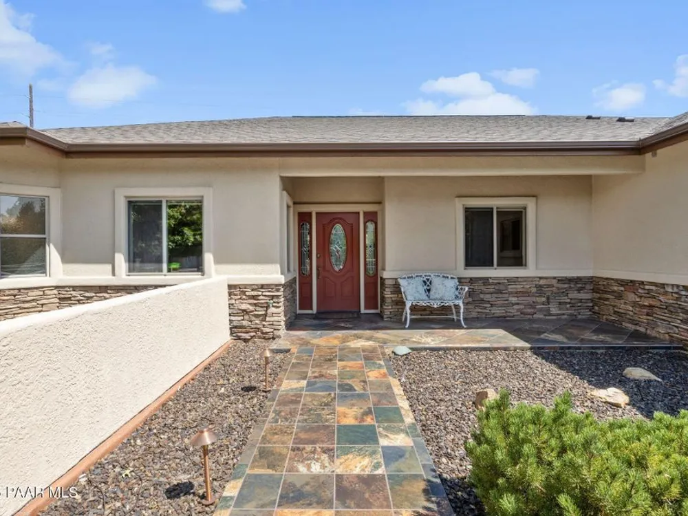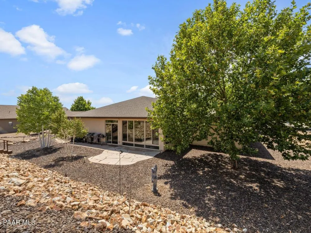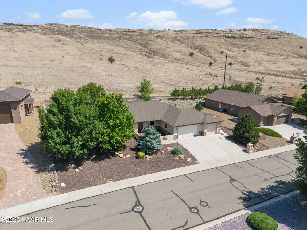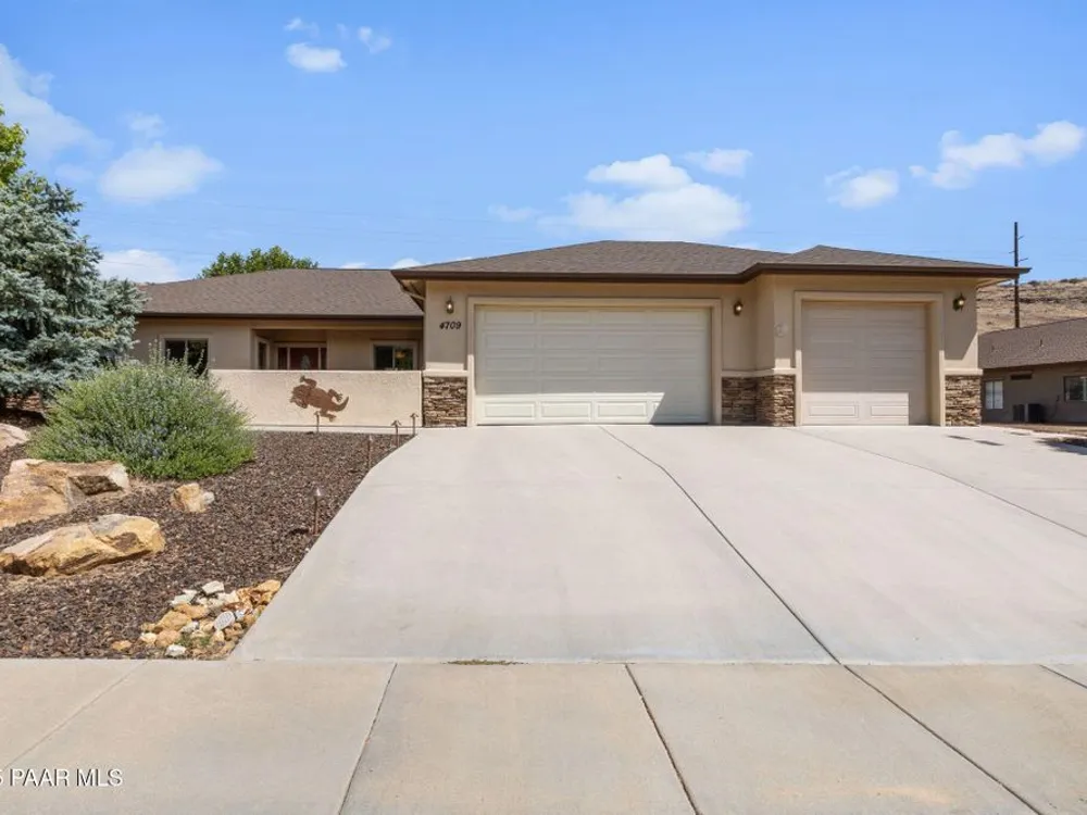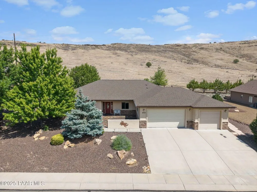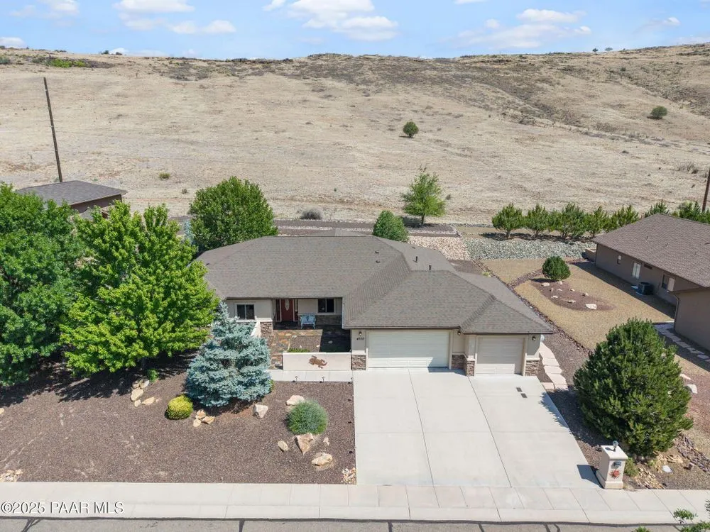 First Time on the Market in Yavapai Hills! Welcome to 4709 Sharp Shooter Way, a beautifully maintained single-level home offering the perfect blend of comfort, privacy, and convenience. This thoughtfully designed residence features 3 bedrooms plus a dedicated office and 2.5 baths, with a split floor plan that provides a private retreat in the spacious master suite. Backing to Arizona State Land and scenic Glassford Hill, the property offers both tranquility and gorgeous natural views. The oversized 987 sq ft, 3-car garage (30 ft deep by 34 ft wide) is a rare find--complete with storage, a workbench, and an easy-access driveway. Inside, you'lllove the beautiful kitchen with breakfast bar, walk-in pantry, and full-extension roll-out drawers, designed for both everyday living and entertaining. Recent updates include a new roof in 2021 and an enclosed patio completed in November 2023. This versatile patio can be enjoyed year-round--open the windows in summer for fresh breezes or keep them closed in winter for a cozy extension of your living space. With low-maintenance mature landscaping, this home allows you to enjoy all the benefits of the desirable Yavapai Hills lifestyle.