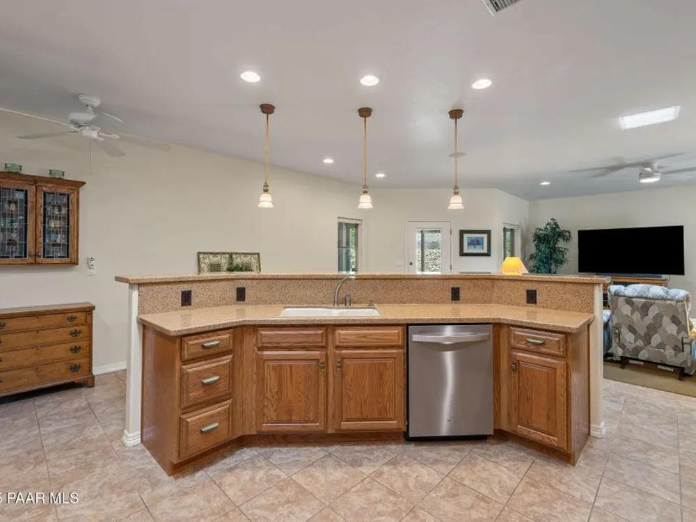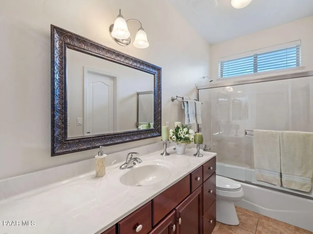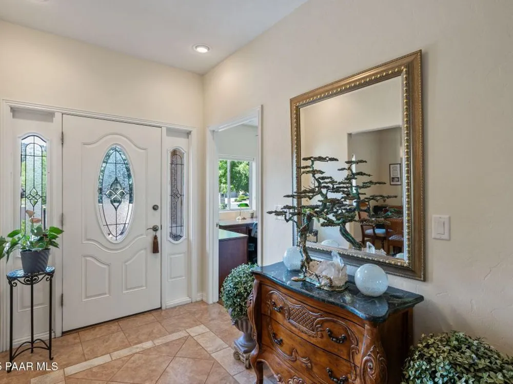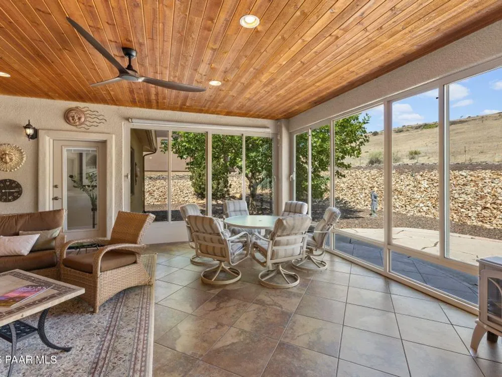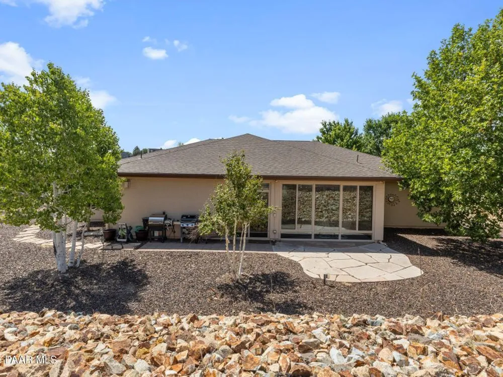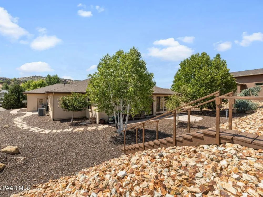 First Time on the Market in Yavapai Hills! Welcome to 4709 Sharp Shooter Way, a beautifully maintained single-level home offering the perfect blend of comfort, privacy, and convenience. This thoughtfully designed residence features 3 bedrooms plus a dedicated office and 2.5 baths, with a split floor plan that provides a private retreat in the spacious master suite. Backing to Arizona State Land and scenic Glassford Hill, the property offers both tranquility and gorgeous natural views. The oversized 987 sq ft, 3-car garage (30 ft deep by 34 ft wide) is a rare find--complete with storage, a workbench, and an easy-access driveway. Inside, you'lllove the beautiful kitchen with breakfast bar, walk-in pantry, and full-extension roll-out drawers, designed for both everyday living and entertaining. Recent updates include a new roof in 2021 and an enclosed patio completed in November 2023. This versatile patio can be enjoyed year-round--open the windows in summer for fresh breezes or keep them closed in winter for a cozy extension of your living space. With low-maintenance mature landscaping, this home allows you to enjoy all the benefits of the desirable Yavapai Hills lifestyle.