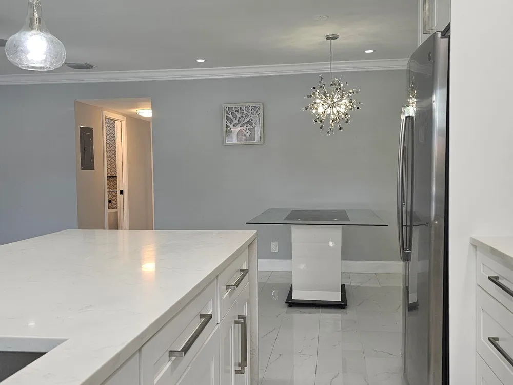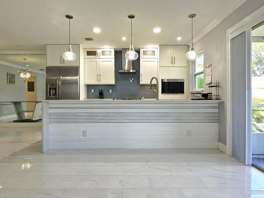 Masterfully upgraded unit that is positioned perfectly for peace and quiet. This condo features White porcelain tiles, waterfall Quartz counter ,New cabinets, high end appliances , brand new AC ,color balanced backsplash and impact windows. Step out the back and you have your own garden , short drive to the beach or Atlantic Ave. This is a unit that is tailor made for the discerning buyer who wants easy access to town, in lush surroundings, and with all of life's modern amenities. Seller ready to move , make an offer.