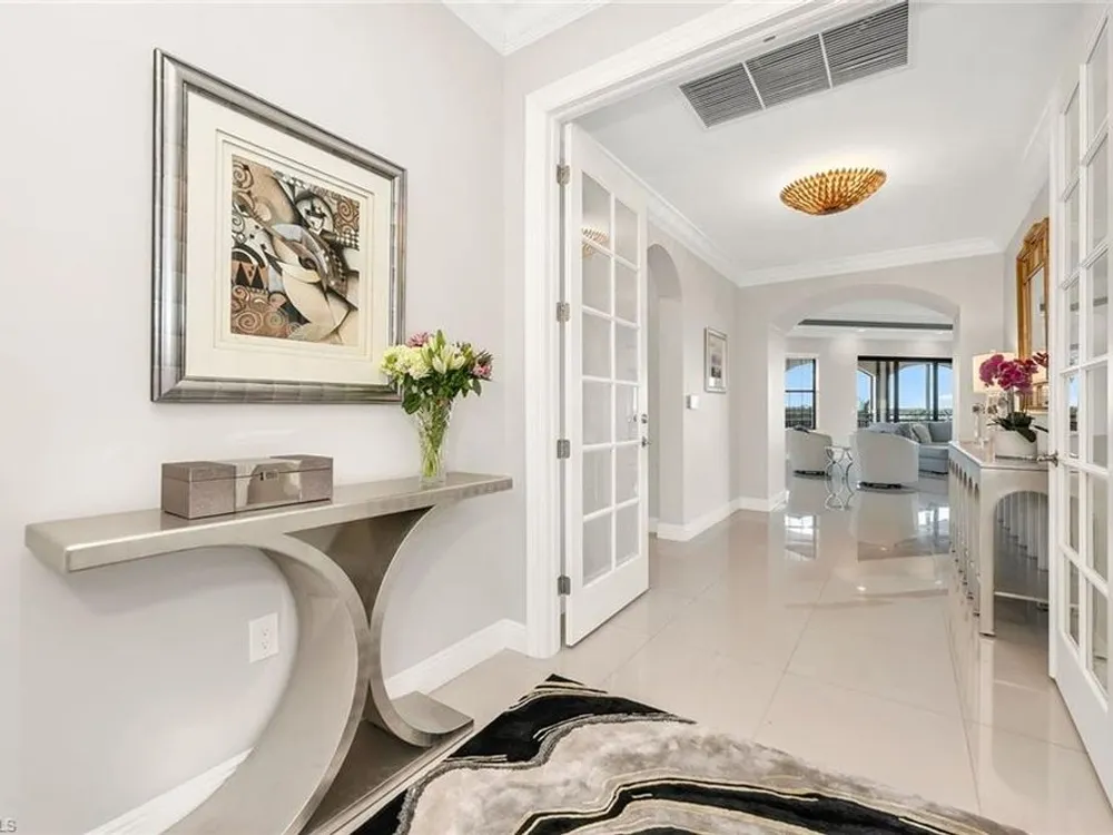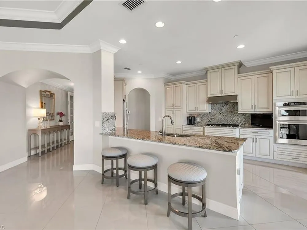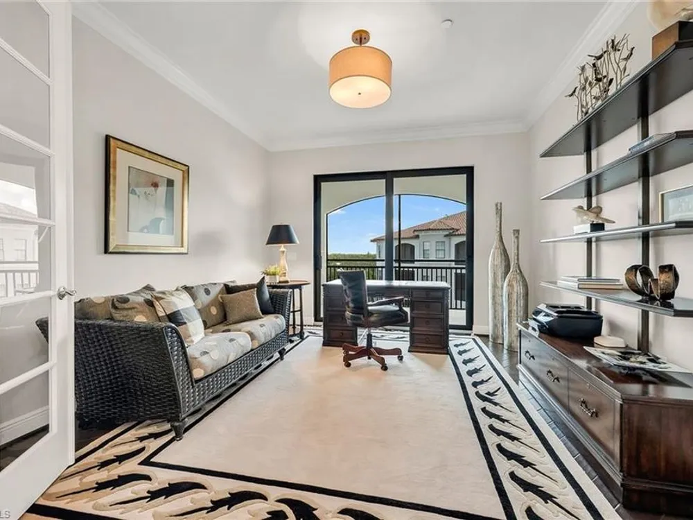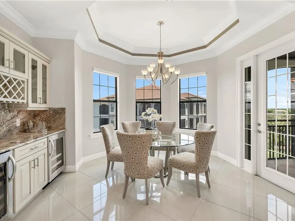 Welcome to Cielo at The Colony, where elegance and comfort blend seamlessly with resort-style living. This 3,000 square-foot residence is thoughtfully designed with a split floor plan, offering privacy and connection in all the right places. The heart of the home is an open-concept living and dining space, enhanced by a chef-inspired kitchen and a stylish bar complete with wine and beverage coolers, ideal for entertaining with ease. Walls of sliding glass invite natural light inside and lead to the expansive wraparound lanai, protected by Storm Smart Kevlar screens, where golf course breezes and serene views create the ideal backdrop for daily living. Three spacious bedrooms, each with its en-suite bath, provide luxurious comfort for family and guests, while the den, with its private lanai, offers a quiet retreat for work or relaxation. A private elevator lobby welcomes you home with exclusivity and convenience. Just a short distance away, enjoy the community pool and hot tub, complete with an outdoor kitchen for casual gatherings under the sun. Beyond your doorstep, The Colony’s renowned amenities await such as tennis, pickleball, bocce, attended fitness, kayak parks, sailing and a private beach pavilion. Residents also enjoy exclusive access to The Bay Club, offering exceptional dining on Estero Bay. This Cielo residence offers not just a home, but a lifestyle where every detail is designed for comfort, convenience and coastal sophistication.
