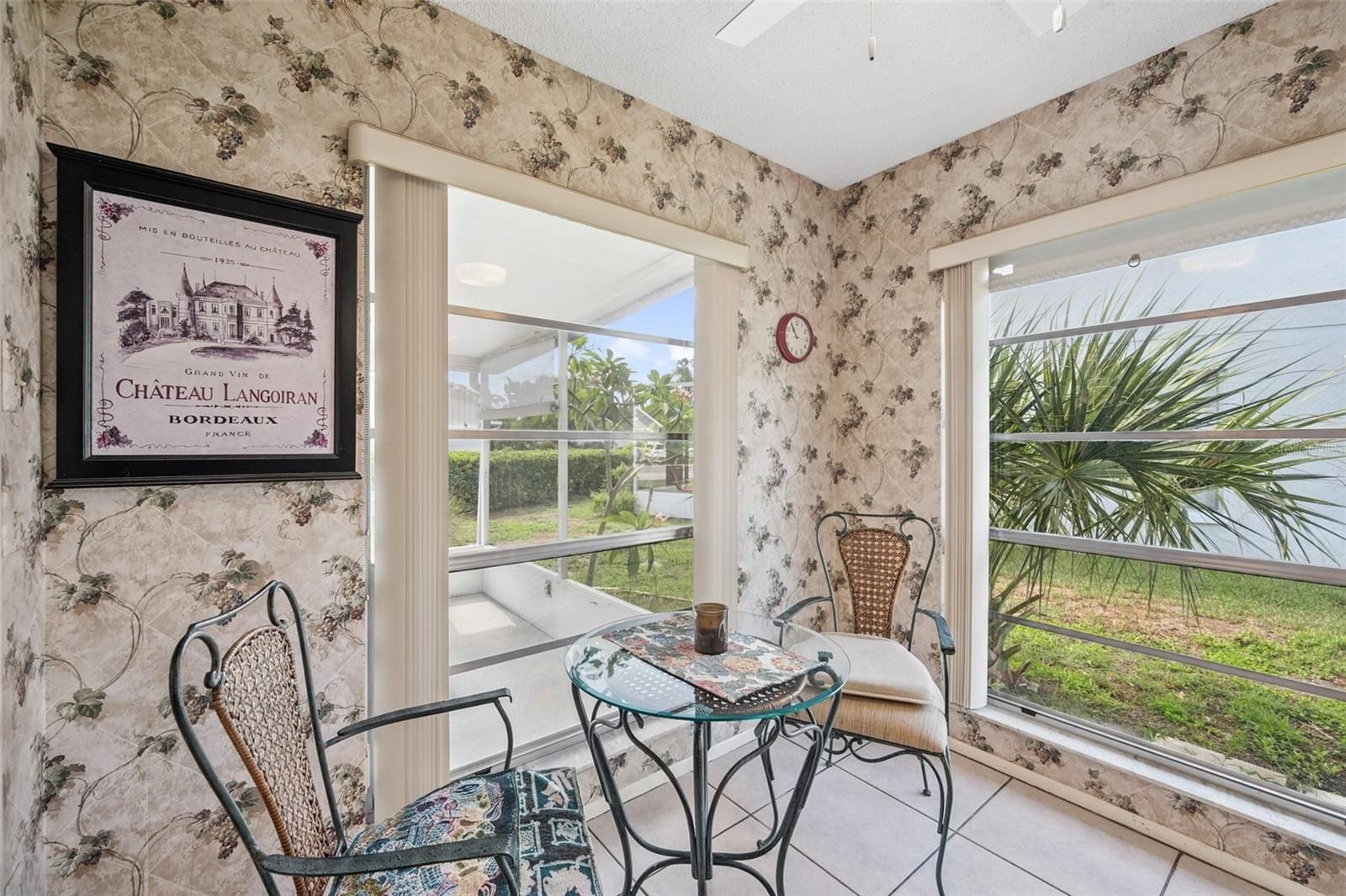 Lovely home in the highly desirable 55+ Heritage Lake community! This well maintained 2 bedroom, 2 bath single family residence offers 1,646 sq. ft. of living space, including a versatile year round Florida Room that expands your everyday living options—perfect for a home office, hobby space, reading nook, or a relaxing spot to entertain. A welcoming double door entry opens to an open, light filled floor plan connecting the living room, dining area, and Florida Room. Since the photos were taken, the wallpaper in the dining room and kitchen has been removed and both spaces have been freshly painted. The kitchen features newer cabinets, solid surface countertops, a large closet pantry plus a secondary pantry, and a charming breakfast nook with sunny windows. The spacious primary suite includes a large walk in closet, an en suite bath with a step in shower, and sliding doors to the Florida Room. The generously sized guest bedroom also offers an oversized walk in closet, and the guest bath includes a tub/shower combo. The Florida Room serves as the heart of the home with access to the kitchen, living/dining area, and primary suite. This flexible space is currently used in part as an office and offers plenty of room for hobbies, relaxing, or casual gatherings. From here, step out to the oversized screened lanai overlooking the private backyard. This move in ready home also features newer waterproof luxury vinyl plank flooring (with tile in the wet areas and Florida Room), ceiling fans in every room, a two car garage, and important updates including a water softener installed in 2022, A/C replaced in 2016, and a roof completed in 2013. Set on a beautifully landscaped corner lot, the property offers comfort, privacy, and easy living. Located in an established neighborhood with low HOA fees of just $74/month and no CDD fees, residents enjoy full access to the clubhouse, heated pool and spa, tennis, pickleball, shuffleboard, bocce, a library, card room, billiards, and a scenic lakeside gazebo. Heritage Lake is known for its warm, welcoming atmosphere and numerous clubs, activities, and social opportunities—an ideal place to stay active and connected. Conveniently located near shopping, dining, medical facilities, parks, and the public library, this home offers a wonderful blend of comfort, convenience, and a vibrant 55+ lifestyle.