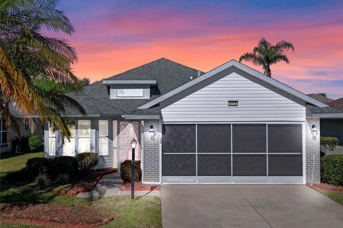 One or more photo(s) has been virtually staged. BRAND NEW KITCHEN APPLIANCES PACKAGE! This expanded Opal Model offers brick and vinyl siding, an inside laundry, gas appliances, and an updated roof (2017)! Our three-bedroom, single owner property features ceramic tile, carpeting, and an enclosed Florida Room with vinyl windows. The primary suite offers tray ceilings, dual vanities, step-in shower, two closets, and lots of space for furniture! With 1615 square feet of under air living space, including a private den area with french doors that lead you to the Florida Room, you'll love the size and space this home provides. The two-car garage is wrapped in pegboard for easy storage and organization of tools, bikes, hoses, and household supplies. All appliances convey, including the extra freezer in the garage! The HVAC was updated in 2014. Royal Highlands is a 55+ golf course community with fitness center, two pools, courts, and tons of clubs! Close to MCO, the Florida Turnpike, I-75, and amusement parks. Come see what Central Florida retirement living is all about! Call for your tour today!