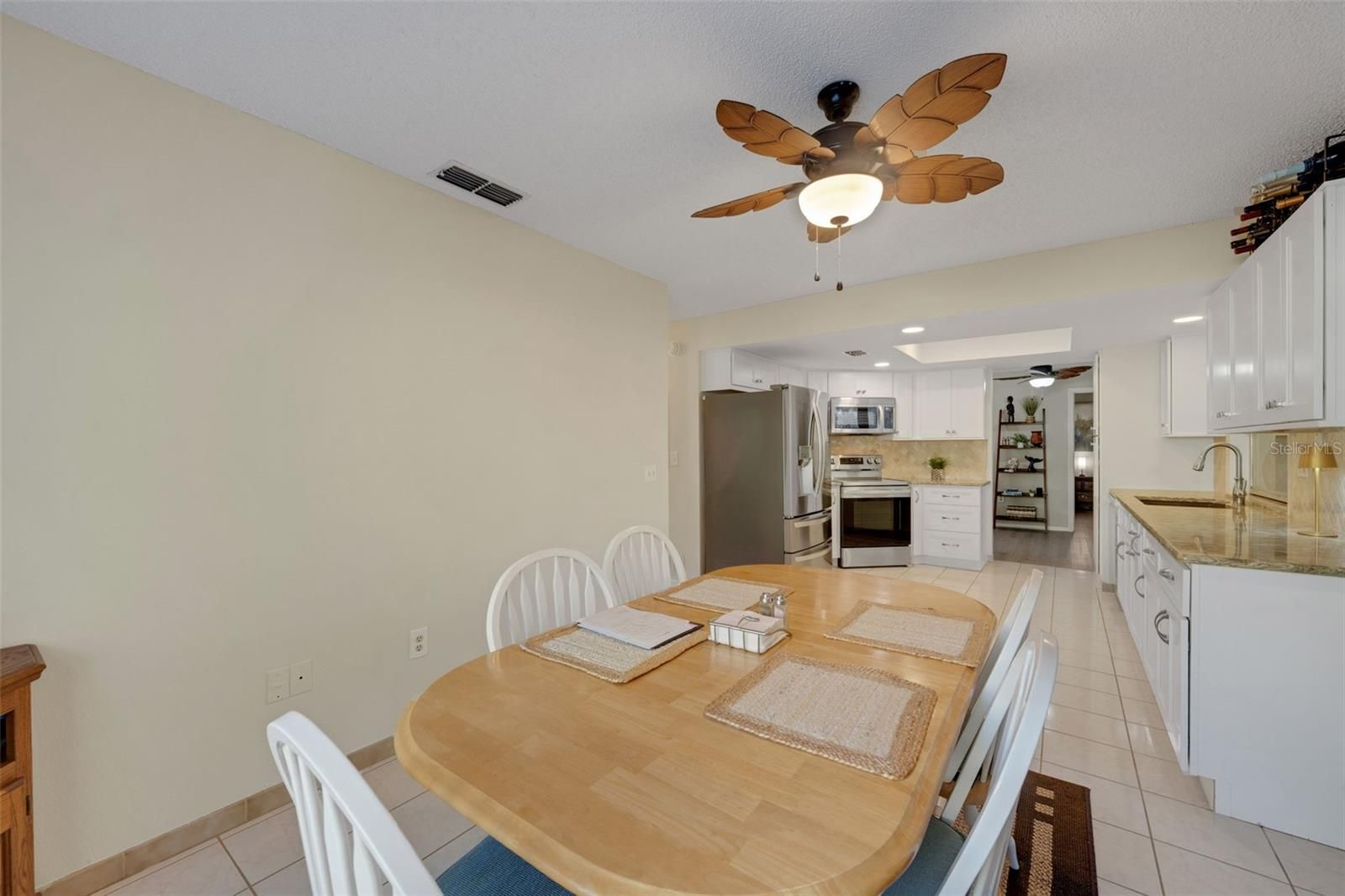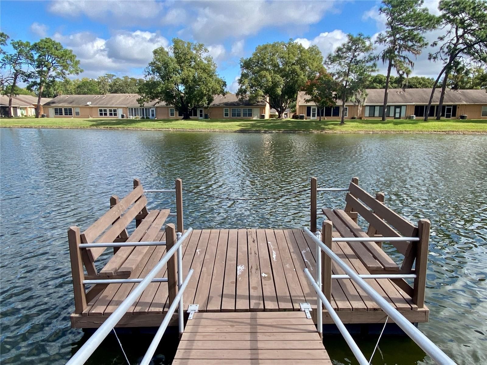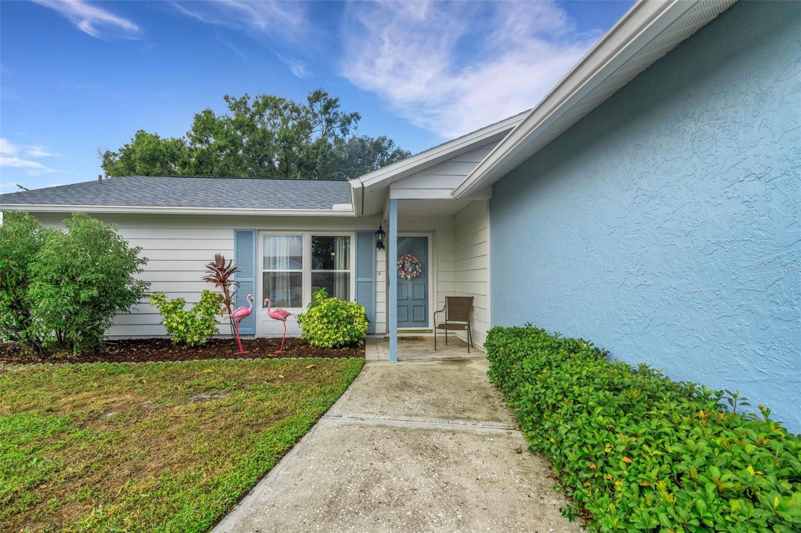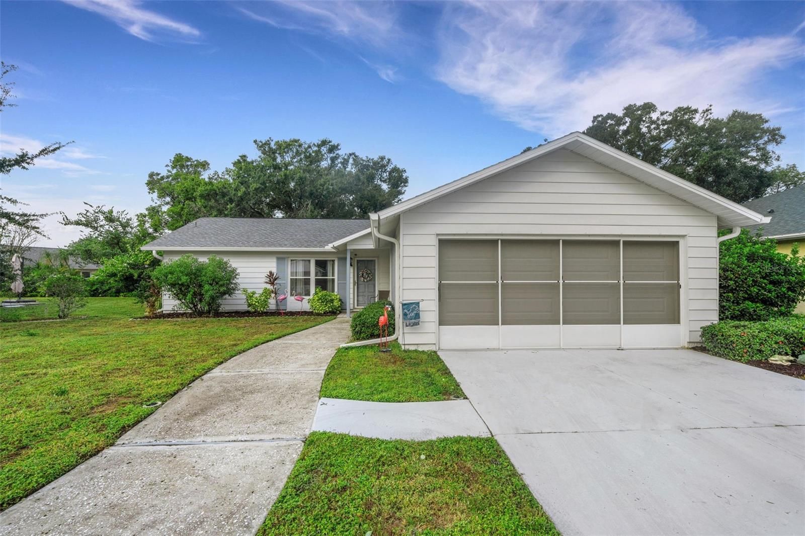 Welcome to this MOVE-IN READY 2-Bedroom, 2 bath, 2 car garage offering 1200 sq ft of living space plus a 290 sq ft ENCLOSED FLORIDA ROOM which will soon become your favorite place to be, overlooking a private back yard. It's perfect for morning coffee, cocktail hour or watching TV. This home has been thoughtfully updated and meticulously maintained, featuring a BRAND NEW ROOF (2024 -with majority of the plywood replaced beneath), all but two WINDOWS are UPDATED, and there's a newer REINFORCED GARAGE DOOR. The HVAC replaced 2021, and the exterior painted in 2024. Inside, you will find an EXPANDED, MODERN KITCHEN with GRANITE, CABINETS WITH SOFT CLOSE DRAWERS, SS APPLIANCES, and MORE. The neutral interior has new interior light fixtures and fans and most interior doors are new. The 2 car garage with a Screen provides privacy while working in the garage. The garage opens to an INSIDE LAUNDRY ROOM with cabinet storage and new washer and dryer 2024. A SPLIT PLAN gives your company privacy with their own UPDATED GUEST BATH, and features a Large Walk In closet! The Large Primary Suite holds a king size bed, nightstands, dressers and room for a desk very comfortably. The Primary bedroom also enjoys a WALK-IN Closet and an UPDATED ENSUITE. This home provides TONS of storage. All this PLUS LOCATION, LOCATION, LOCATION - this home is on A PET FRIENDLY STREET plus JUST STEPS AWAY from the fabulous HERITAGE LAKES COMMUNITY CENTER, convenient to all the amenities in this sought after 55+ community - a Large Heated POOL overlooking the lake, Fishing Pier, Gazebo, and SPA. Play Tennis, PICKLEBALL, Shuffleboard, Bocce, Cornhole plus ALL the endless activities: Billiards, Crafts, Cards, Dances and Parties, Euchre, Mah-Jongg, Line Dancing, Yoga, Stretching classes, Aerobics, and more. Convenient to shopping and restaurants.