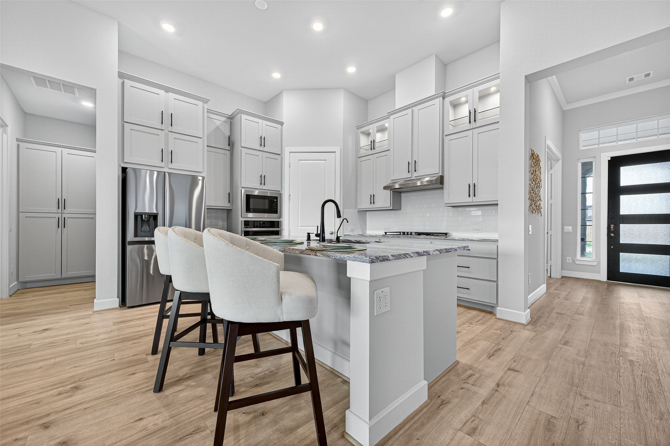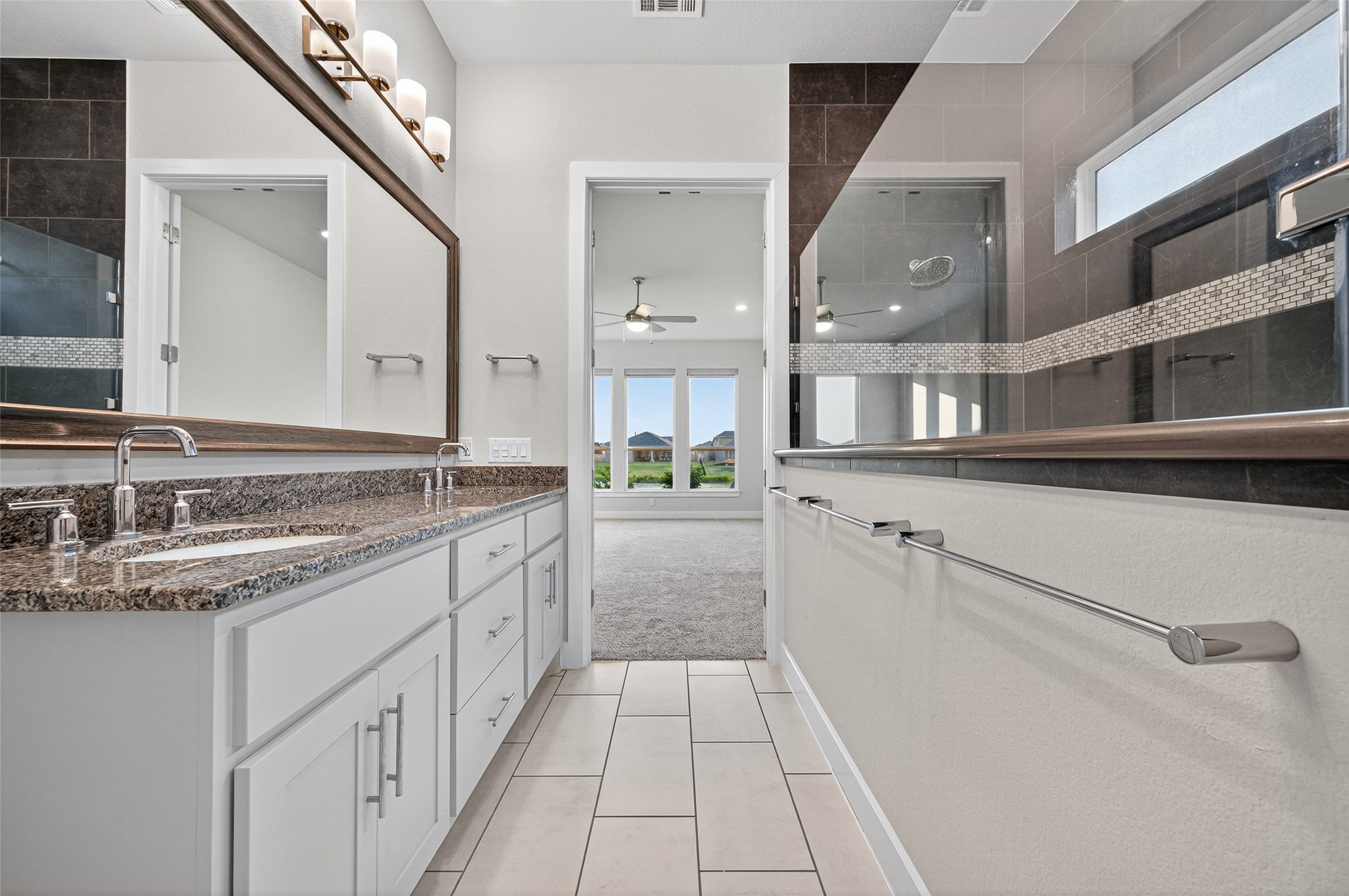 - Breakfast Bar, Double Vanity, Entrance Foyer, Granite Counters, High Ceilings, Kitchen Island, Kitchen/Family Room Combo, Bath in Primary Bedroom, Pots & Pan Drawers, Pantry, Quartz Countertops, Self-closing Cabinet Doors, Self-closing Drawers, Separate Shower, Walk-In Pantry, Ceiling Fan(s), Kitchen/Dining Combo