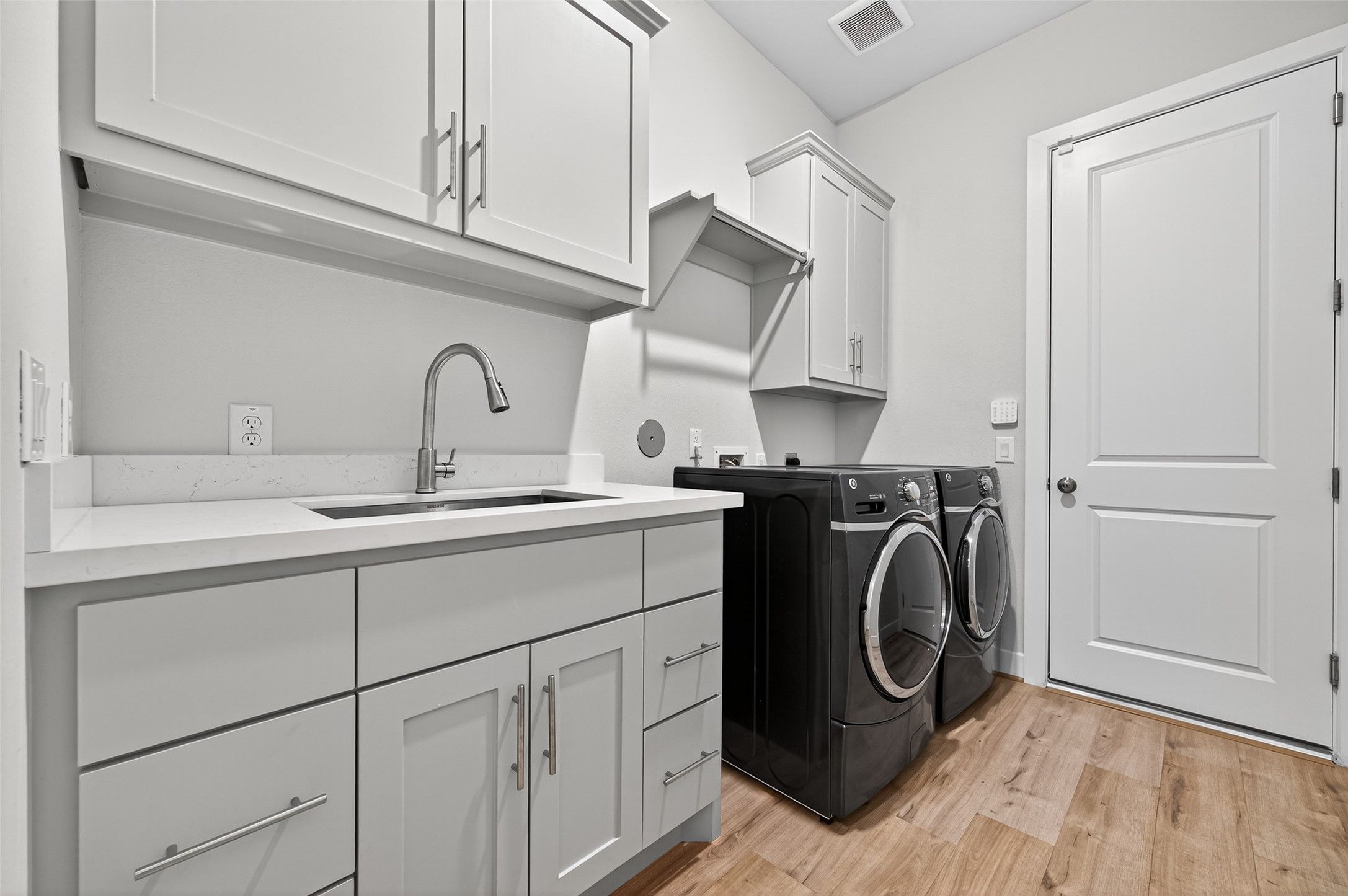 Elegant design meets everyday comfort in this 55+ active community The Juniper plan lakefront home with thoughtful upgrades throughout. Inside, soaring ceilings, crown molding, and luxury vinyl plank floors create a warm and refined backdrop. The open-concept kitchen impresses with double-stacked shaker cabinets, granite countertop, GE Profile appliances, soft-close drawers, and dual pantries designed for both daily living and entertaining. Gather in the spacious dining and family room anchored by a stone-accented fireplace. The primary suite offers new carpet, dual walk-in closets with custom cabinetry, and a spa-like bath featuring granite vanities and an oversized shower. Secondary bedrooms include details like French closet doors and a statement chandelier. A covered patio with decorative concrete overlooks the lake view from the backyard. A 3-car tandem garage with epoxy floors and a whole-home generator complete this exceptional property. OPEN HOUSE DAILY-CALL OR TEXT FOR TIMES