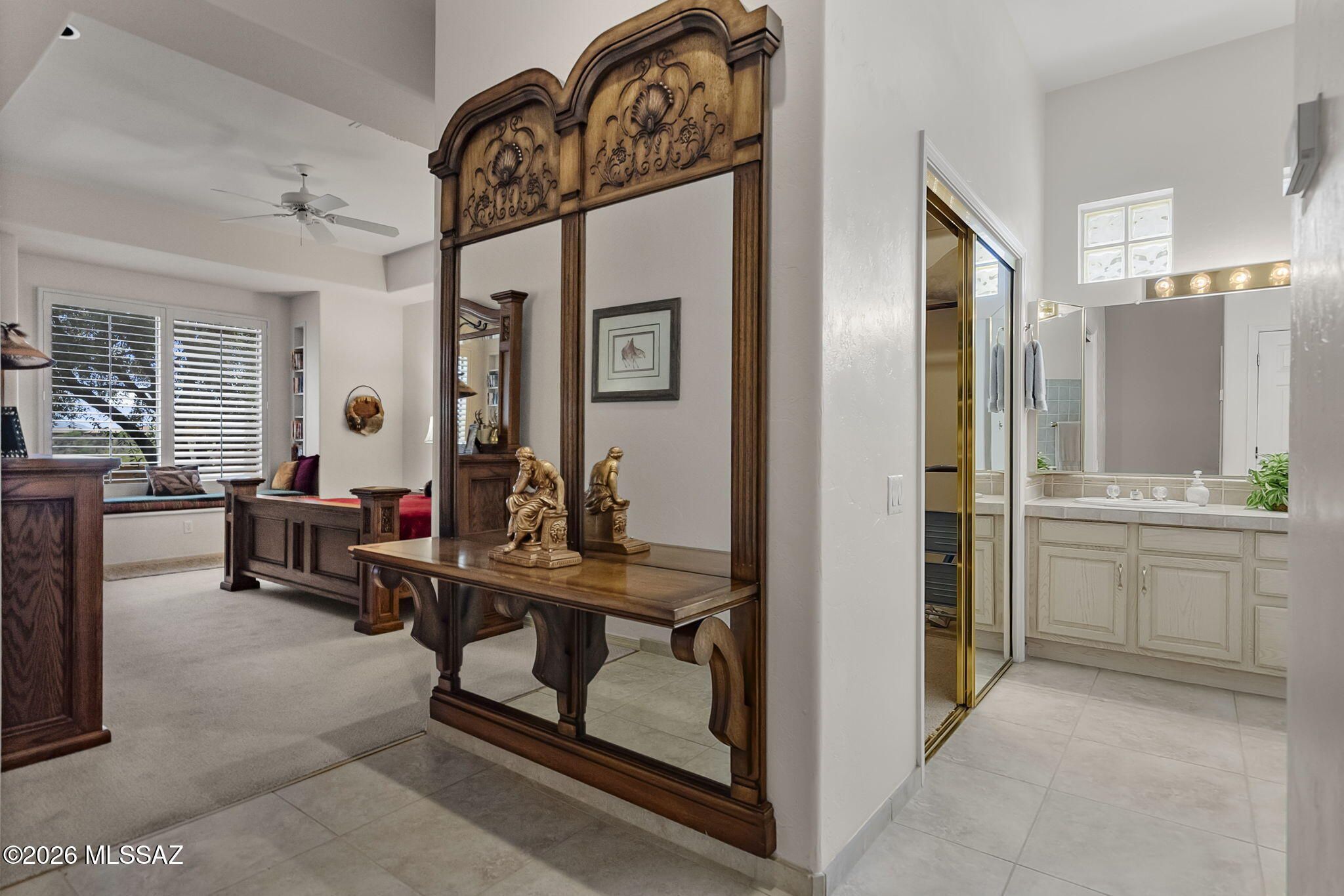 - Ceiling Fan(s), Central Vacuum, Entertainment Center, Entrance Foyer, High Ceilings, Split Bedrooms, Walk-In Closet(s), Wallpaper, Water Softener