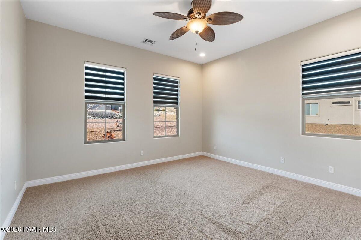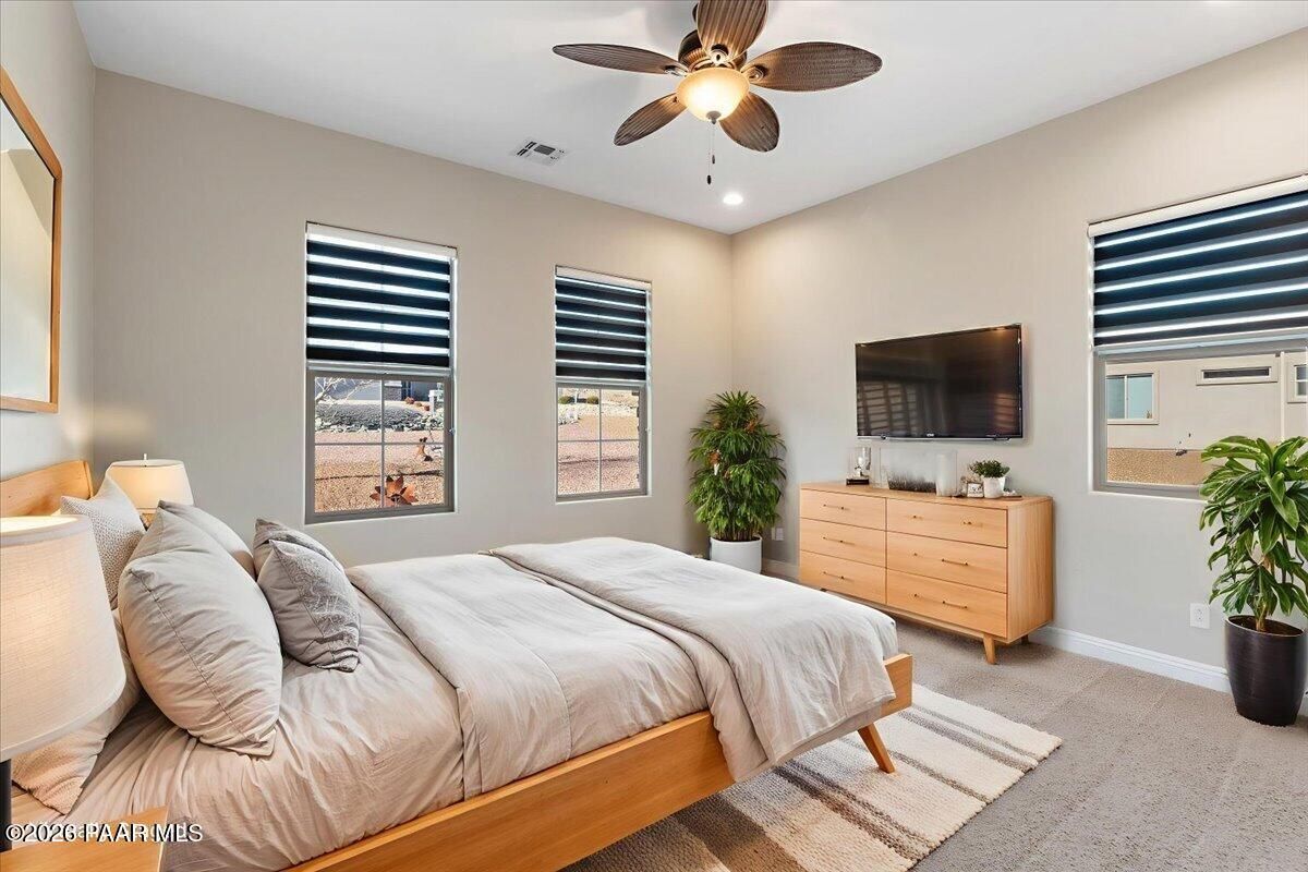 Welcome home to this original-owner contemporary gem in Yavapai Hills, where space, style, and community amenities come together effortlessly. With 2,590 square feet, this thoughtfully designed 4-bedroom, 23/4-bath home offers an open yet split floor plan that feels both expansive and private--perfect for everyday living and entertaining alike.The heart of the home is a light-filled great room anchored by a cozy gas fireplace, flowing seamlessly into the kitchen. Here, you'll find a gas cooktop with vented hood, double wall oven, oversized island with breakfast bar, and plenty of space to gather, cook, and connect.The spacious primary suite is a true retreat, featuring dual vanities and a huge walk-in closet that lives up to the hype. Three additional bedrooms provide flexibility for guests, work-from-home, or hobbies. Three car garage that offers ample space being extra wide and extra deep.Set in the sought-after Yavapai Hills community, residents enjoy clubhouse amenities that elevate everyday life--whether you're relaxing, staying active, or socializing with neighbors. Contemporary design, a smart layout, and a prime Prescott location make this home one you'll be proud to call your own.
