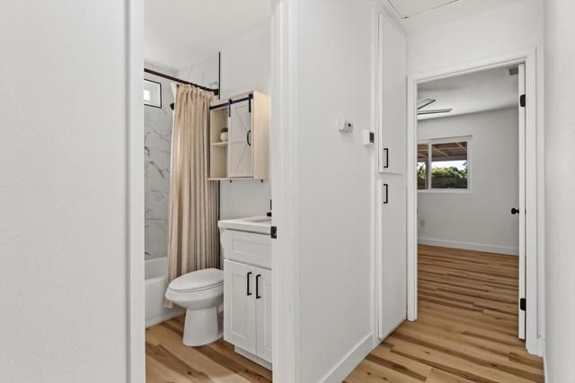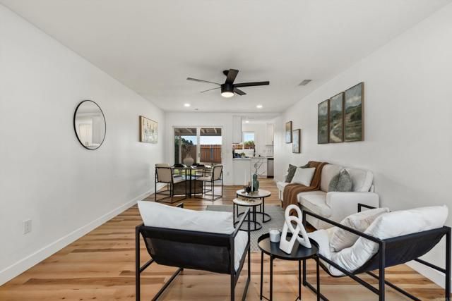Single story home in a 55+ community that is completely move-in ready! Fully renovated kitchen and bathroom with a cute private backyard with grass and low maintenance yard in front/side. The entire home was completely renovated approx. 2 years ago, including a new roof, floors, kitchen, appliances, bathroom, dual pane windows and doors and more! Situated on a corner lot for extra privacy and room to breathe. Enjoy the simplicity of living in Peacock Hills, with only $125/YEAR HOA dues! Conveniently located near the 78 and 76 freeways for easy access to all that North County San Diego has to offer!