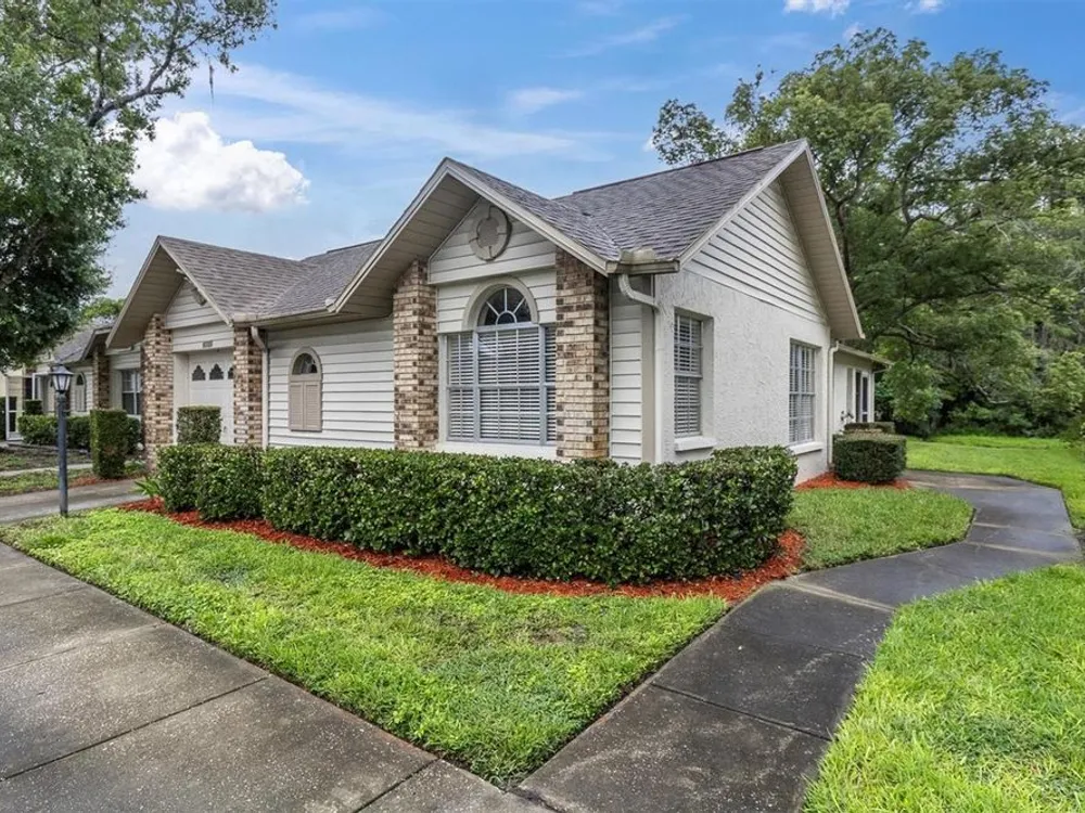 LOVE THIS PRICED RIGHT FREE STANDING 2/2/1 CONDO ON A STREAM BACKING TO WOODS IN A POPUALR OVER 55 COMMUNITY IN THE TRINITY AREA! CATHEDRAL CEILINGS SOAR OVER THE GREAT ROOM! THE KITCHEN IS LINED WITH CABINETS, IS COMPLETE WITH ALL APPLIANCES AND, HAS A HANDY PANTRY; THE DINETTE IS FLOODED WITH NATURAL SUN LIGHT! THE SPLIT FLOOR PLAN GIVES MAXIMUM PRIVACY TO THE PRIMARY BEDROOM IT FEATURES EVERYONES FAVORITE, WALK IN CLOSET, DUAL SINKS AND STEP IN SHOWER! THESE WATERFRONT CONDOS ARE RARE TO THE MARKET. YOU HAD BETTER BE FAST TO MAKE THIS ONE YOURS! HESITATE....AND YOU'LL BE TOO LATE!