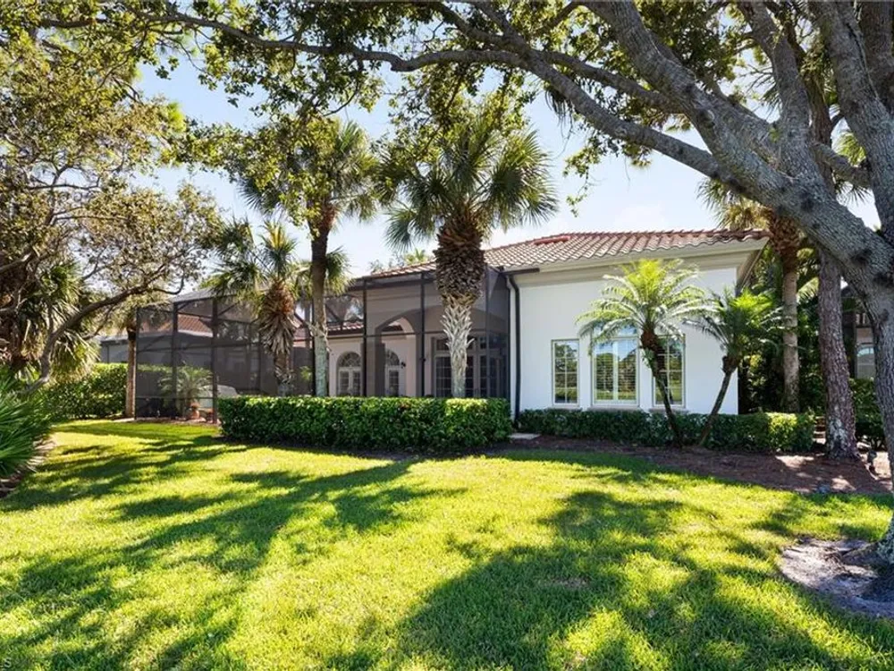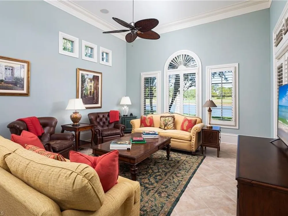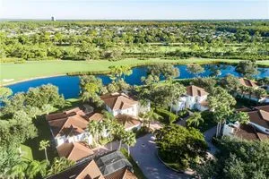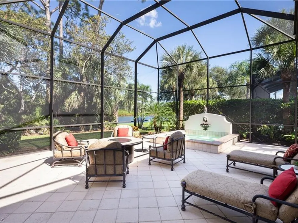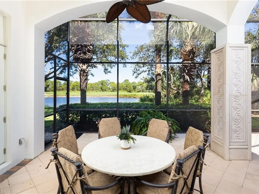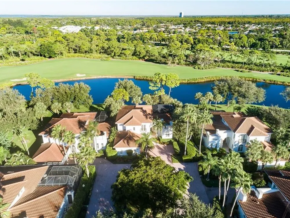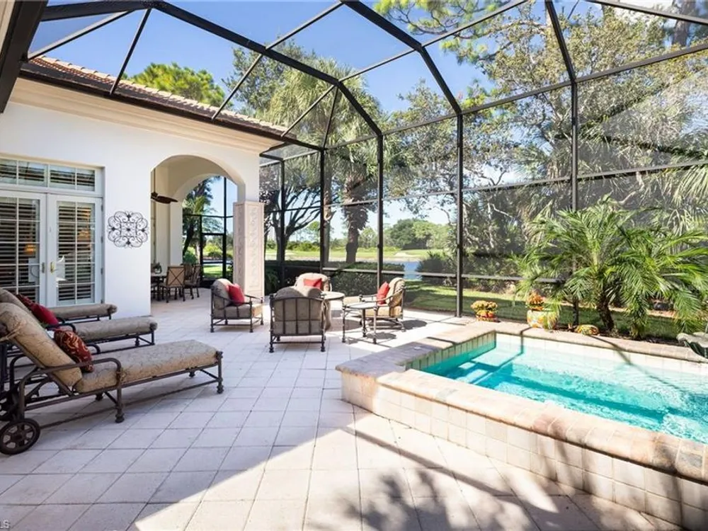 Welcome to Las Palmas in The Colony Golf & Bay Club- RARE OPPORTUNITY WITH A FULL GOLF MEMBERSHIP IMMEDIATELY AVAILABLE with this home, providing immediate access to championship golf without the wait. ONE OF THE BEST VIEWS IN THE COLONY—SPECTACULAR LAKE AND GOLF COURSE VISTAS! The Mediterranean style enclave of Las Palmas offers single family home living without the maintenance! This 4 bedroom , 3.5 bath residence is perfectly positioned on a private cul-de-sac homesite with magnificent views that captures postcard sunsets over the lake and the 5th fairway. Thoughtfully updated and beautifully maintained, this home features a NEW tile roof (2022), NEW HVAC systems (2020) includes air conditioned garage (2020), on-demand tankless hot water system, and a full-house generator! Elegant interiors showcase a spacious great room with volume ceilings, formal dining, living room, en-suite guest suites with private family room for your guests, and a chef’s dream kitchen with rich cabinetry, pantry, wine chiller, and gas cooktop. Enjoy the first floor master suite with sitting area and exquisite master bath with jacuzzi tub and separate shower. The layout flows effortlessly to the outdoor living area, where a private spa and covered lanai await — perfect for al fresco dining and evening relaxation with panoramic views.Recent enhancements include newly painted exterior (2024), restored lanai enclosure with upgraded no-see-um screens, and new spa pump and remote controls(2025), new remote control garage entry pad (2025). The home also features plantation shutters throughout, tray ceilings, solid core doors, and Miele washer and dryer.Residents of The Colony Golf and Bay Club enjoy world-class amenities, including a 34 acre private beach island with complimentary boat shuttle, waterfront dining at The Bay Club, tennis, pickleball, fitness, kayak park, sailing center, and more. This is truly a hidden gem in Las Palmas of The Colony Golf and Bay Club with one of the best lake and golf course views! Schedule a private showing today before this opportunity is gone!