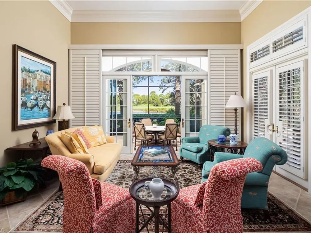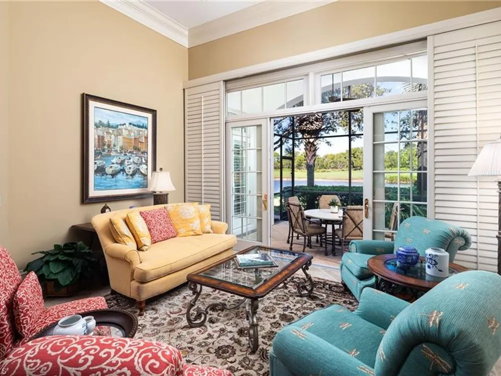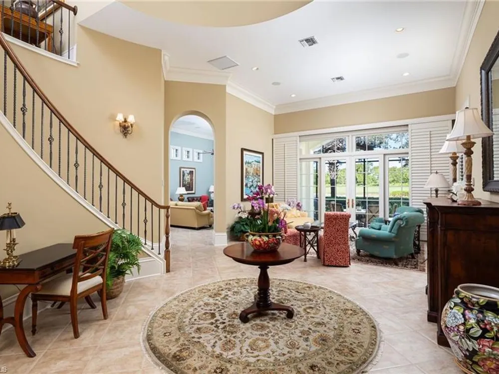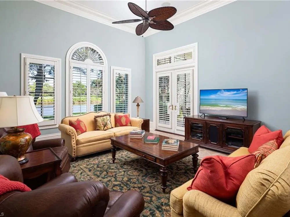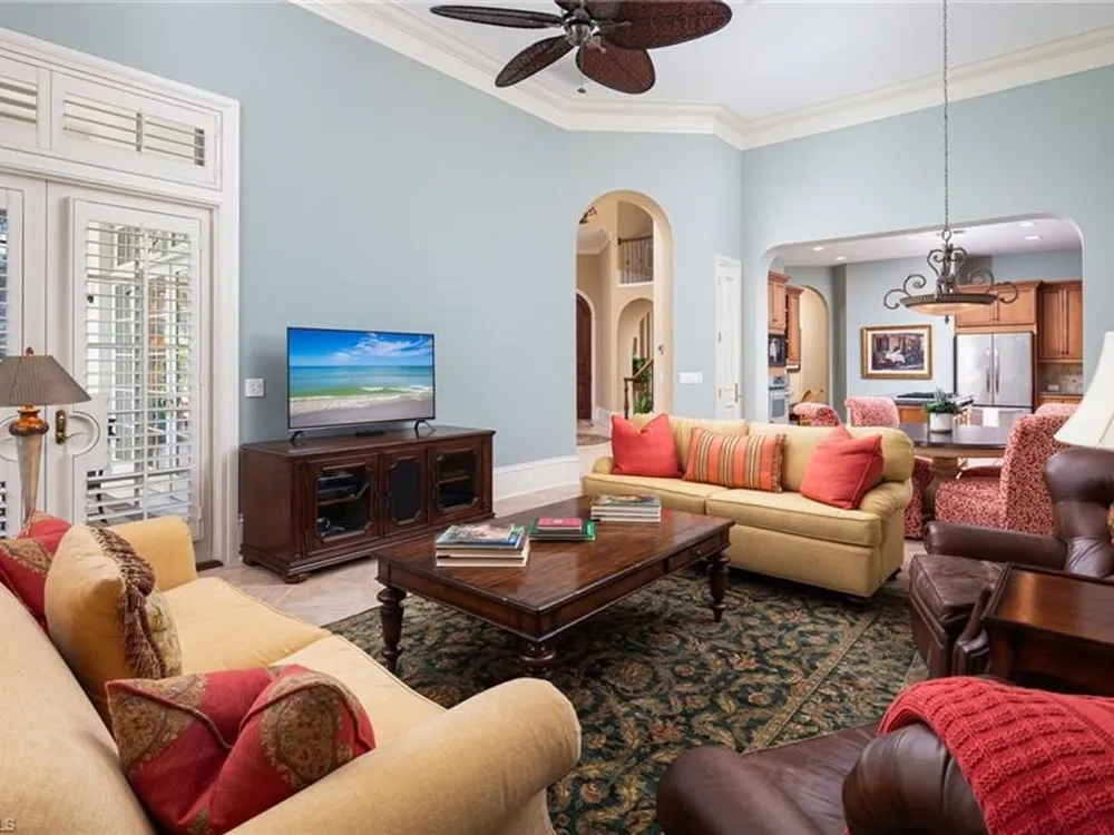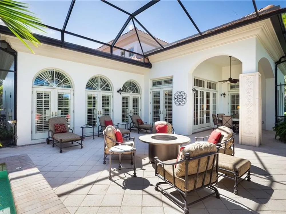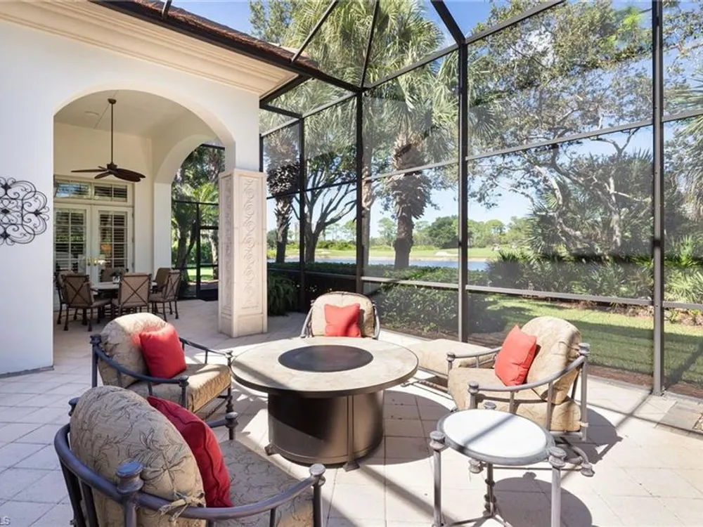 Welcome to Las Palmas in The Colony Golf & Bay Club- RARE OPPORTUNITY WITH A FULL GOLF MEMBERSHIP IMMEDIATELY AVAILABLE with this home, providing immediate access to championship golf without the wait. ONE OF THE BEST VIEWS IN THE COLONY—SPECTACULAR LAKE AND GOLF COURSE VISTAS! The Mediterranean style enclave of Las Palmas offers single family home living without the maintenance! This 4 bedroom , 3.5 bath residence is perfectly positioned on a private cul-de-sac homesite with magnificent views that captures postcard sunsets over the lake and the 5th fairway. Thoughtfully updated and beautifully maintained, this home features a NEW tile roof (2022), NEW HVAC systems (2020) includes air conditioned garage (2020), on-demand tankless hot water system, and a full-house generator! Elegant interiors showcase a spacious great room with volume ceilings, formal dining, living room, en-suite guest suites with private family room for your guests, and a chef’s dream kitchen with rich cabinetry, pantry, wine chiller, and gas cooktop. Enjoy the first floor master suite with sitting area and exquisite master bath with jacuzzi tub and separate shower. The layout flows effortlessly to the outdoor living area, where a private spa and covered lanai await — perfect for al fresco dining and evening relaxation with panoramic views.Recent enhancements include newly painted exterior (2024), restored lanai enclosure with upgraded no-see-um screens, and new spa pump and remote controls(2025), new remote control garage entry pad (2025). The home also features plantation shutters throughout, tray ceilings, solid core doors, and Miele washer and dryer.Residents of The Colony Golf and Bay Club enjoy world-class amenities, including a 34 acre private beach island with complimentary boat shuttle, waterfront dining at The Bay Club, tennis, pickleball, fitness, kayak park, sailing center, and more. This is truly a hidden gem in Las Palmas of The Colony Golf and Bay Club with one of the best lake and golf course views! Schedule a private showing today before this opportunity is gone!