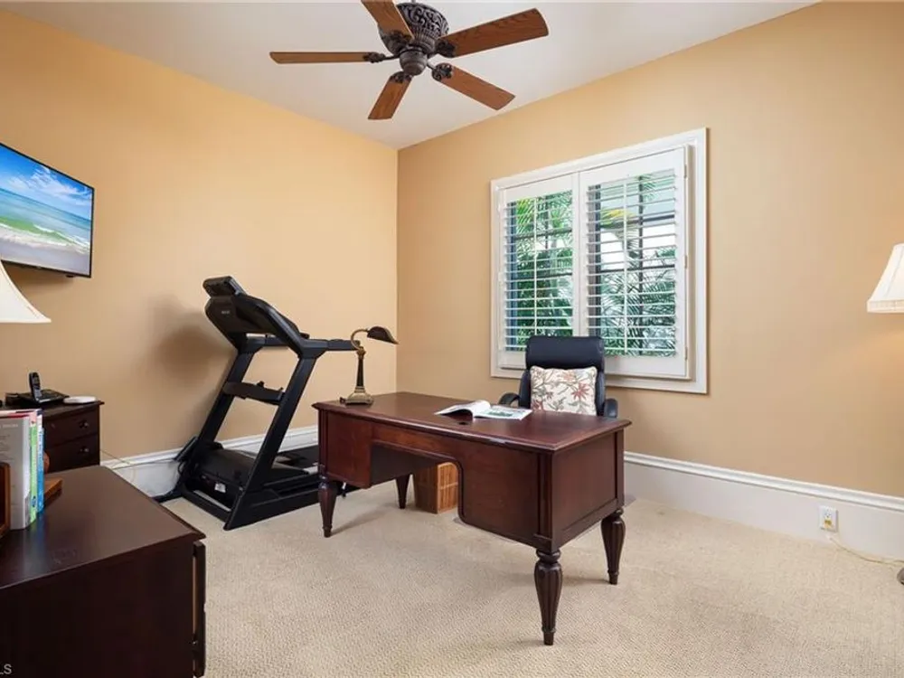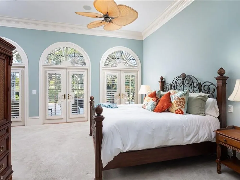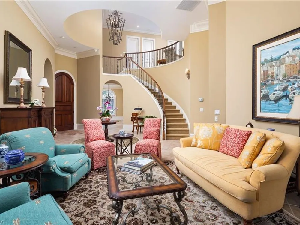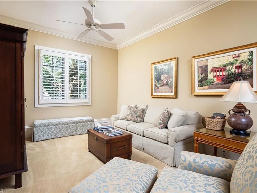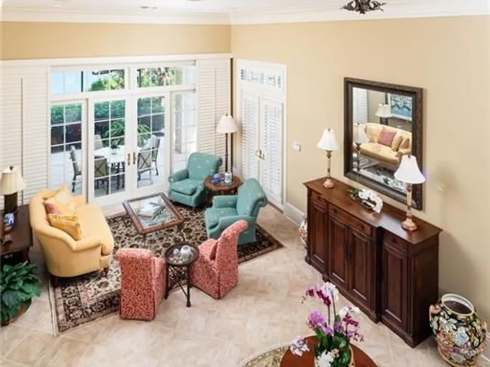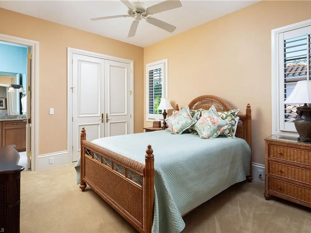 Welcome to Las Palmas in The Colony Golf & Bay Club- RARE OPPORTUNITY WITH A FULL GOLF MEMBERSHIP IMMEDIATELY AVAILABLE with this home, providing immediate access to championship golf without the wait. ONE OF THE BEST VIEWS IN THE COLONY—SPECTACULAR LAKE AND GOLF COURSE VISTAS! The Mediterranean style enclave of Las Palmas offers single family home living without the maintenance! This 4 bedroom , 3.5 bath residence is perfectly positioned on a private cul-de-sac homesite with magnificent views that captures postcard sunsets over the lake and the 5th fairway. Thoughtfully updated and beautifully maintained, this home features a NEW tile roof (2022), NEW HVAC systems (2020) includes air conditioned garage (2020), on-demand tankless hot water system, and a full-house generator! Elegant interiors showcase a spacious great room with volume ceilings, formal dining, living room, en-suite guest suites with private family room for your guests, and a chef’s dream kitchen with rich cabinetry, pantry, wine chiller, and gas cooktop. Enjoy the first floor master suite with sitting area and exquisite master bath with jacuzzi tub and separate shower. The layout flows effortlessly to the outdoor living area, where a private spa and covered lanai await — perfect for al fresco dining and evening relaxation with panoramic views.Recent enhancements include newly painted exterior (2024), restored lanai enclosure with upgraded no-see-um screens, and new spa pump and remote controls(2025), new remote control garage entry pad (2025). The home also features plantation shutters throughout, tray ceilings, solid core doors, and Miele washer and dryer.Residents of The Colony Golf and Bay Club enjoy world-class amenities, including a 34 acre private beach island with complimentary boat shuttle, waterfront dining at The Bay Club, tennis, pickleball, fitness, kayak park, sailing center, and more. This is truly a hidden gem in Las Palmas of The Colony Golf and Bay Club with one of the best lake and golf course views! Schedule a private showing today before this opportunity is gone!