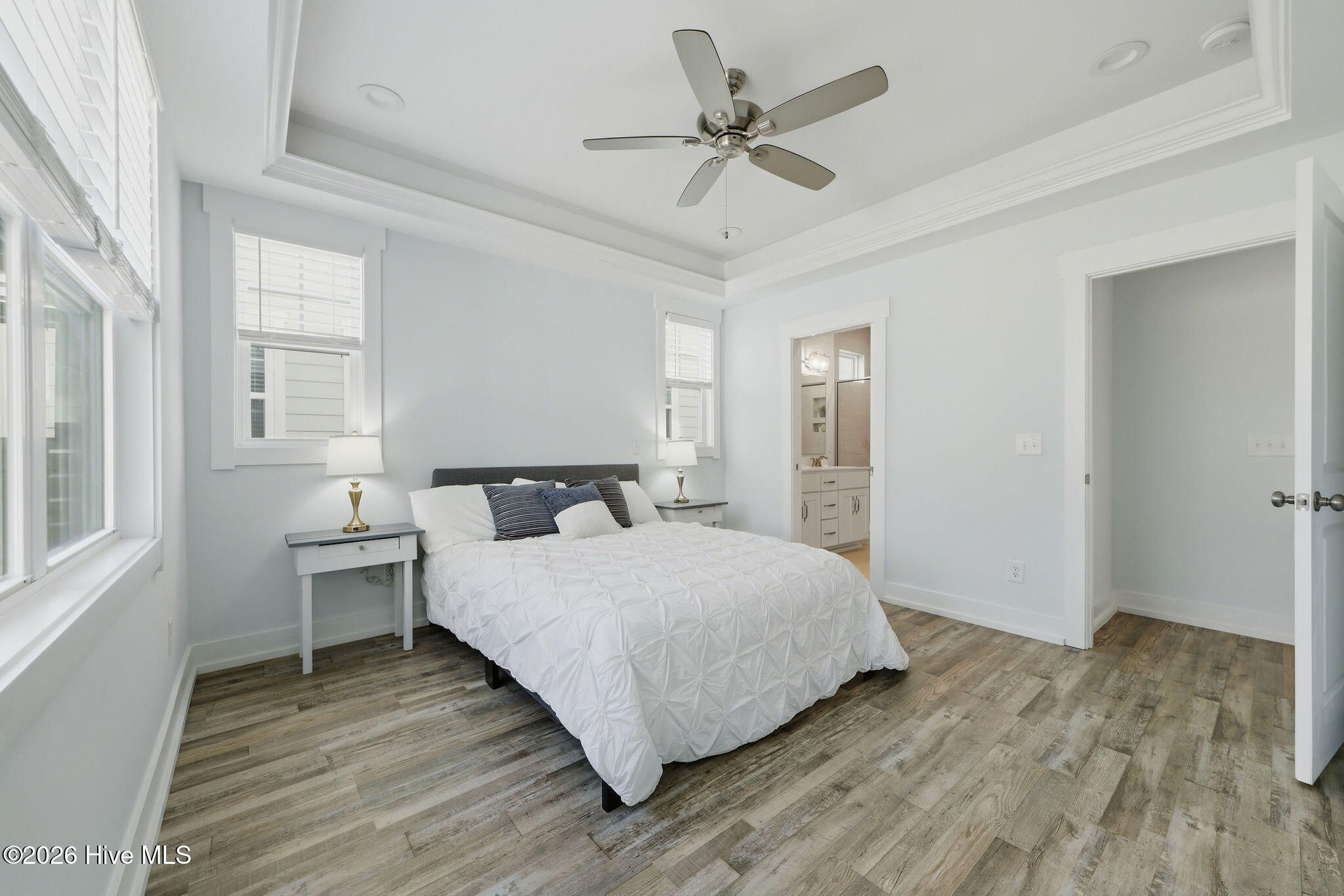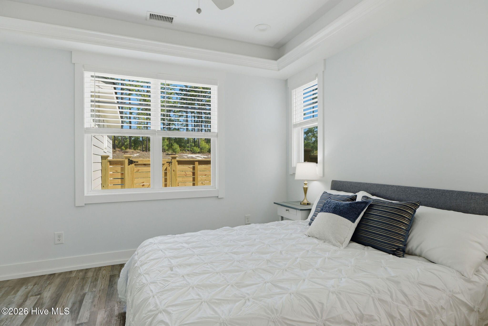 This is a rare end-unit Schooner floor plan, one of only two ever built,- it is not just any townhome. Its duplex-style positioning offers enhanced privacy, additional windows for a sun-filled interior, and a sense of space that truly stands apart. Inside, the home showcases a clean, modern coastal design. The soaring open-concept living area features wood-look LVP flooring and bright white trim details throughout. The kitchen is both stylish and functional, complete with premium white shaker cabinetry, sparkling quartz countertops, classic subway tile backsplash, under-cabinet lighting, and ample prep space. The main-level primary suite is thoughtfully tucked away for privacy and features a tray ceiling, a walk-in closet with wood shelving, and an en-suite bath with dual vanities, tiled walk-in shower- with transom window and pretty herringbone accent detail with a framed glass enclosure. Upstairs, the layout continues to impress with a dramatic loft accented by custom shiplap, overlooking the living area- adding both character and flexibility. Most notably are the two oversized secondary bedrooms- offering versatile space for guests, a home office, or additional living needs. A sliding glass door leads to a private, fenced courtyard with a paver patio-perfect for relaxing, entertaining, or enjoying morning coffee. Located adjacent to a green space with no homes built behind. Additional features include a private garage and an extra parking pad. Enjoy low-maintenance living at its best; the HOA covers the exterior, landscaping, irrigation, building maintenance, pressure washing, pest control, a termite bond, and a master insurance policy. Riverlights offers a unique blend of natural beauty and vibrant amenities, with easy access to a 38-acre lake and scenic 3.4-mile trail. The mixed-use district features restaurants, a bike shop, and a nail salon. Community amenities include a clubhouse, billiards, two fitness centers, two pools, dog park, playgrounds, bocce, and pickleball! Minimum 6-month lease term per HOA. This is a truly an exclusive opportunity--don't miss your chance to own one of the most unique townhome layouts in RiverLights. Schedule your showing today.