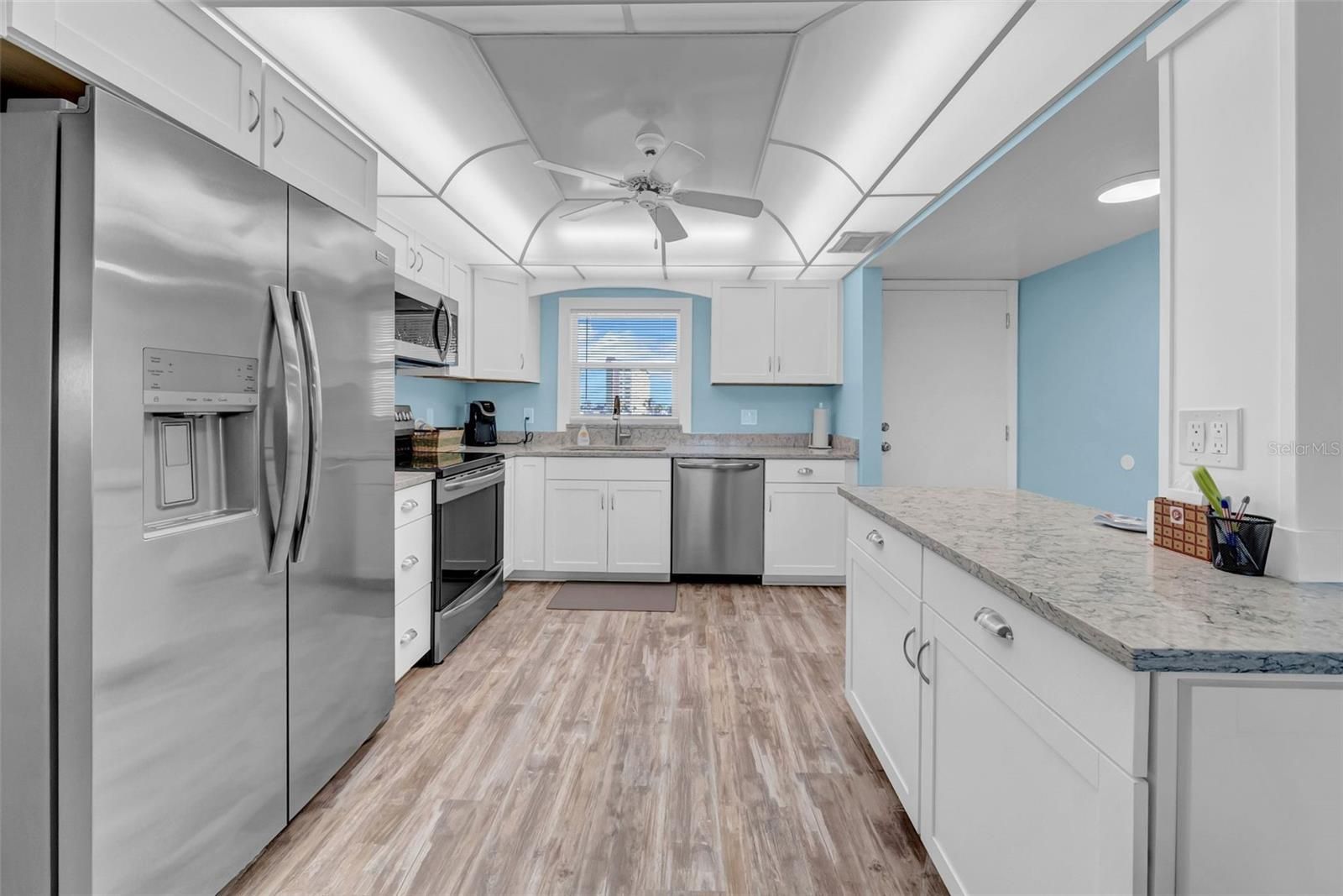 FULLY FUNDED, Milestone & Integrity inspection completed! (BEST PRICED UNIT COMES FULLY FURNISHED & TURN KEY) Welcome home to this beautiful Waterfront condo 55+ resort style living that comes fully furnished, completely remodeled 2 bed 2 bath WATERFRONT condo. All windows and door are HURRICANE IMPACT RATED throughout the whole unit for peace of mind. As you enter, you'll be greeted by an fully remodeled (2022) open kitchen featuring solid wood cabinetry, granite counter tops, a Frigidaire stainless appliance package, lots of counter space and storage, an island and a large pantry. The kitchen seamlessly flows into the dining and living area with open sightlines showing breathtaking water views and abundant natural light throughout. There is a Florida room with wall to wall windows presenting panoramic water views. The oversized primary bedroom has a large a walk-in closet and a private updated en suite bathroom that has with granite countertops and a walk-in shower. The guest bedroom is very spacious, featuring its own private updated en suite bathroom and large closet. This unit has been owned, meticulously maintained and tastefully updated by the same family for many years. Laundry and storage closet are just a few steps away from the front door and designated Covered parking space #51 is just steps away from the elevator. (2016 HVAC & 2022 W/H) Community Features: 24-hour gated security, 2 heated pools, tennis and pickleball courts, separate Men's and Women's card rooms, shuffleboard, new walking trail around the lagoon, kayak racks, and a launch dock into Boca Ciega Bay. Coming soon: clubhouse that will have a gym, billiards room, and an entertainment area. NEW EV CHARGERS ON SITE WITH WATER VIEWS & NEW MARINA COMING!