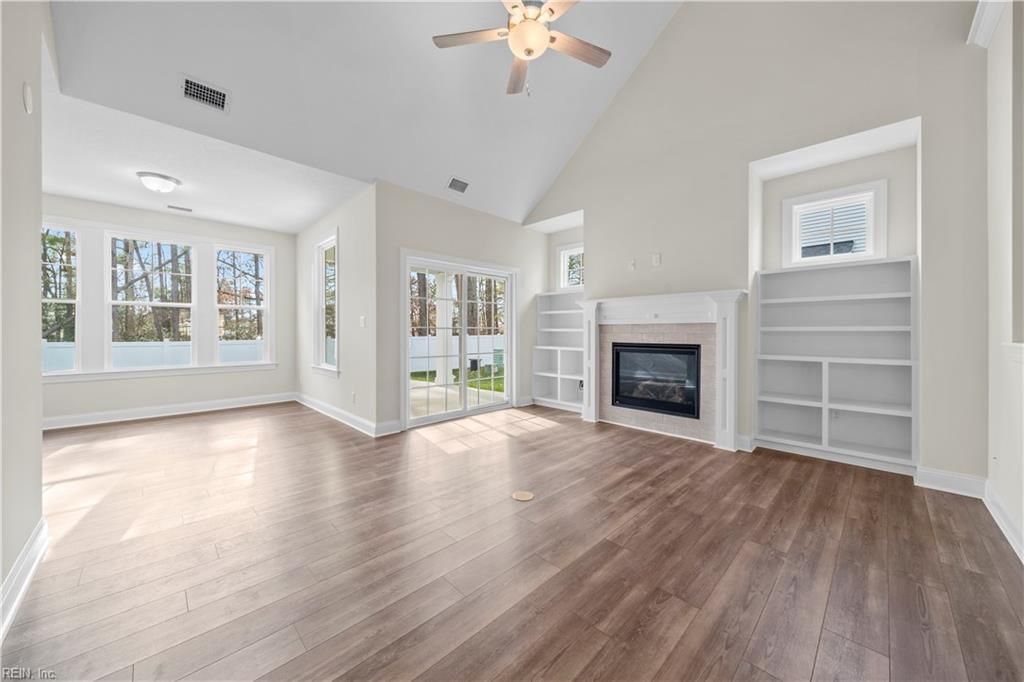 Move-in ready end-unit Nansemond floorplan with first-floor primary suite and 2-car garage in The Retreat at Western Branch, a 55+ community. Priced to sell. Open-concept kitchen with bar seating overlooking the living area with built-in shelves flanking the gas fireplace. Roomy walk-in pantry to keep everything organized and within reach. Enjoy outdoor living on the covered rear porch with extended patio. Upstairs features two additional bedrooms, a loft, guest bath, and walk-in attic. End-unit location provides additional natural light and a spacious feel. Community amenities include a clubhouse, fitness center, billiards room, outdoor kitchen, dog park, and community garden. Only 15 homes remain, schedule your tour today.