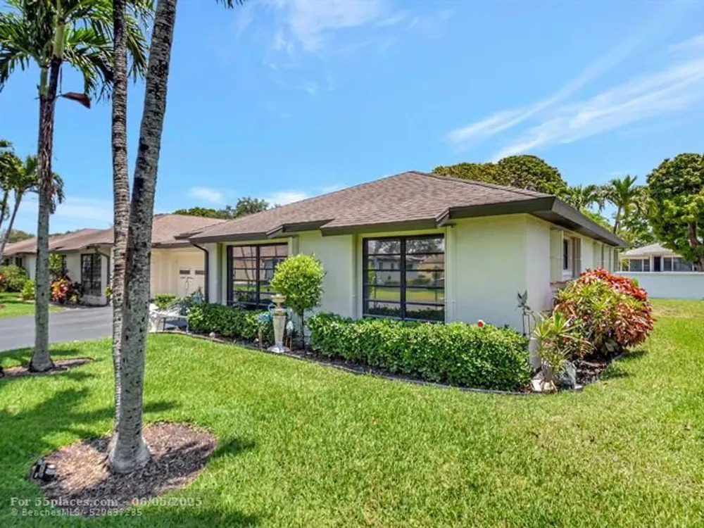 WELCOME TO THIS MOVE-IN-READY CORNER UNIT VILLA IN THE 55+ GREENTREE VILLAS COMMUNITY! THIS 2-BEDROOM, 2-BATHROOM HOME OFFERS A VARIETY OF UPGRADES, INCLUDING BRAND NEW HURRICANE SHUTTERS ON ALL WINDOWS, A LANAI WITH A NEW MOTORIZED HURRICANE SCREEN, AND A NEW A/C SYSTEM (10-YEAR WARRANTY). ENJOY THE CONVENIENCE OF A NEW REMOTE-CONTROLLED GARAGE DOOR, NEW APPLIANCES, INCLUDING A WASHER & DRYER INSTALLED IN 2023. THE EXTERIOR WAS FRESHLY PAINTED IN LATE 2024, ADDING TO THE HOME'S APPEAL. SET IN A QUIET NEIGHBORHOOD, YOU'LL HAVE ACCESS TO SEVERAL AMENITIES, INCLUDING 6 POOLS AND 6 CLUBHOUSES. DON’T MISS THIS INCREDIBLE OPPORTUNITY TO OWN THIS HOME PERFECT FOR ENJOYING THE BEST OF SOUTH FLORIDA LIVING! LOCATED LESS THAN 15 MINUTES FROM THE BEACH, SHOPPING & DINING OPTIONS, AND ATLANTIC AVE.