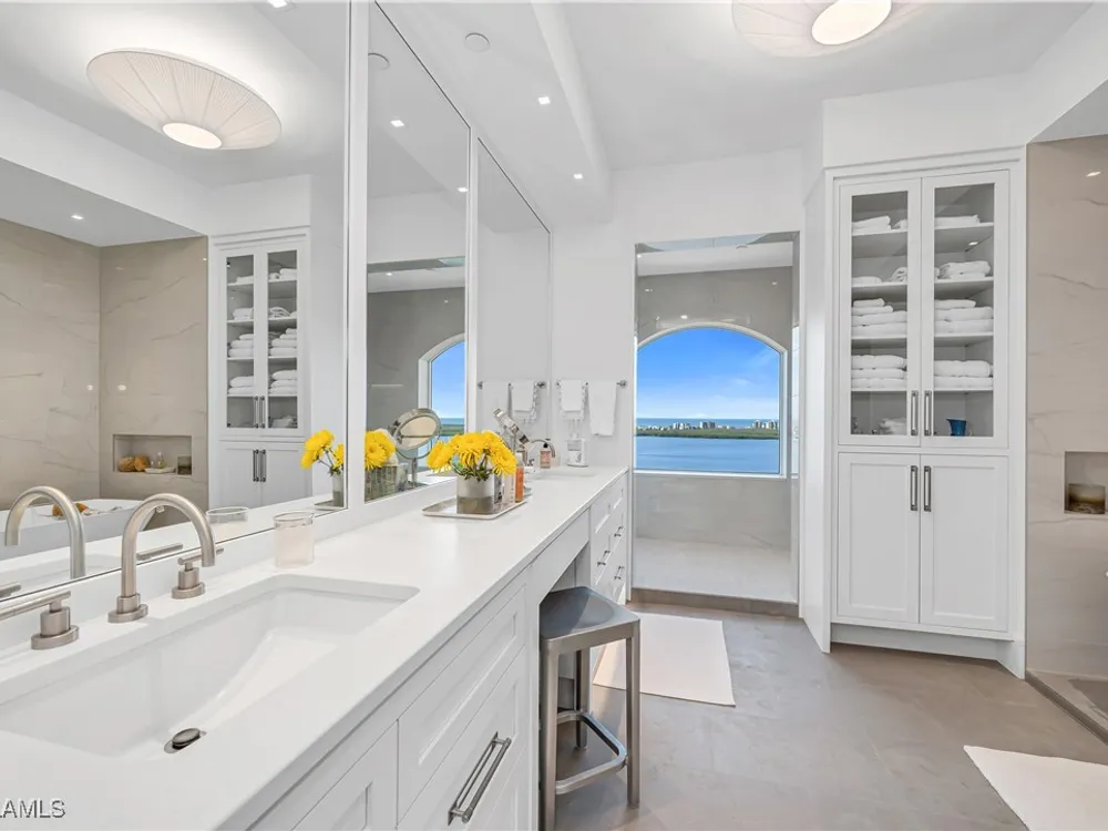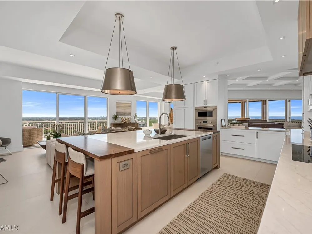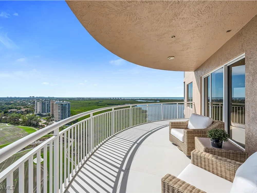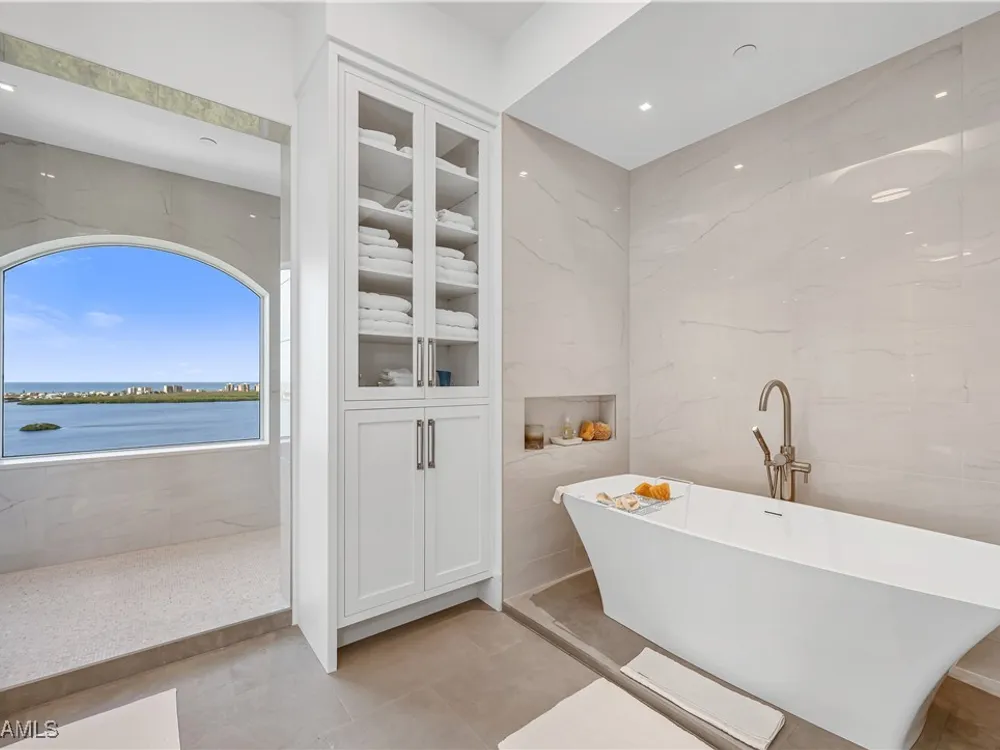 An extraordinary, rarely available total remodel—masterfully crafted by a premier Nantucket builder—this residence embodies sophistication and refinement at every turn. Sleek 42" porcelain tile flooring sets the tone, complemented by an abundance of recessed lighting and linear air diffusers that create a modern, gallery-like ambiance. The chef’s kitchen is a showpiece, featuring wonderful quartz countertops, a Sub-Zero refrigerator tower, a Subzero freezer tower, Subzero wine tower. 2 dishwashers. Wolf ovens and cooktops, and designer fixtures that exude elegance. Spa-inspired baths showcase extraordinary finishes, with a dramatic Gulf-view walk-in shower, a freestanding soaking tub, and bespoke custom closets that marry beauty with function. From the 18th-floor, south-facing lanai, enjoy panoramic vistas that sweep across the skyline to Naples and capture magnificent Gulf sunsets. A true extension of the living space, the oversized lanai is appointed with motorized screens and shutters, as well as a hand-crafted cypress ceiling—an exquisite private retreat with unmatched views, unobstructed by neighboring towers. Designed to live like a private estate yet with all the ease, safety, and security of a luxury high-rise, this 4,482-total square-foot residence (as per developer’s brochure) welcomes you through a dramatic gallery entrance opening to walls of glass and endless Gulf horizons. With three ensuite bedrooms, a powder bath, and a private study overlooking the water, the layout is both functional and indulgent. Two premium second-level parking spaces keeps your cars high and dry, plus private storage unit. Arrive at Horizons through a tree-lined, paver drive leading to its elevated tower presence. Residents enjoy a host of refined amenities, including newly redesigned social and card rooms, a resort-style geothermal pool and spa (cooled in summer, heated in winter), fitness center, massage room, and two guest suites for family and friends. The experienced on-site manager ensures seamless service, while terraces throughout the tower perch dramatically over Estero Bay—where dolphins and wildlife create a living panorama. Set within the prestigious gates of Bonita Bay, residents enjoy a lifestyle unlike any other. The community’s brand-new private beach club on the Gulf of Mexico is easily accessed via resident shuttle. Twelve miles of walking trails. three parks. Full-service 400-slip marina. Optional membership in the Bonita Bay Club offers access to five championship golf courses, 15 pickleball courts, 12 tennis courts, and a 29,000-square-foot state-of-the-art fitness center featuring Pilates, spin, TRX, and more. The full-service spa includes massage, facials, hair, nail treatments. When it comes to luxury towers in Southwest Florida, Horizons Residence 1801 at Bonita Bay stands alone—an incomparable offering for the most discerning buyer seeking the perfect blend of sophistication, lifestyle, and Gulf-front grandeur.