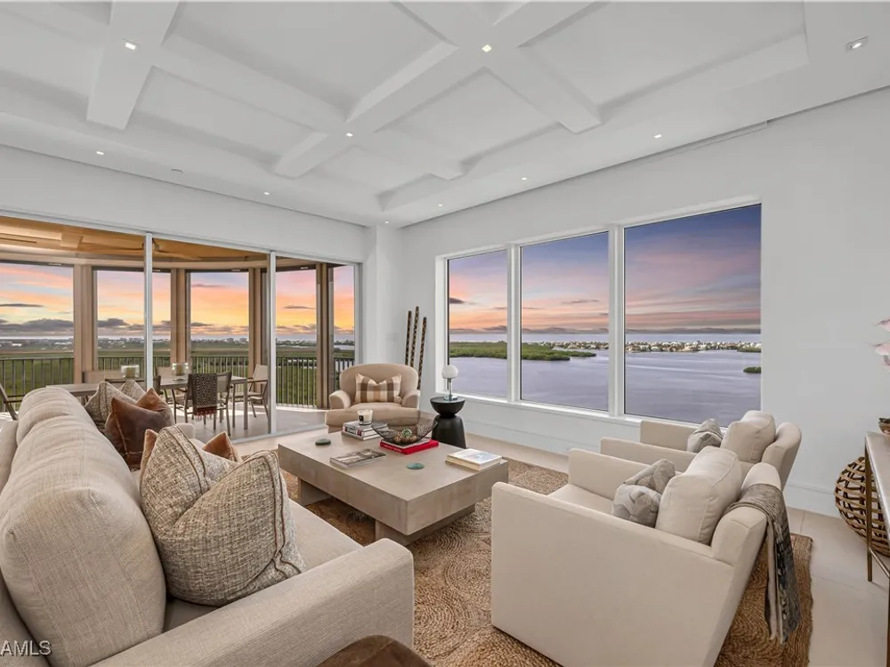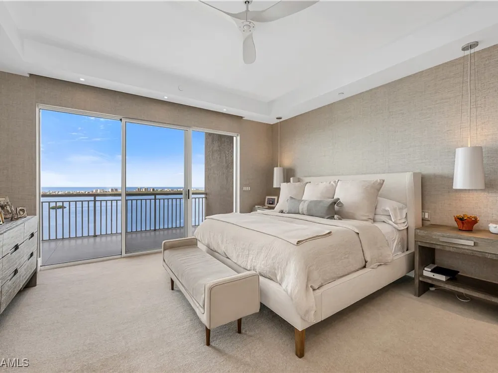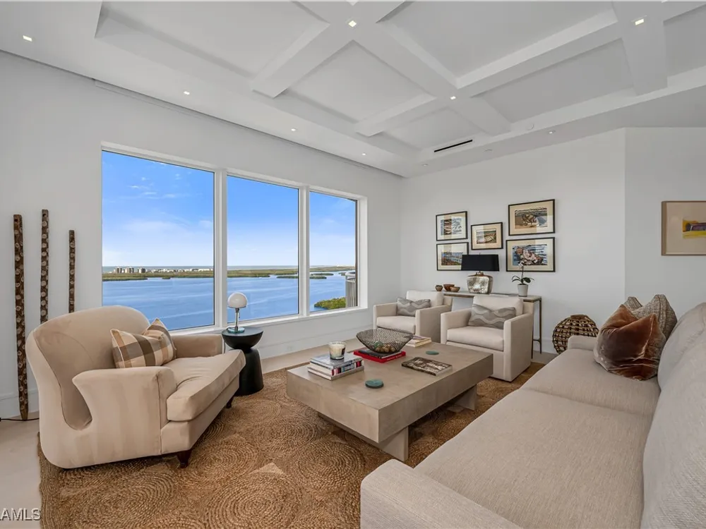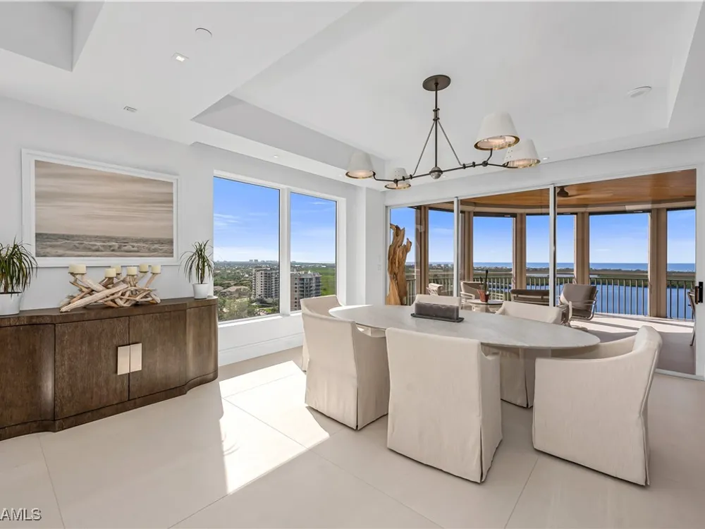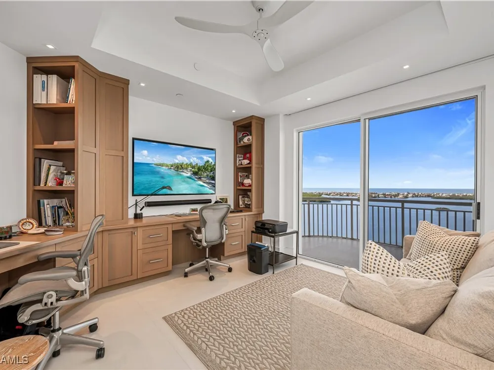 An extraordinary, rarely available total remodel—masterfully crafted by a premier Nantucket builder—this residence embodies sophistication and refinement at every turn. Sleek 42" porcelain tile flooring sets the tone, complemented by an abundance of recessed lighting and linear air diffusers that create a modern, gallery-like ambiance. The chef’s kitchen is a showpiece, featuring wonderful quartz countertops, a Sub-Zero refrigerator tower, a Subzero freezer tower, Subzero wine tower. 2 dishwashers. Wolf ovens and cooktops, and designer fixtures that exude elegance. Spa-inspired baths showcase extraordinary finishes, with a dramatic Gulf-view walk-in shower, a freestanding soaking tub, and bespoke custom closets that marry beauty with function. From the 18th-floor, south-facing lanai, enjoy panoramic vistas that sweep across the skyline to Naples and capture magnificent Gulf sunsets. A true extension of the living space, the oversized lanai is appointed with motorized screens and shutters, as well as a hand-crafted cypress ceiling—an exquisite private retreat with unmatched views, unobstructed by neighboring towers. Designed to live like a private estate yet with all the ease, safety, and security of a luxury high-rise, this 4,482-total square-foot residence (as per developer’s brochure) welcomes you through a dramatic gallery entrance opening to walls of glass and endless Gulf horizons. With three ensuite bedrooms, a powder bath, and a private study overlooking the water, the layout is both functional and indulgent. Two premium second-level parking spaces keeps your cars high and dry, plus private storage unit. Arrive at Horizons through a tree-lined, paver drive leading to its elevated tower presence. Residents enjoy a host of refined amenities, including newly redesigned social and card rooms, a resort-style geothermal pool and spa (cooled in summer, heated in winter), fitness center, massage room, and two guest suites for family and friends. The experienced on-site manager ensures seamless service, while terraces throughout the tower perch dramatically over Estero Bay—where dolphins and wildlife create a living panorama. Set within the prestigious gates of Bonita Bay, residents enjoy a lifestyle unlike any other. The community’s brand-new private beach club on the Gulf of Mexico is easily accessed via resident shuttle. Twelve miles of walking trails. three parks. Full-service 400-slip marina. Optional membership in the Bonita Bay Club offers access to five championship golf courses, 15 pickleball courts, 12 tennis courts, and a 29,000-square-foot state-of-the-art fitness center featuring Pilates, spin, TRX, and more. The full-service spa includes massage, facials, hair, nail treatments. When it comes to luxury towers in Southwest Florida, Horizons Residence 1801 at Bonita Bay stands alone—an incomparable offering for the most discerning buyer seeking the perfect blend of sophistication, lifestyle, and Gulf-front grandeur.