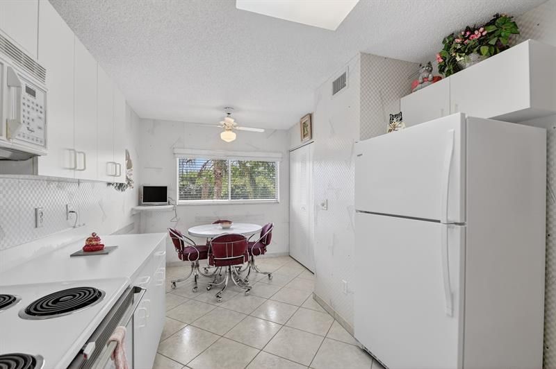 The home welcomes you with an elegant entry hallway featuring tile flooring and tasteful décor, creating a warm and inviting first impression. The spacious kitchen overlooks the living area and offers white cabinetry, ample counter space and a bright breakfast nook with natural light. The open layout enhance flow and functionality, perfect for everyday living. Neutral tones throughout the unit allow for easy personalization, white decorative wallpaper accents add a cozy and charming feel. Natural light fills the living spaces, and the unit reflects pride of ownership with its clean, well-cared condition. A wonderful opportunity to own a spacious, move-in ready home.