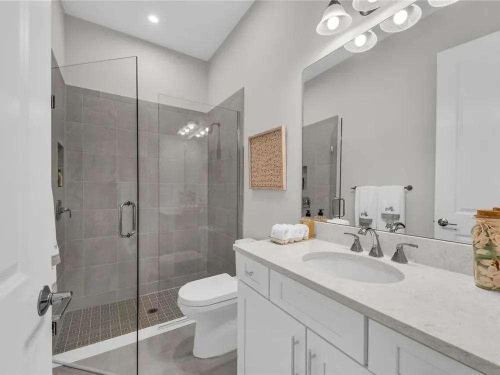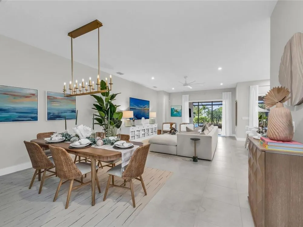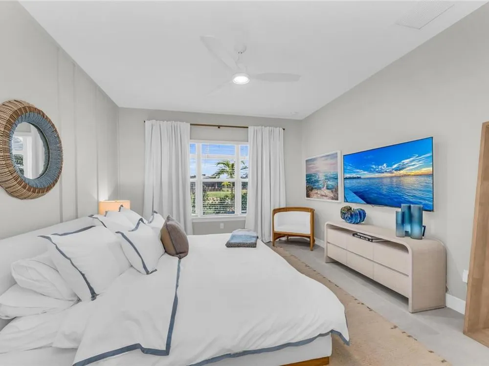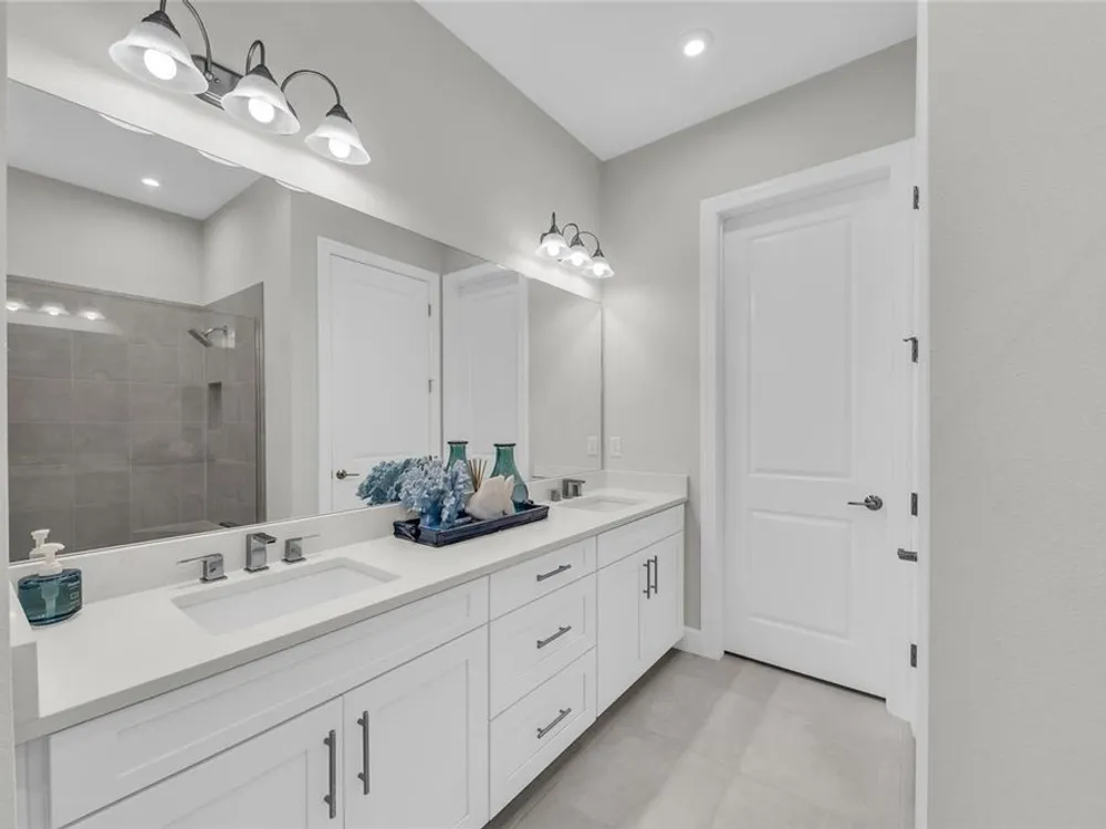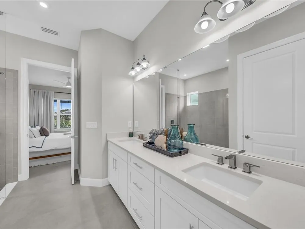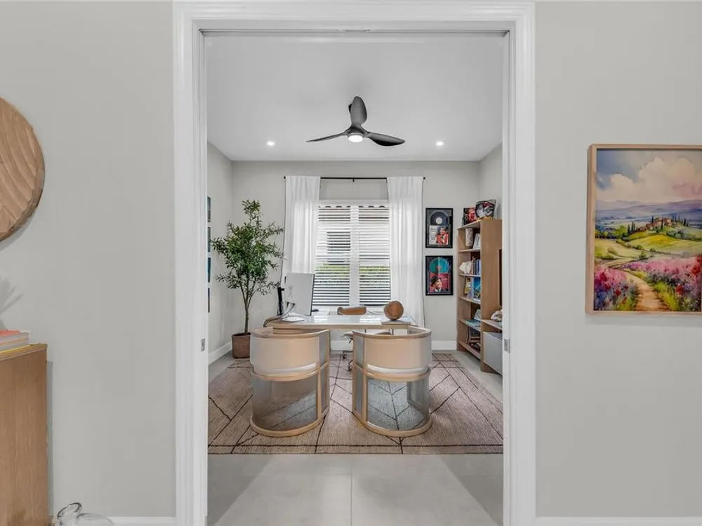 Welcome to your personal piece of paradise in the heart of Esplanade at Azario, one of Lakewood Ranch’s most sought-after communities. This isn’t just a house—it’s where luxury meets lifestyle. Where every day feels like a vacation. Where you wake up to serene lake views and end the day with a glass of wine by your private pool. Tucked on a premium waterfront lot, this beautifully upgraded Lazio floor plan blends Mediterranean charm with fresh coastal style. From the moment you pull up, the home sets the tone: barrel tile roof, tropical landscaping, and a polished curb appeal that tells you—this place is something special. Inside, light pours through every room. A soaring 10-foot ceiling and soft gray palette create a calm, airy vibe, while large-format tile flooring adds elegance underfoot. Step into the open-concept great room and you’re instantly drawn to the view—glimmering water framed by palm trees, seen through oversized sliding glass doors. The kitchen is a showstopper. Think: white shaker cabinetry, rich quartz countertops, and a charcoalgray island made for gathering. GE Profile appliances, a built-in cooktop, wine reserve, and stylish gold pendant lights give the space a sleek, upscale look. And then there’s the backyard oasis—your own private resort. Lounge in the custom-designed pool with water feature, dine alfresco under the covered lanai, and fire up the outdoor kitchen (yes, it’s fully equipped). Lake views stretch beyond the screened enclosure, and with motorized Storm Smart hurricane screens, you’re protected with the push of a button. The owner’s suite is a retreat of its own, with a custom walk-in closet and a spa-like bath featuring frameless glass, brushed nickel finishes, and plenty of space to unwind. Two additional guest bedrooms—each with its own private en-suite bathroom—give everyone room to spread out and relax in comfort. There’s smart tech throughout—Uxari security system, whole-home automation, and a Generac fullhome generator for peace of mind. The home also features upgraded lighting, 8-foot interior doors, designer finishes, and an extended 4-foot garage for extra storage or workspace. And when you're ready to venture out? Esplanade at Azario delivers: resort-style clubhouse, heated pool, fitness center, tennis, pickleball, walking trails, and a packed calendar of social events. You’re also minutes from top-rated schools, the UTC Mall, fine dining, and world-class golf. This is more than a home. It’s where you’ll gather with friends, celebrate milestones, and soak in every sunset. Come see it in person—and feel what makes this place so special. Schedule your private showing today.